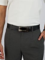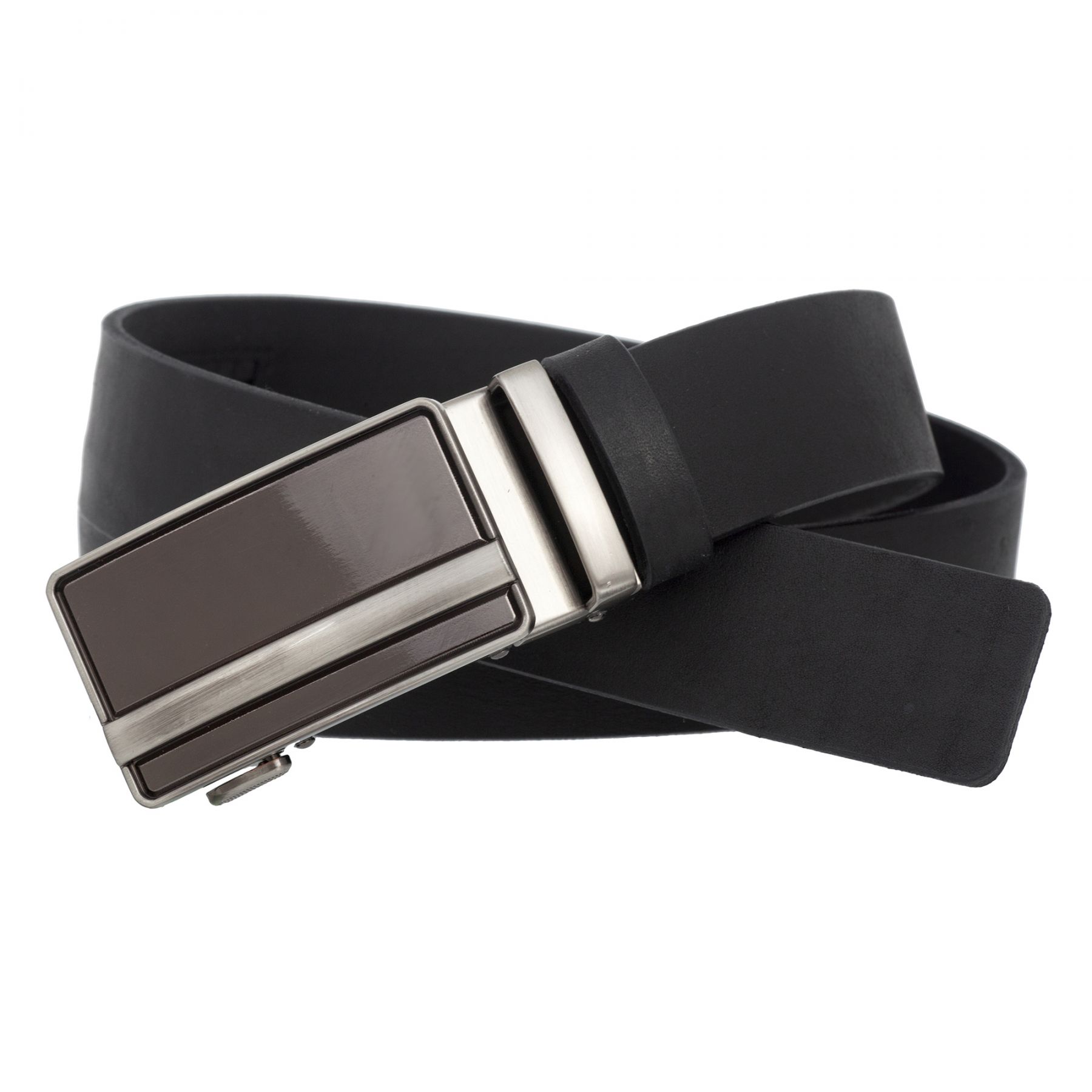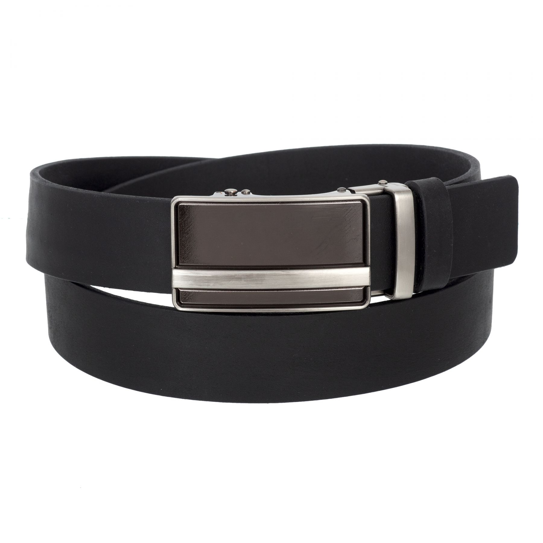 Чёрный мужской брючный ремень с автоматической пряжкой. Выполнен из высококачественной матовой натуральной кожи толщиной 3,3 мм. Подарочный фирменный мешочек. Размер пряжки: 7 см х 4 см. Отличный подарок на 23 февраля, день рождения и новый год.
