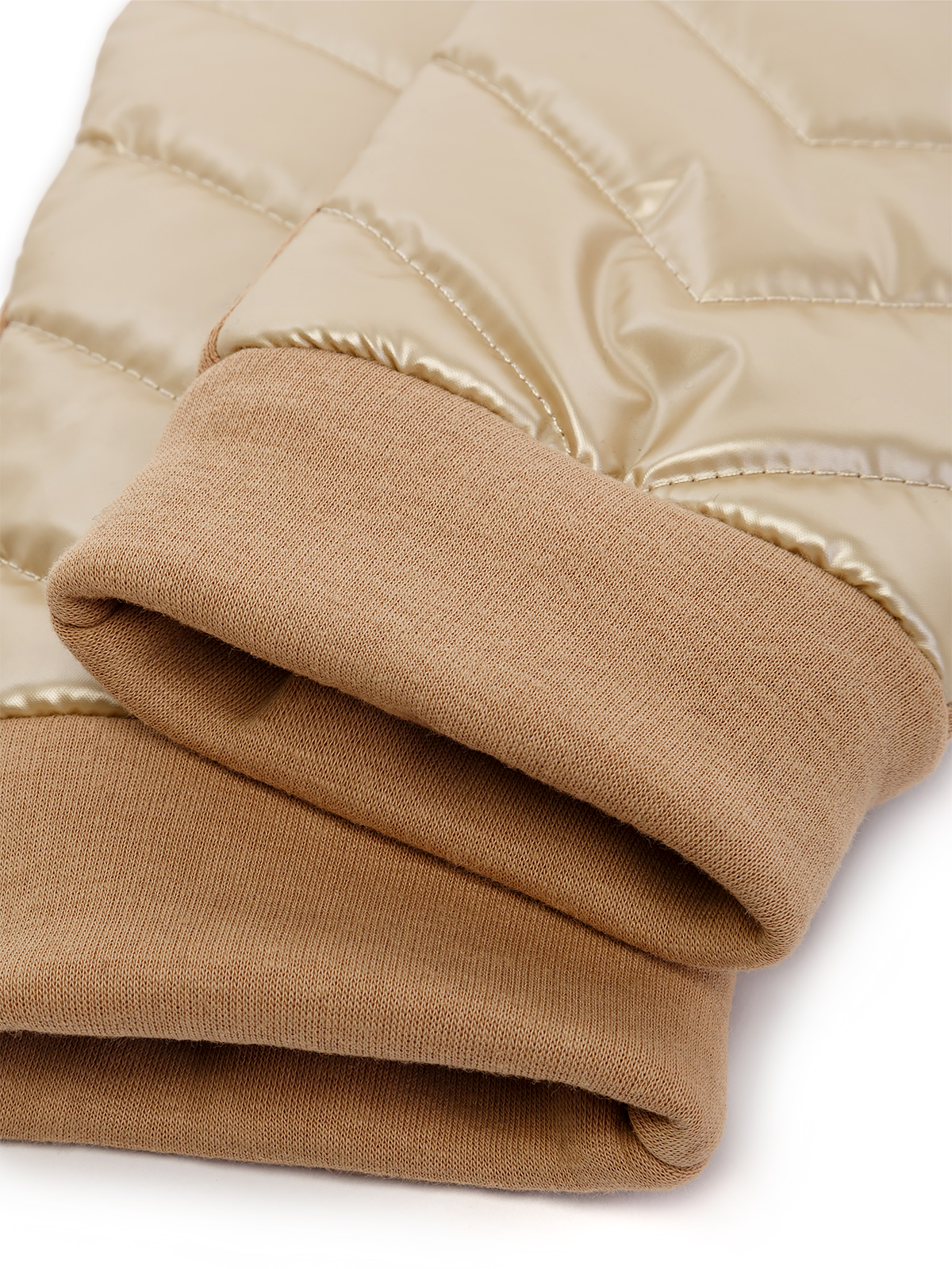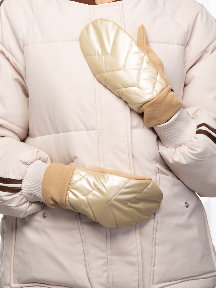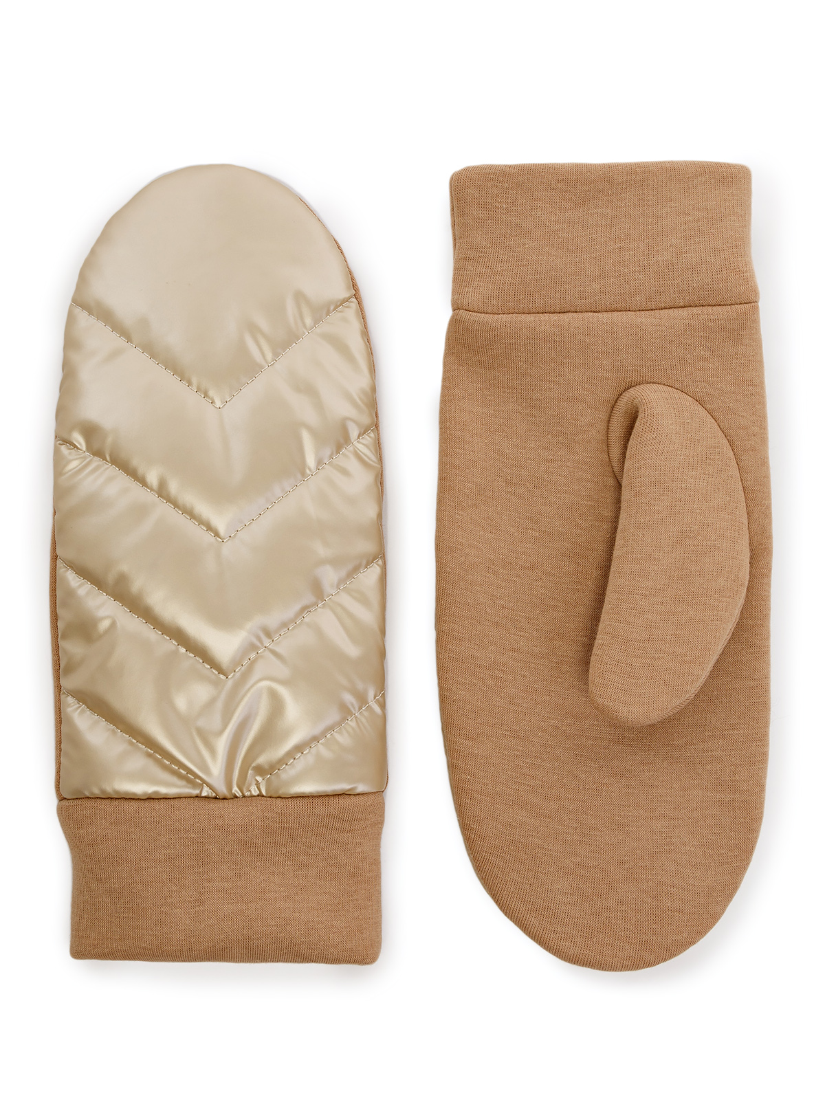 Стильные и комфортные рукавицы из ткани 100% полиэстер с лицевой стороны и трикотажа 50% полиэстер и 50% хлопок с ладонной и на манжете. Отделка - V-образная декоративная строчка на передней части. Модель выполнена на подкладке из флиса. Рукавицы универсального размера подойдут на любую полноту руки. Длина манжеты от нижней точки большого пальца до края рукавицы - 75 см.