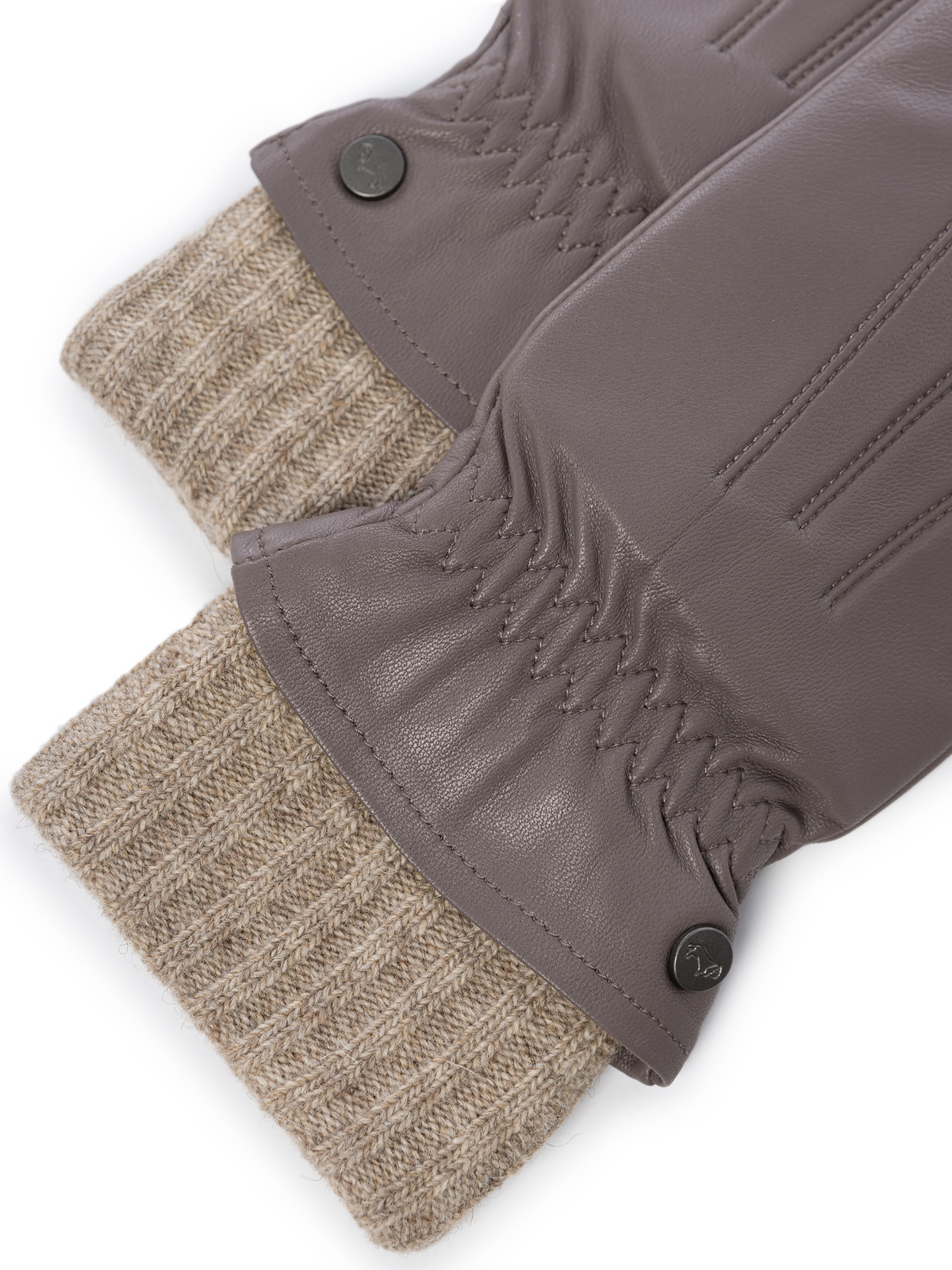 Рукавицы женские торговой марки LABBRA производства Китай. Выполнены из натуральной кожи ягненка. Подкладка: 70% шерсть + 30% акрил. Декоративная отделка машинными швами в форме трех лучей на лицевой части. Трикотажный манжет является продолжением цельно-вязанной подкладки. Длина манжеты от нижней точки большого пальца до края перчаток - 4 см.