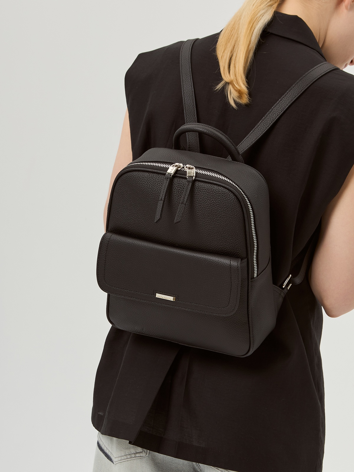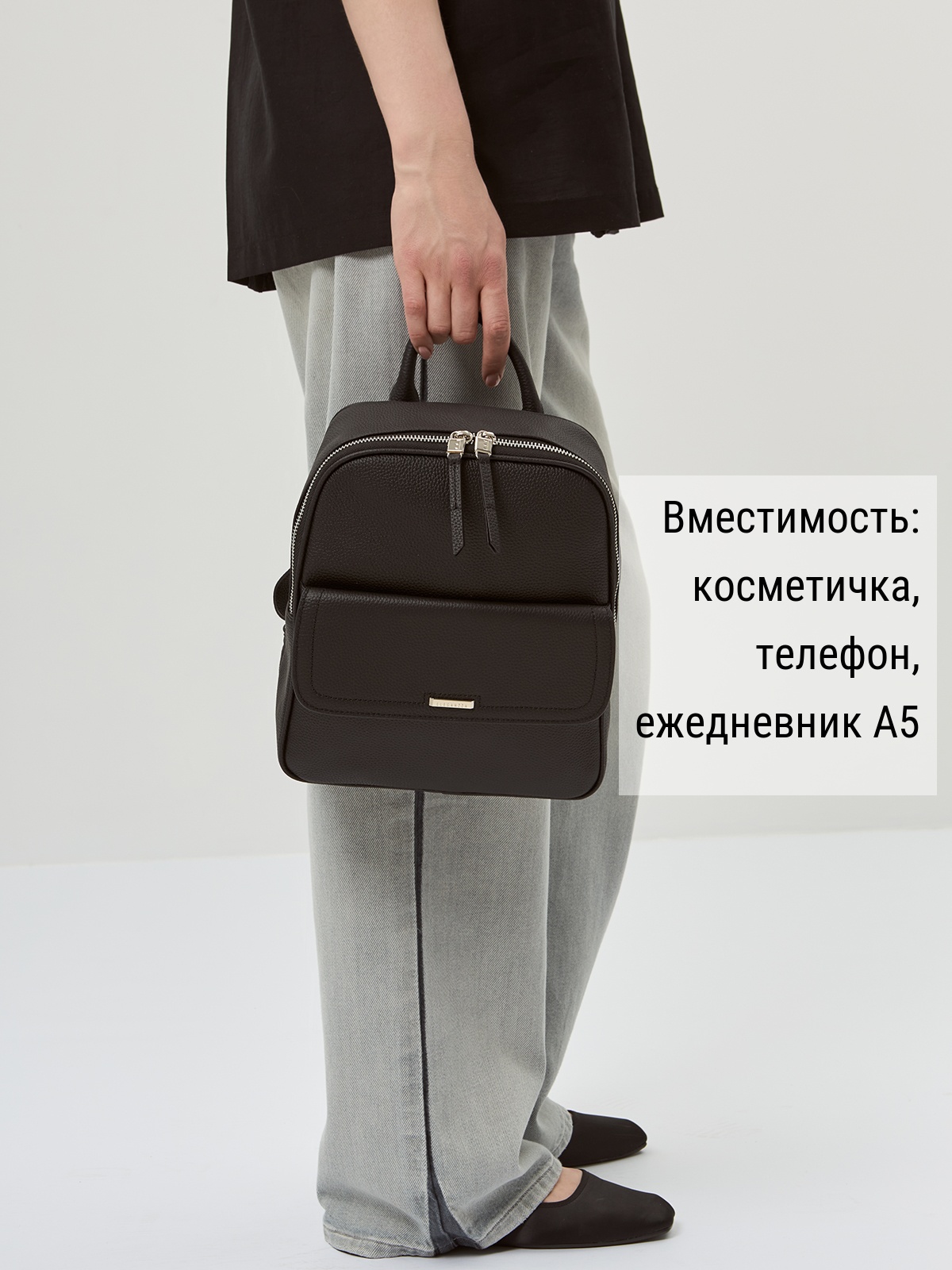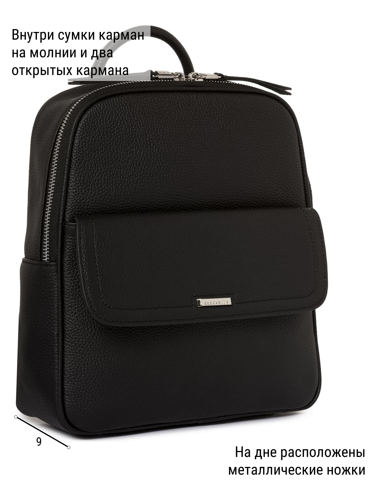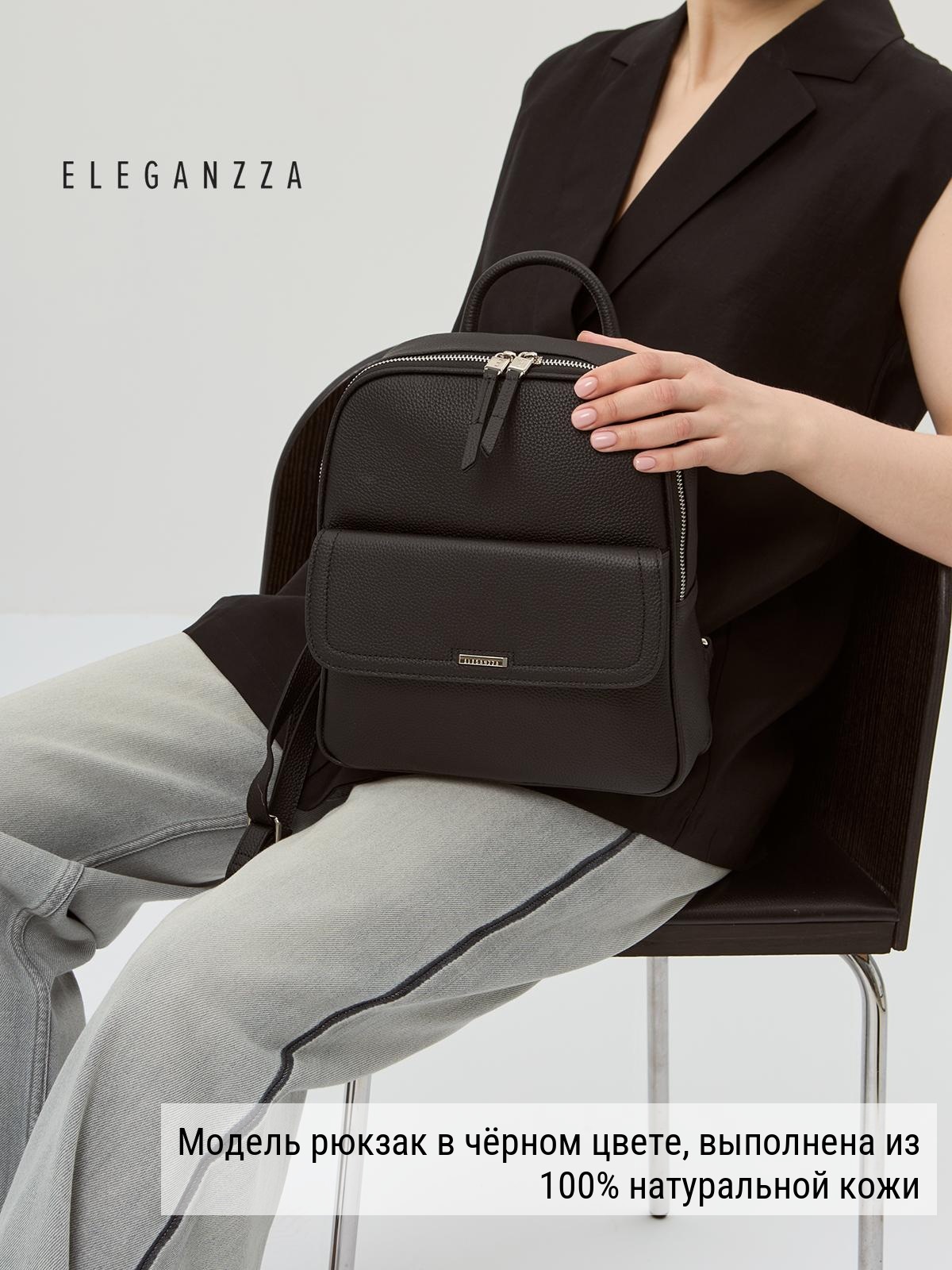 Женский рюкзак торговой марки Eleganzza из натуральной кожи. Модель застегивается на молнию. Внутри одно отделение в котором имеются карман на молнии и два открытых кармана. На передней стенке есть карман на магнитной кнопке на задней - карман на молнии. Высота ручки - 55 см. Длина лямки - 65 см. ширина - 2 см. Модель имеет ножки на дне. Не вмещает формат А4.