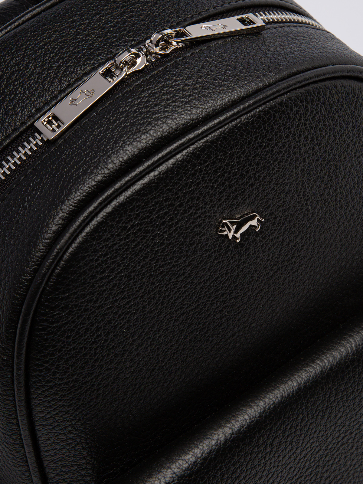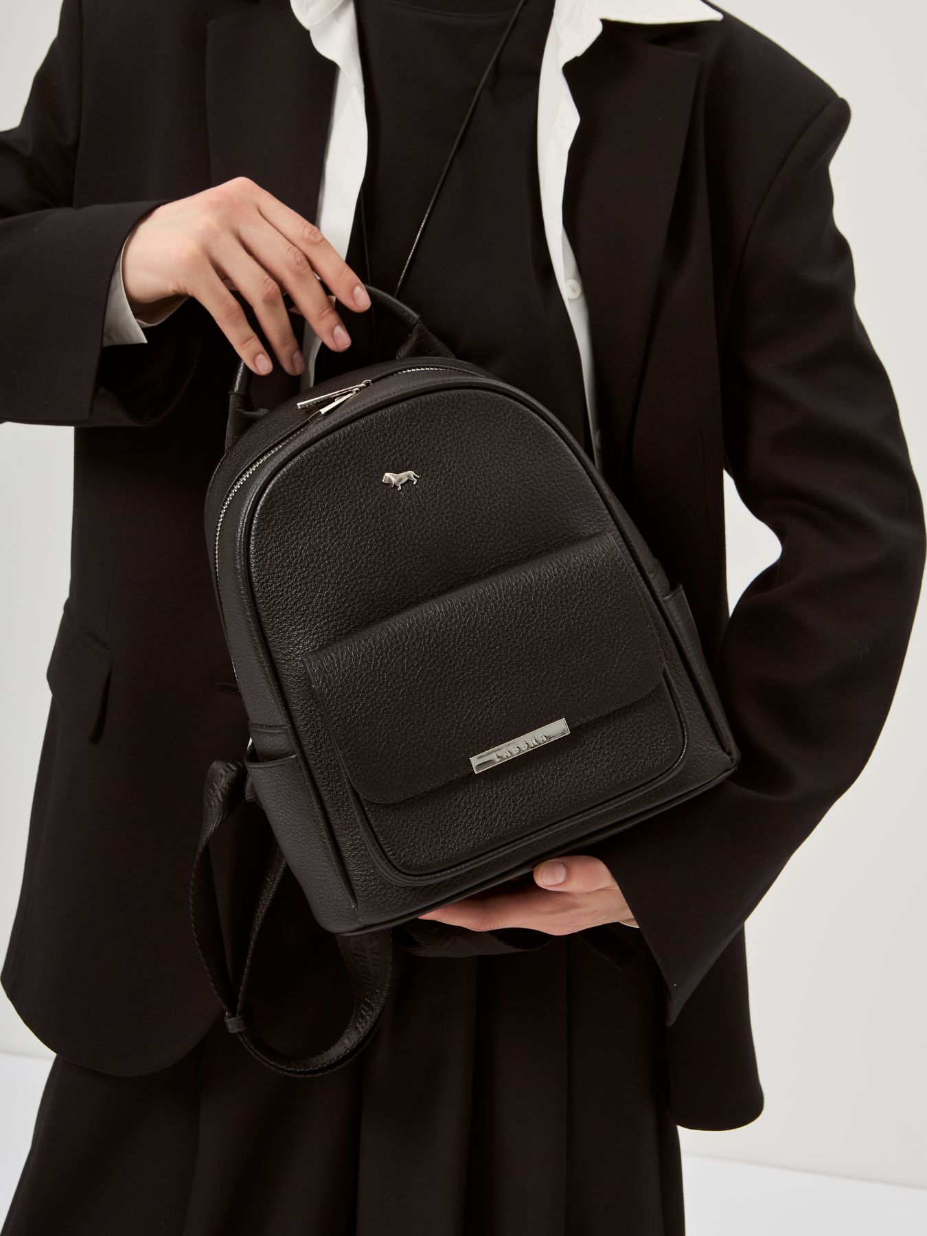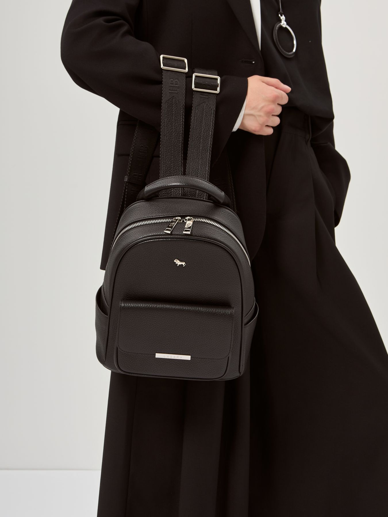 Женский рюкзак торговой марки Labbra из натуральной кожи. Модель застегивается на двухзамковую молнию. Содержит внутри один отдел в котором имеются карман на молнии и открытый карман. На передней стенке есть карман на магнитной кнопке на задней - карман на молнии. По бокам - открытые карманы. Высота ручки - 5 см. Длина лямки - 78 см. ширина - 35 см. Модель имеет ножки на дне. Не вмещает формат А4.