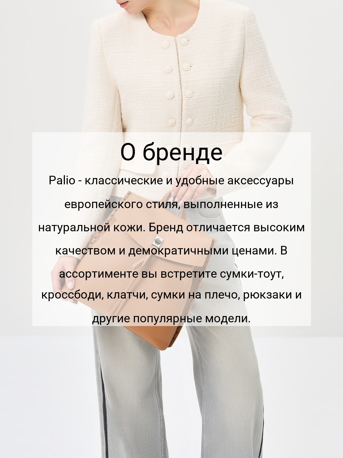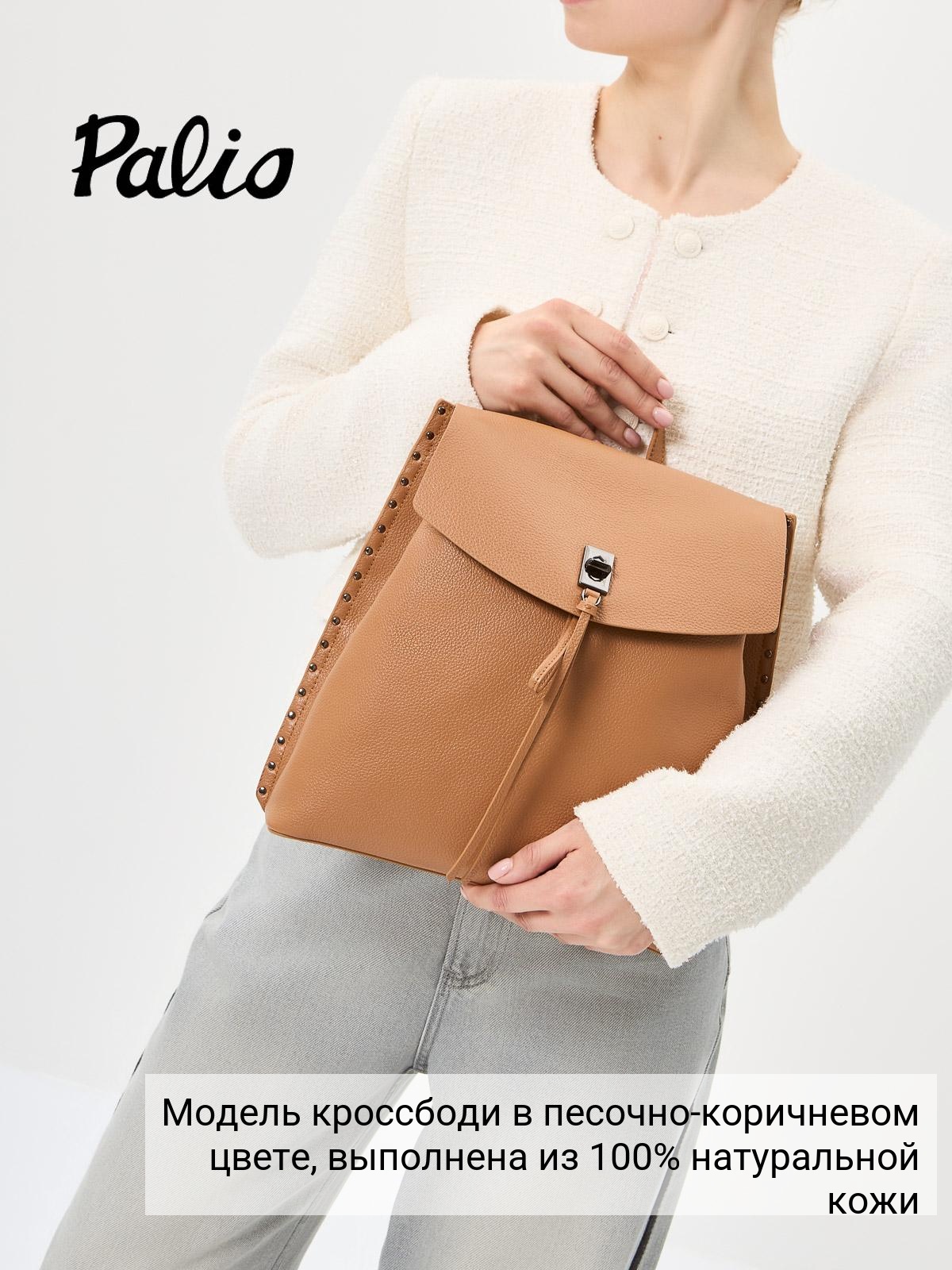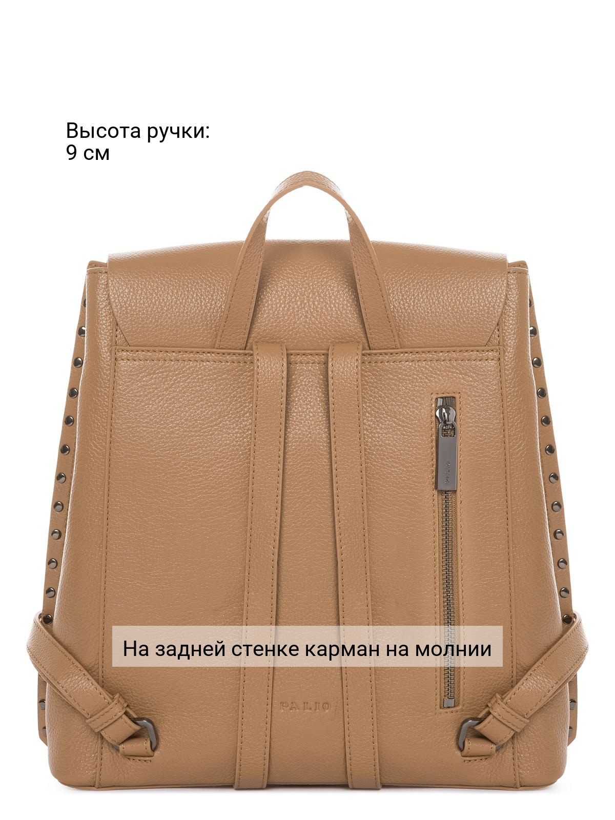 Женский рюкзак торговой марки Palio из натуральной кожи. Модель закрывается клапаном на замок. Содержит внутри два отделения в котором имеются карман на молнии и два открытых кармана. На задней стенке есть карман на молнии. Высота ручки - 9 см. Длина лямки - 71 см ширина - 15 см. Модель не имеет ножки на дне. Не вмещает формат А4.