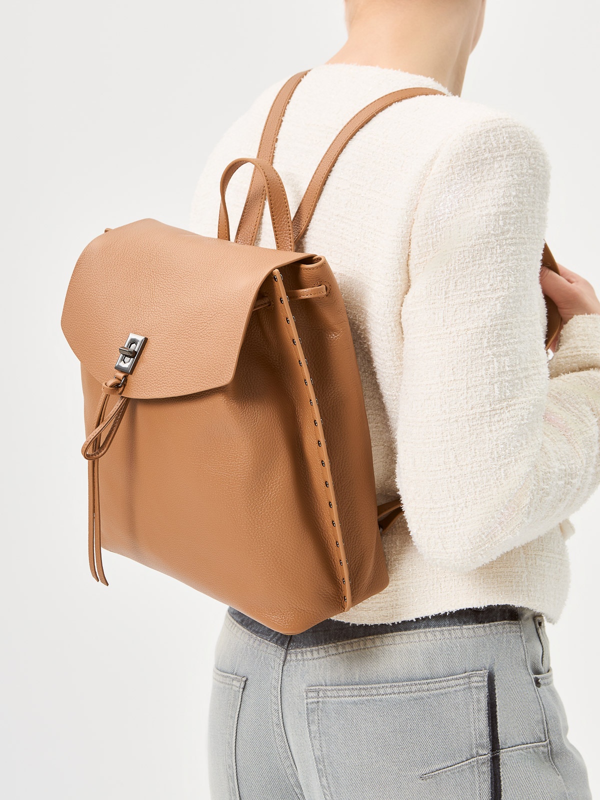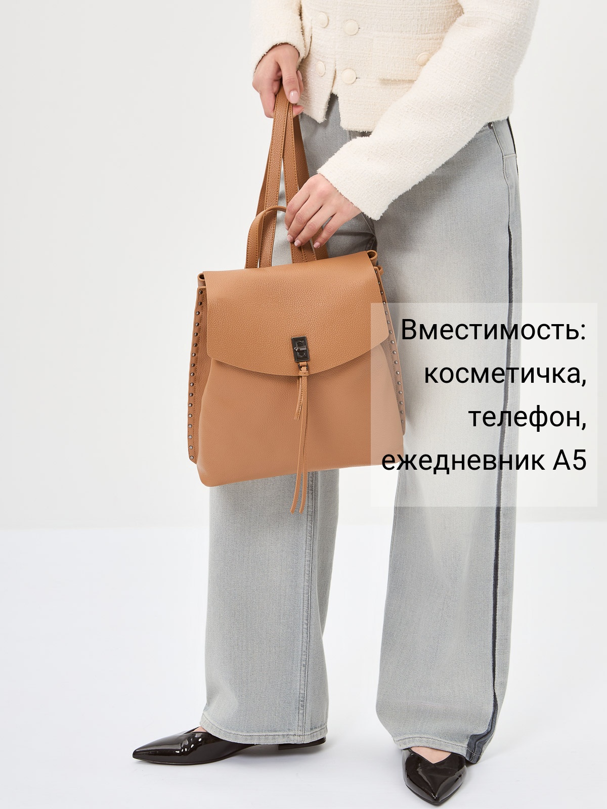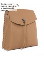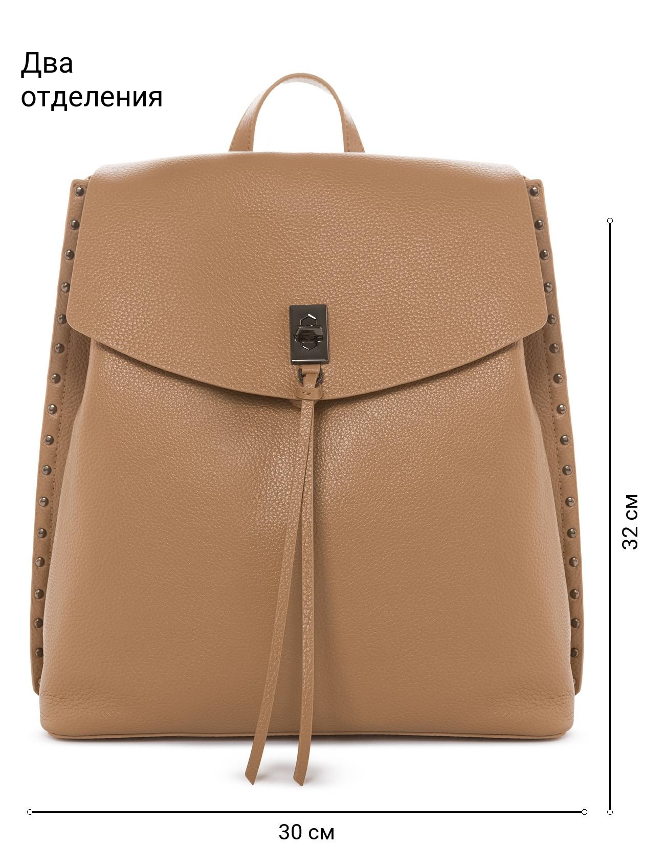 Женский рюкзак торговой марки Palio из натуральной кожи. Модель закрывается клапаном на замок. Содержит внутри два отделения в котором имеются карман на молнии и два открытых кармана. На задней стенке есть карман на молнии. Высота ручки - 9 см. Длина лямки - 71 см ширина - 15 см. Модель не имеет ножки на дне. Не вмещает формат А4.