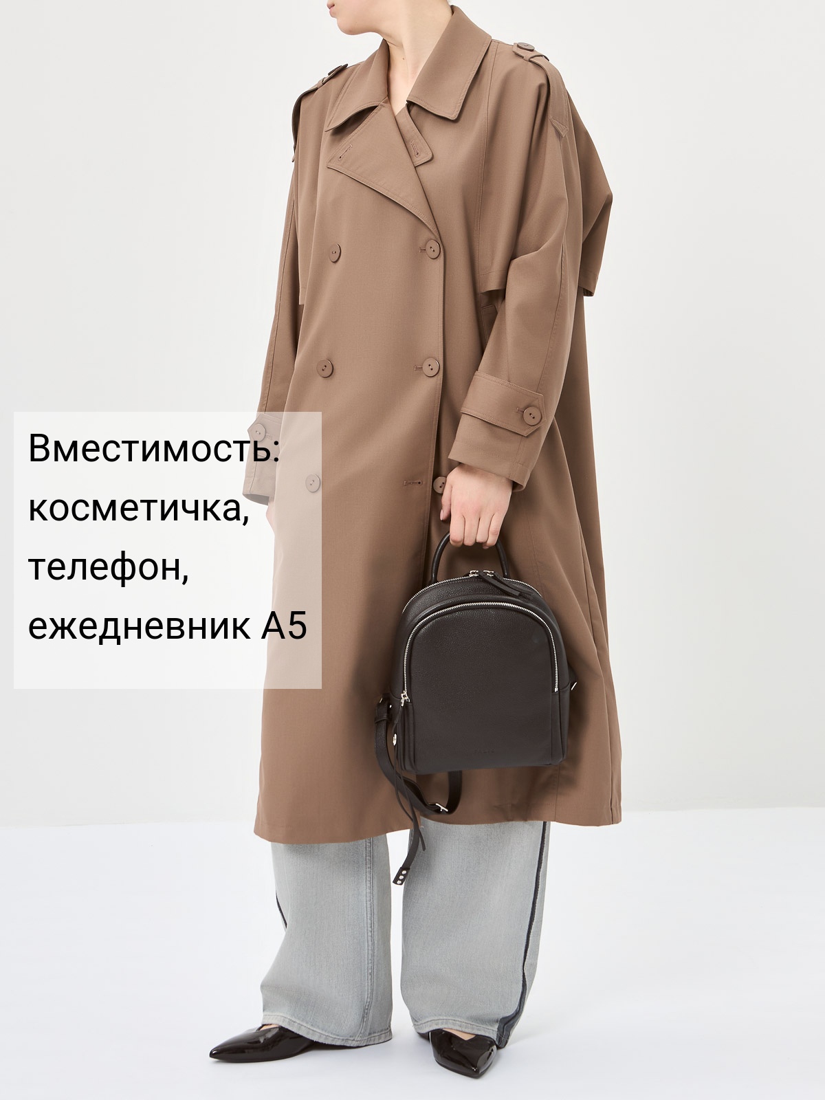 Женский рюкзак торговой марки Palio из натуральной кожи. Модель застегивается на молнию. Содержит внутри одно отделение в котором имеется карман на молнии. На передней стенке есть карман на молнии в котором имеется открытый карман. Высота ручки - 5 см. Длина лямки - 67 см ширина - 15 см. Модель не имеет ножки на дне. Не вмещает формат А4.