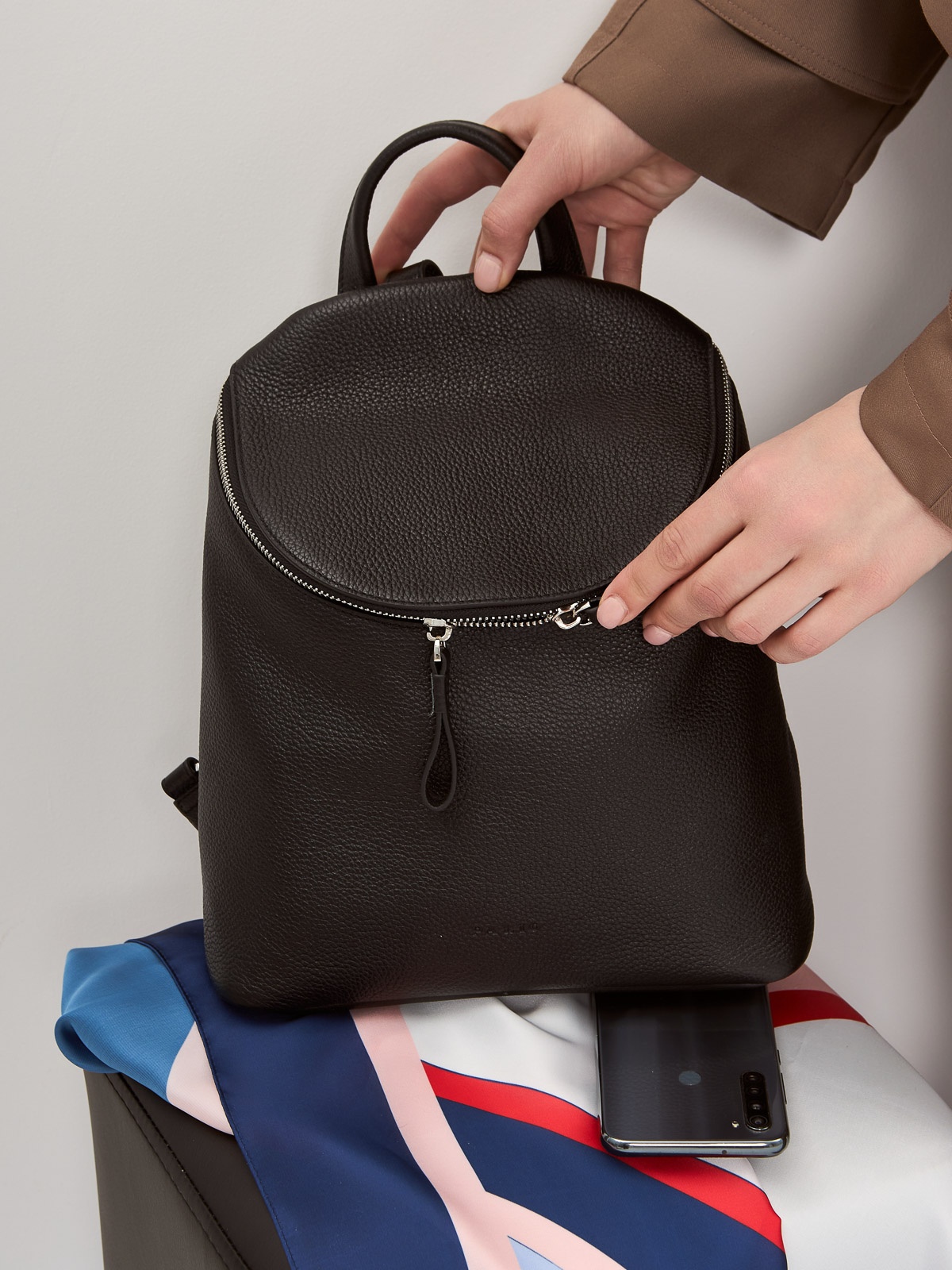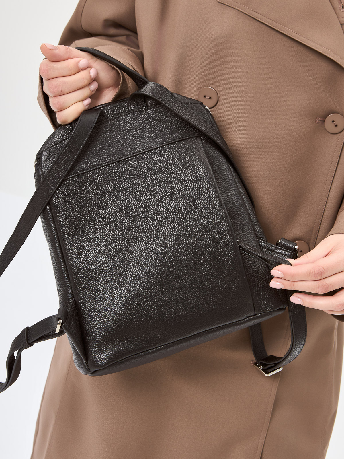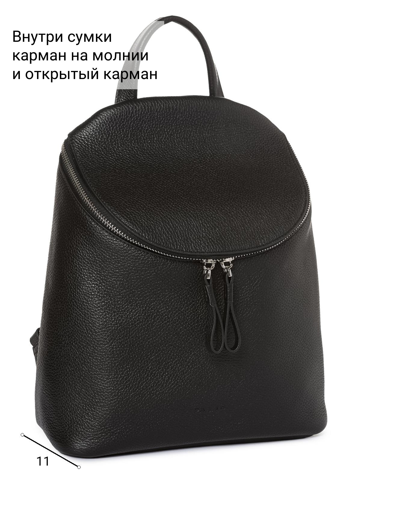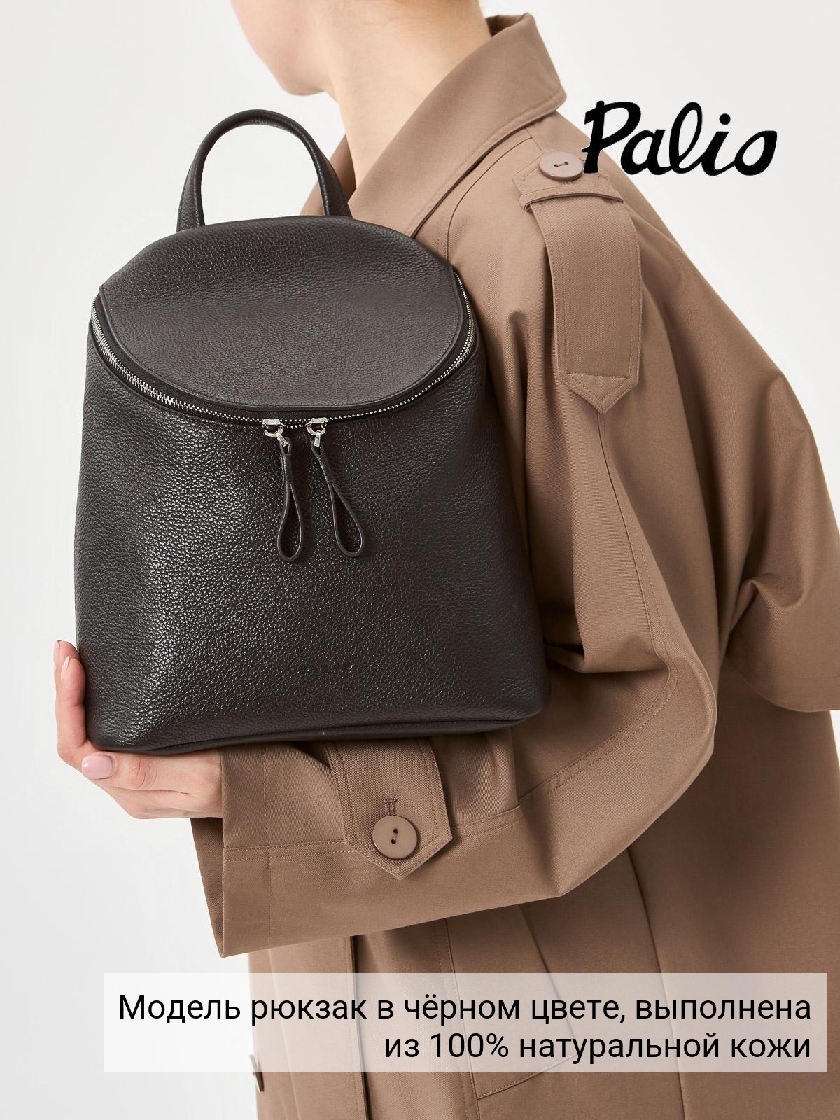Женский рюкзак торговой марки Palio из натуральной кожи. Модель застегивается на молнию. Содержит внутри одно отделение в котором имеются карман на молнии и открытый карман. На задней стенке есть карман на молнии. Высота ручки - 6 см. Длина лямки - 67 см ширина - 15 см. Модель не имеет ножки на дне. Не вмещает формат А4.