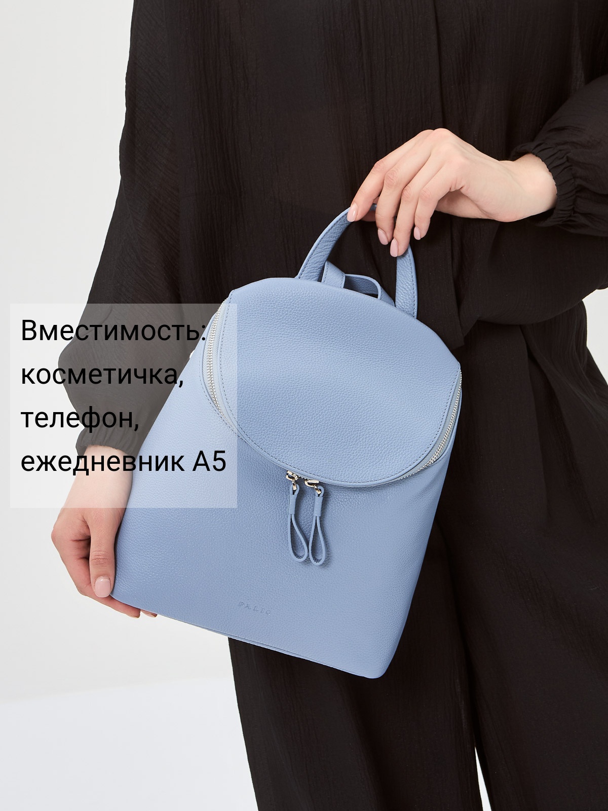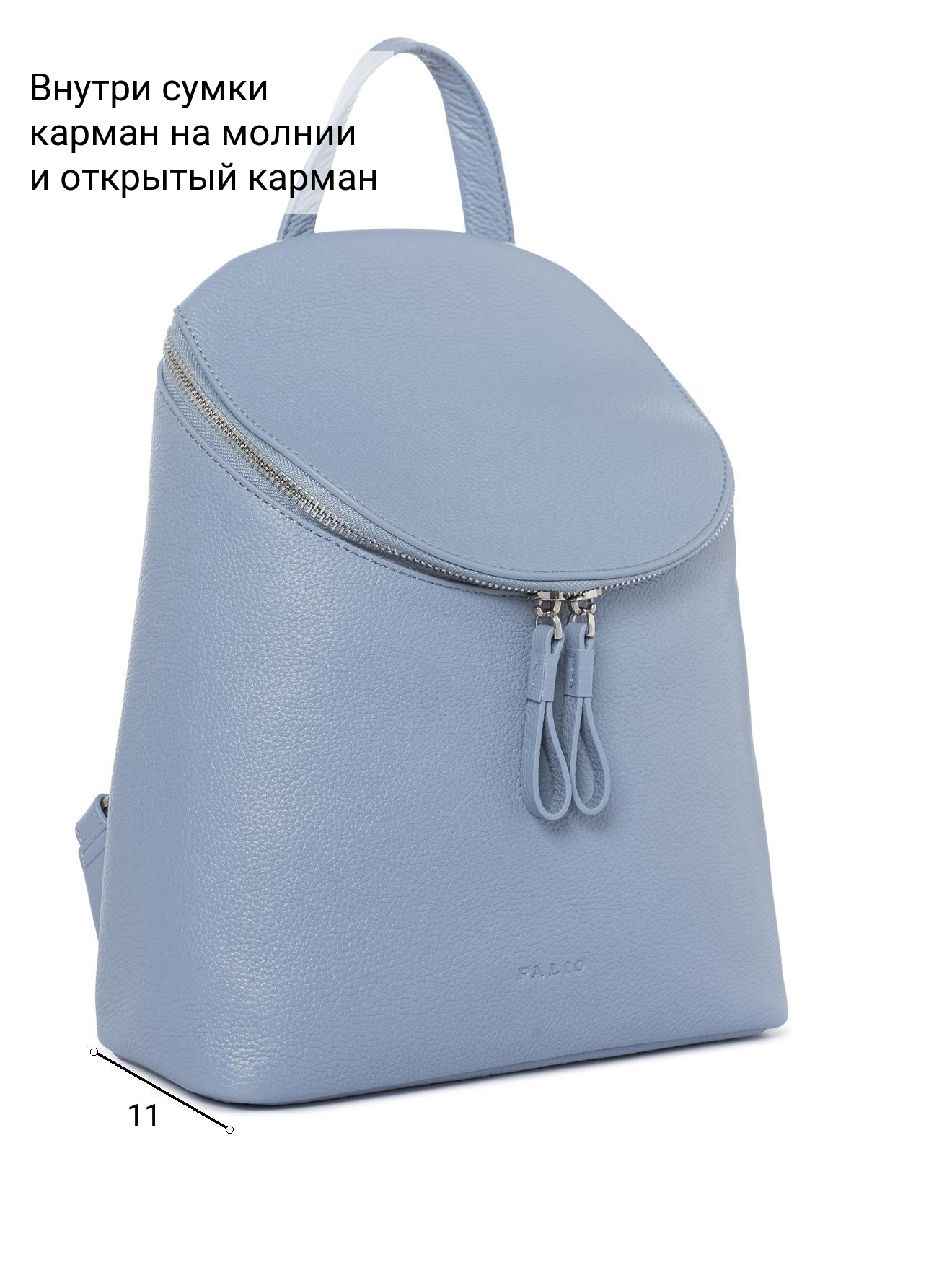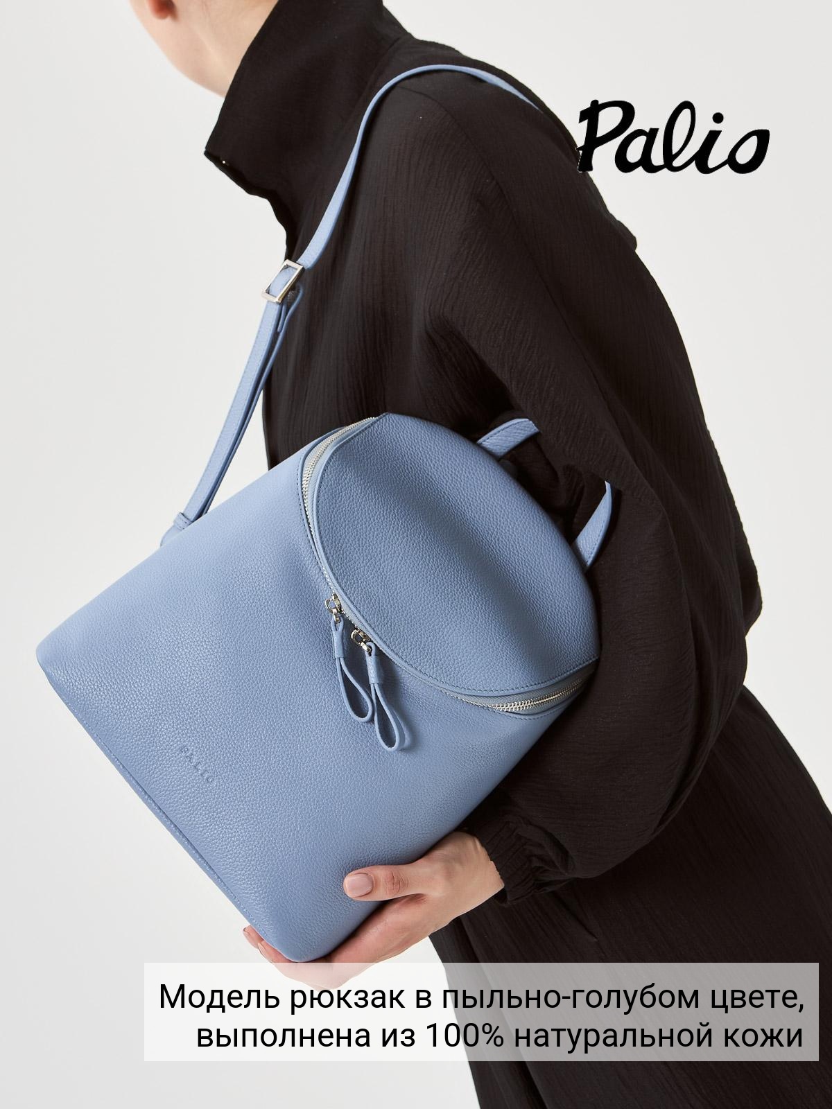 Женский рюкзак торговой марки Palio из натуральной кожи. Модель застегивается на молнию. Содержит внутри одно отделение в котором имеются карман на молнии и открытый карман. На задней стенке есть карман на молнии. Высота ручки - 6 см. Длина лямки - 67 см ширина - 15 см. Модель не имеет ножки на дне. Не вмещает формат А4.