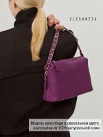 Женская сумка торговой марки ELEGANZZA. Модель закрывается на металлическую молнию и имеет два отделения разделенные средником на молнии. Внутри два открытых кармана и карман на молнии. Высота ручки - 13 см. Длина наплечного ремня из натуральной кожи - 118 см ширина 12 см. Модель имеет два боковых кармана не имеет ножки на дне не вмещает формат А4.