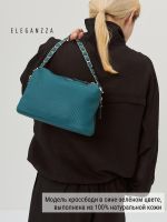 Женская сумка торговой марки ELEGANZZA. Модель закрывается на металлическую молнию и имеет два отделения разделенные средником на молнии. Внутри два открытых кармана и карман на молнии. Высота ручки - 13 см. Длина наплечного ремня из натуральной кожи - 118 см ширина 12 см. Модель имеет два боковых кармана не имеет ножки на дне не вмещает формат А4.