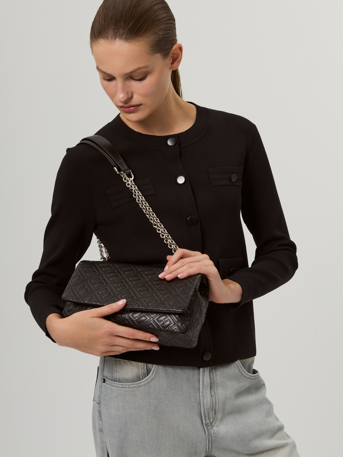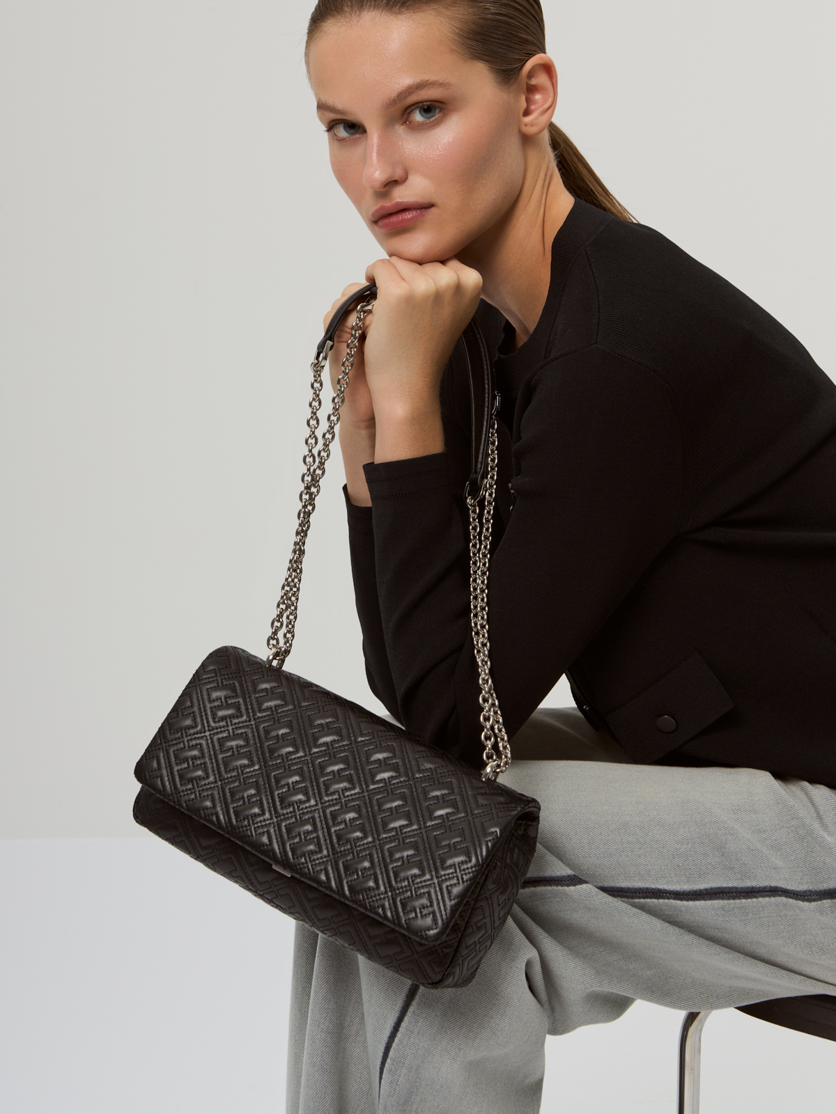 Женская сумка торговой марки Eleganzza из легкой прочной мягкой натуральной кожи декорированной стежкой-логотипом. Модель закрывается клапаном на замок. Внутри одно отделение с карманом на молнии и открытым карманом. На задней стенке сумки карман на магнитной кнопке. Высота ручек - 31 см. Длина ручки которая трансформируется в плечевой ремень - 120 см. Модель не имеет ножки на дне. Не вмещает формат А4