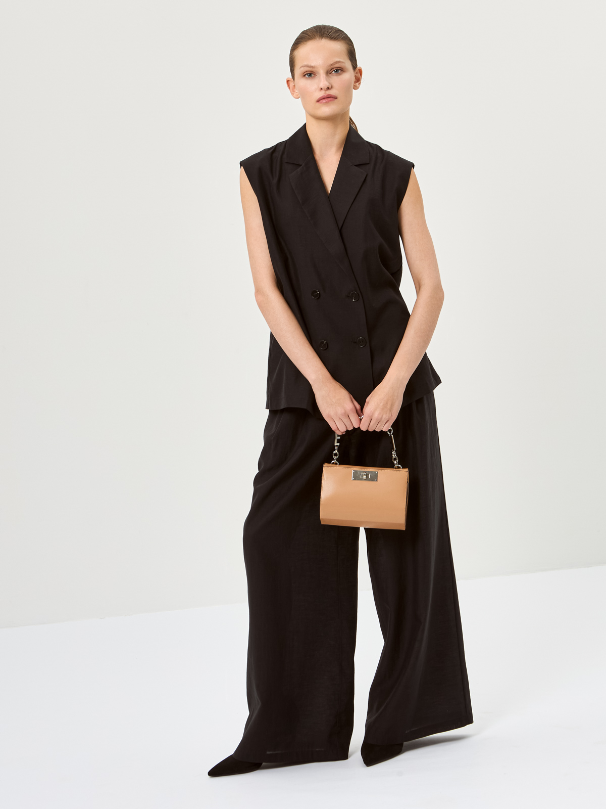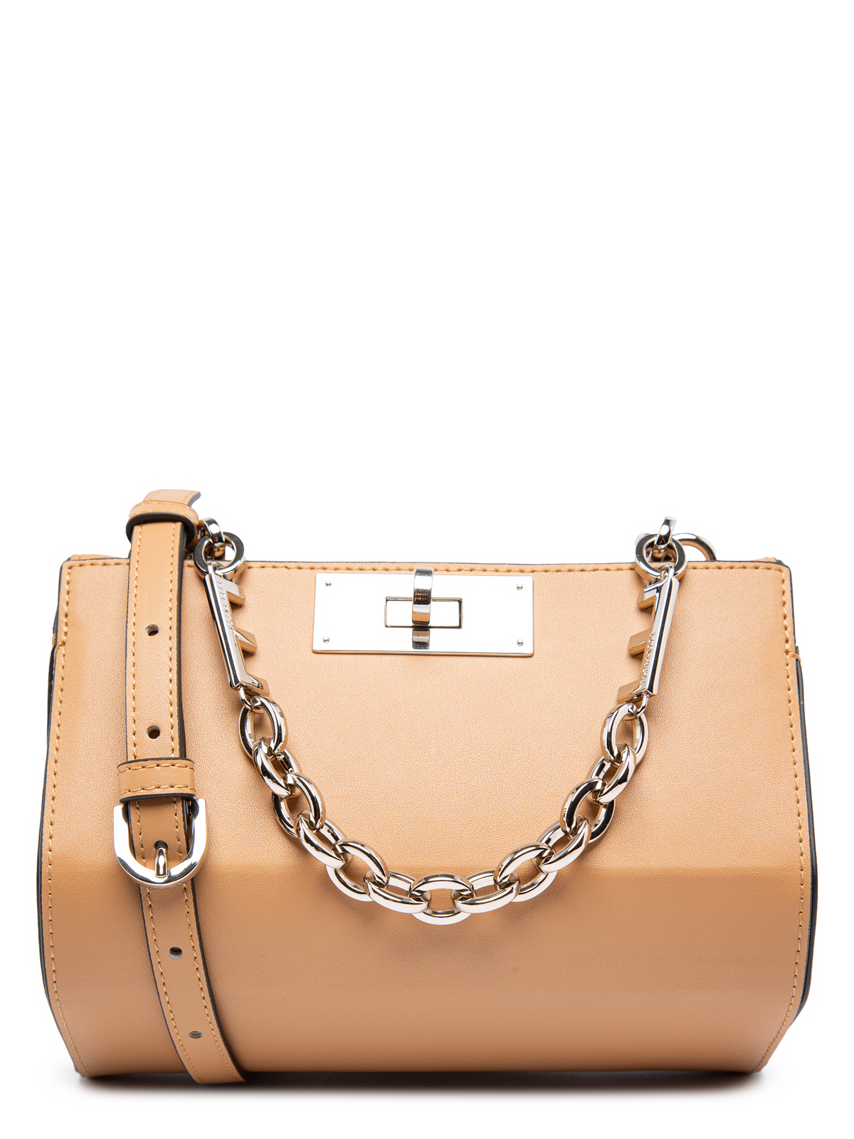 Женская сумка торговой марки Eleganzza из натуральной кожи. Высокотехнологичные материалы используемые при производстве этой модели позволяют создать сложную геометрическую конструкцию сохранив при этом мягкость и комфорт изделия. Модель закрывается на замок. Внутри одно отделение с открытым карманом. Высота металлической ручки-цепочки - 14 см. Максимальная длина регулируемого съемного плечевого ремня из натуральной кожи - 120 см ширина - 15 см. Модель не имеет ножки на дне. Не вмещает формат А4.