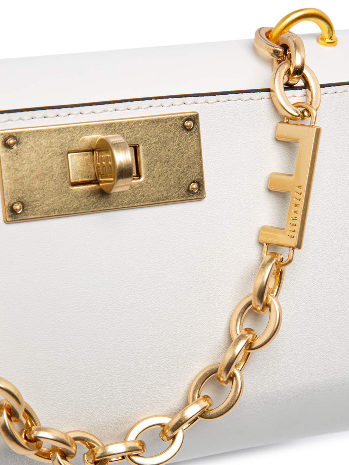 Женская сумка торговой марки Eleganzza из натуральной кожи. Высокотехнологичные материалы используемые при производстве этой модели позволяют создать сложную геометрическую конструкцию сохранив при этом мягкость и комфорт изделия. Модель закрывается на замок. Внутри одно отделение с открытым карманом. Высота металлической ручки-цепочки - 14 см. Максимальная длина регулируемого съемного плечевого ремня из натуральной кожи - 120 см ширина - 15 см. Модель не имеет ножки на дне. Не вмещает формат А4.