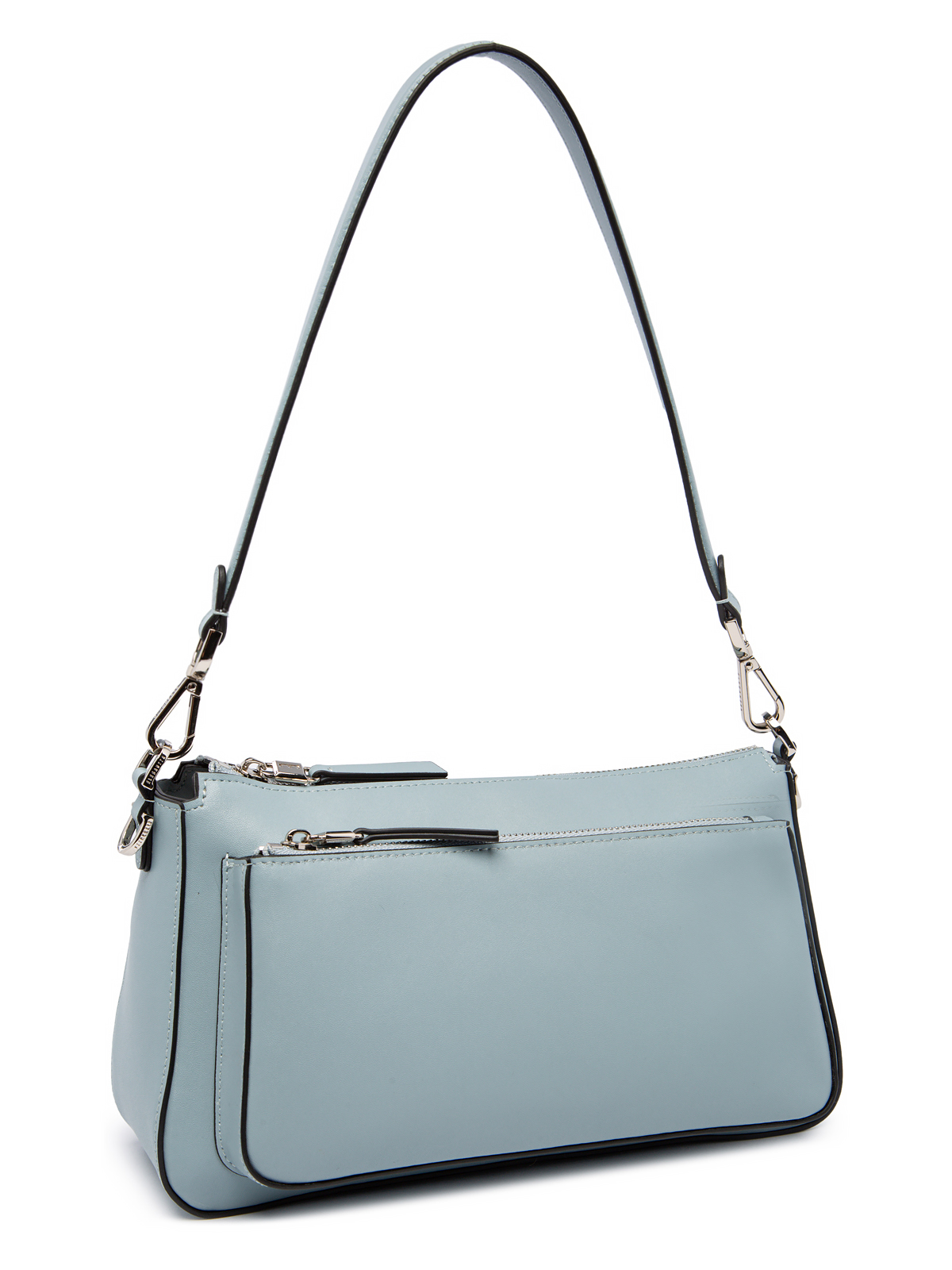 Женская сумка торговой марки Eleganzza из натуральной кожи. Модель закрывается на металлическую молнию и имеет внутри одно отделение с карманом на молнии и открытым карманом. На задней и передней стенках по одному карману на молнии. Высота ручки - 27 см. В комплекте два наплечных ремня: широкий и узкий. Длина широкого ремня - 105 см ширина - 4 см. На широкий ремень крепится мини-кошелек на молнии. Модель не имеет ножки на дне.