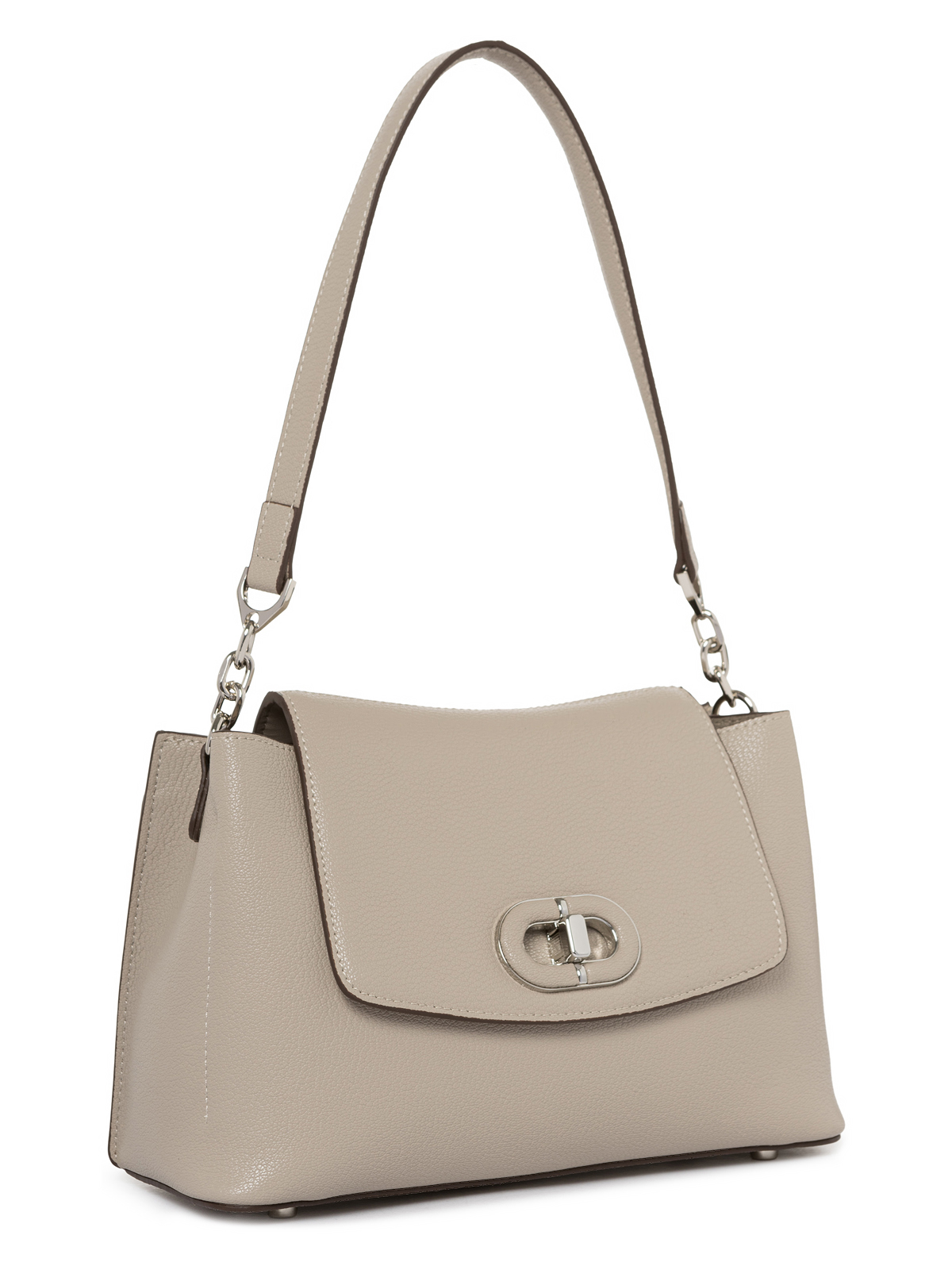 Женская сумка торговой марки Labbra из натуральной кожи. Модель застегивается на молнию и закрывается клапаном на замок. Содержит внутри один отдел по бокам имеются два отделения. В отделе есть три кармана (один из них на молнии). На задней стенке есть карман на магнитной кнопке. Высота ручки – 25 см. Максимальная длина регулируемого съемного плечевого ремня из натуральной кожи – 126 см ширина – 15 см. Модель имеет ножки на дне. Не вмещает формат А4.