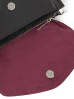 Женская сумка торговой марки Labbra из натуральной кожи. Модель закрывается клапаном на магнитную кнопку. Содержит внутри три отделения. Центральное отделение закрывается на металлическую молнию и не имеет карманов. В одном из боковых отделений имеется открытый карман в другом - четыре кармашка для пластиковых карт. На задней стенке есть карман на магнитной кнопке. Длина регулируемого наплечного ремня из текстиля - 125 см ширина - 5 см. Длина наплечного ремня из натуральной кожи – 118 см. ширина – 1.8 см. Модель не имеет ножки на дне. Не вмещает формат А4.