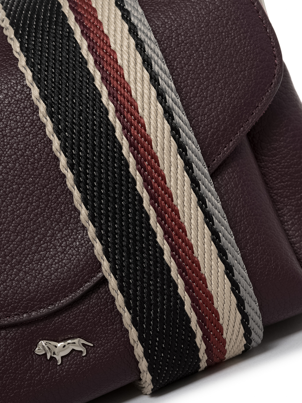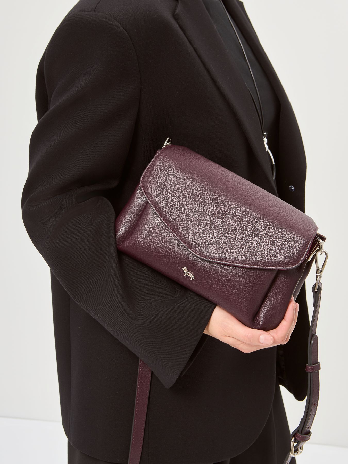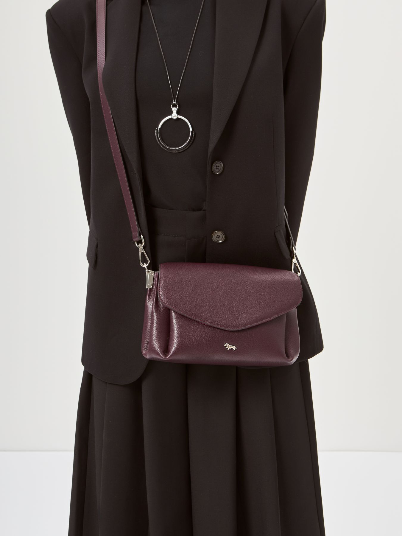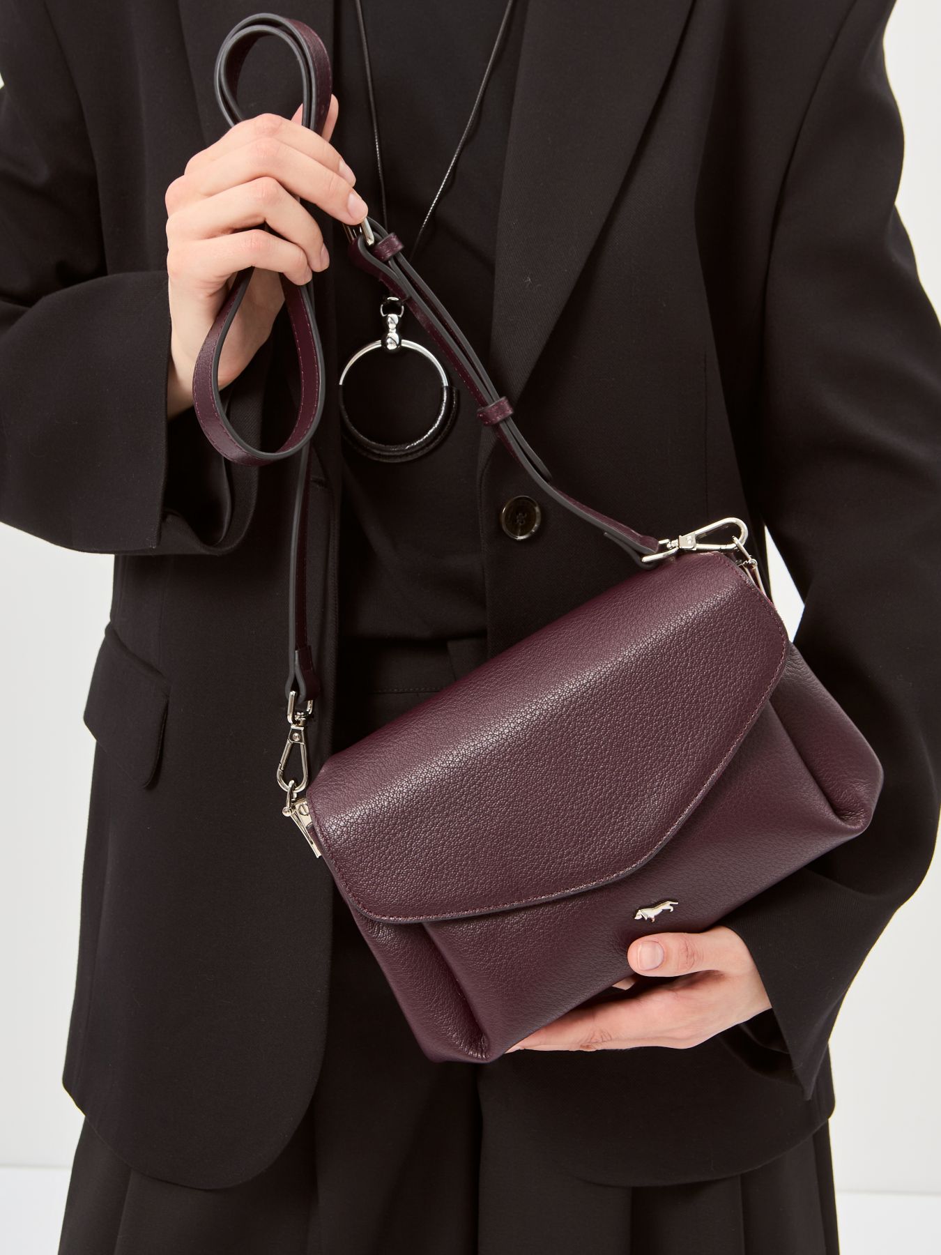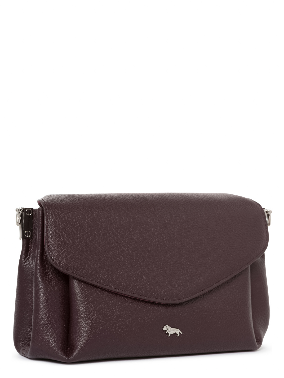 Женская сумка торговой марки Labbra из натуральной кожи. Модель закрывается клапаном на магнитную кнопку. Содержит внутри три отделения. Центральное отделение закрывается на металлическую молнию и не имеет карманов. В одном из боковых отделений имеется открытый карман в другом - четыре кармашка для пластиковых карт. На задней стенке есть карман на магнитной кнопке. Длина регулируемого наплечного ремня из текстиля - 125 см ширина - 5 см. Длина наплечного ремня из натуральной кожи – 118 см. ширина – 1.8 см. Модель не имеет ножки на дне. Не вмещает формат А4.