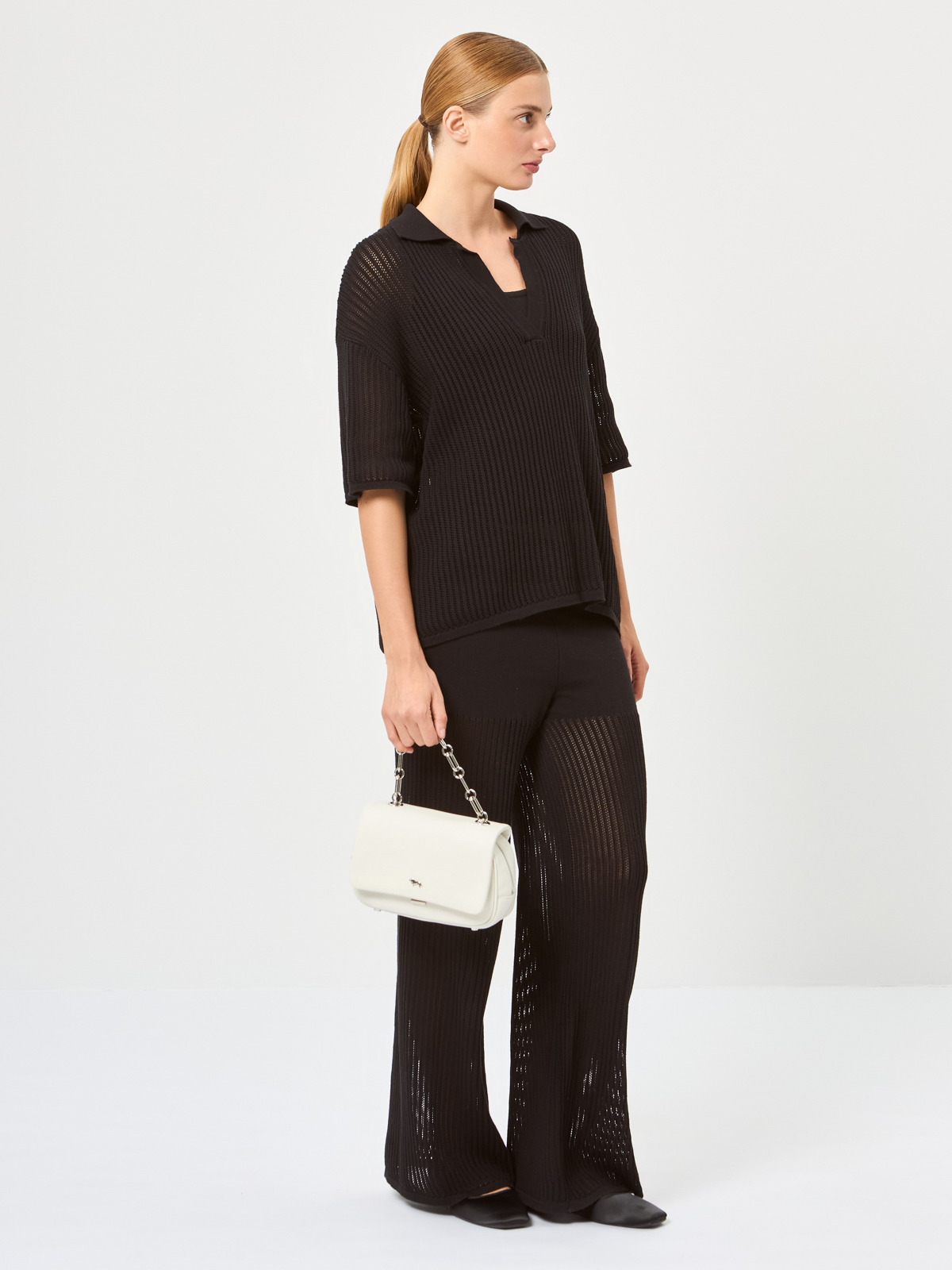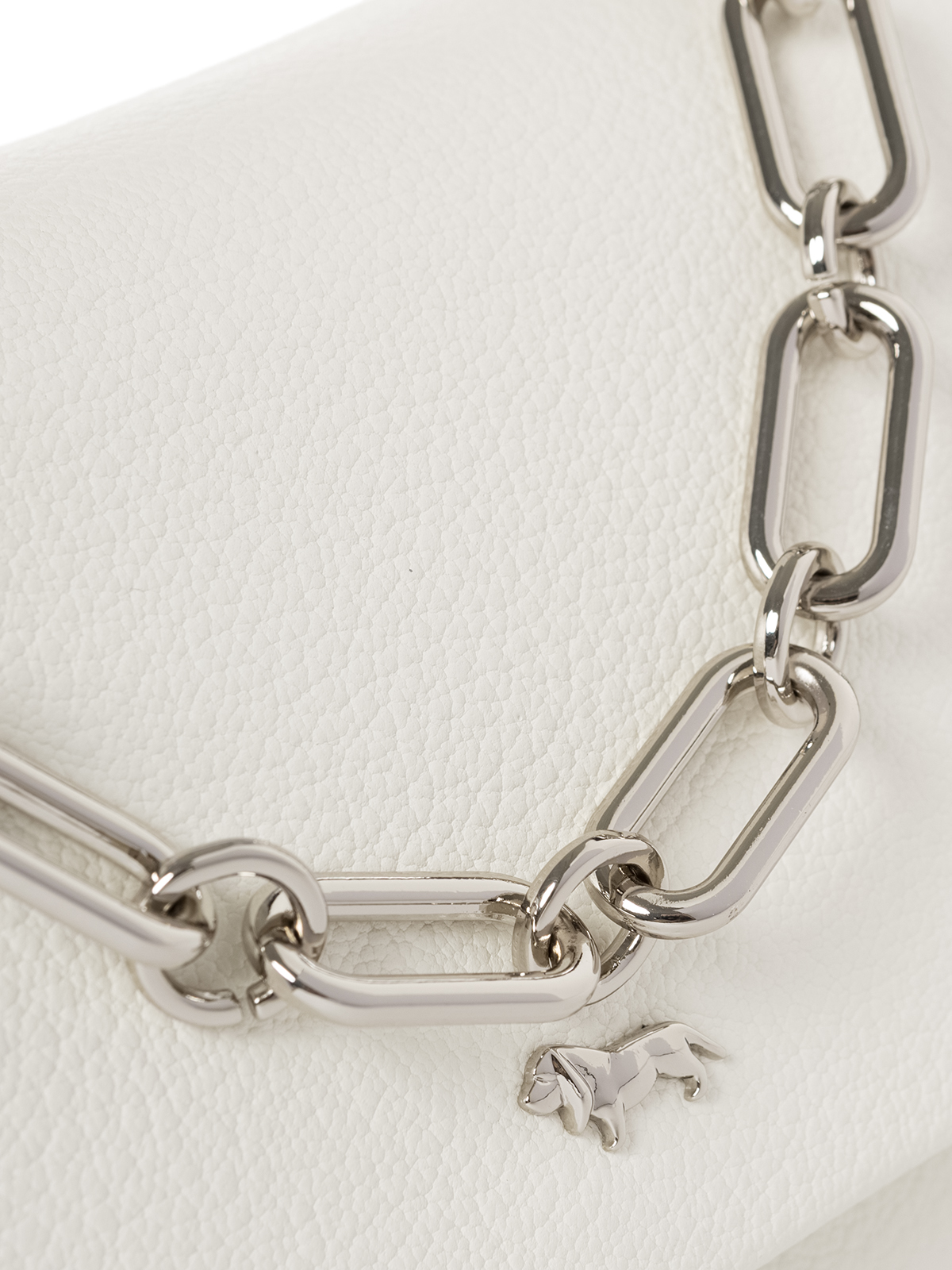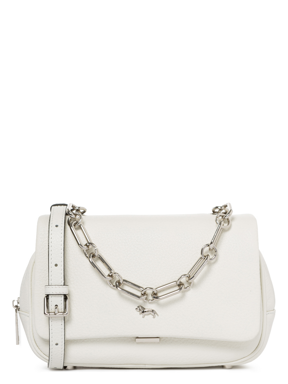 Женская сумка торговой марки Labbra из натуральной кожи. Модель закрывается на клапан с замком и металлическую молнию. Внутри одно отделение с карманом на молнии и открытым карманом. На задней стенке - карман на молнии. Высота ручки - цепочки - 13 см. Длина наплечного ремня из натуральной кожи - 110 см. ширина – 15 см. Модель имеет ножки на дне.