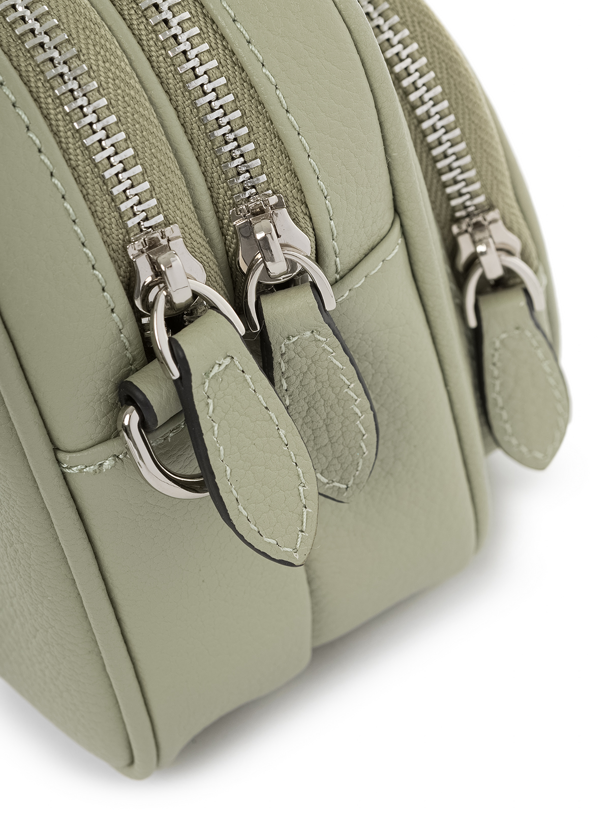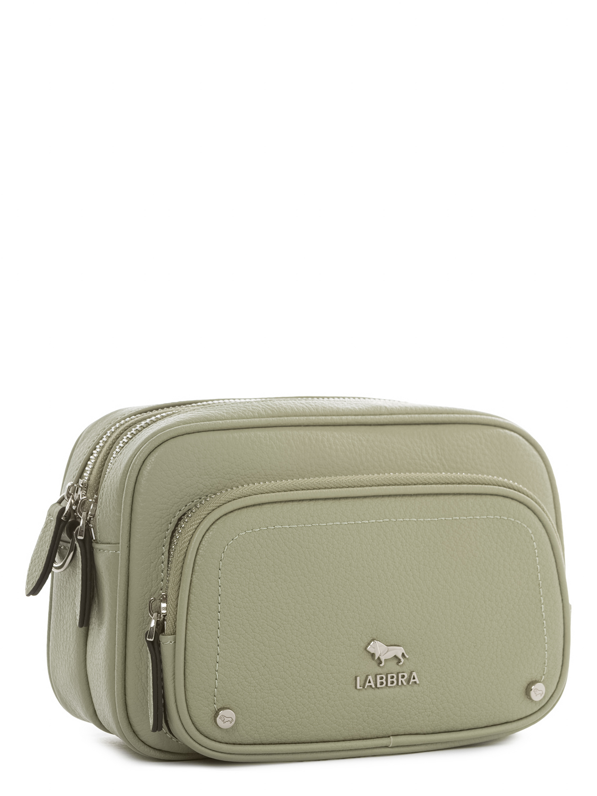 Женская сумка торговой марки Labbra из натуральной кожи. Модель имеет два самостоятельных отделения которые закрываются на металлические молнии. Заднее отделение внутри содержит карман на молнии. Переднее отделение внутри содержит четыре отделения для пластиковых карт. На задней стенке - карман на молнии. На передней стенке - карман на молнии. Длина наплечного ремня из натуральной кожи - 118 см. ширина - 15 см. Модель не имеет ножки на дне.