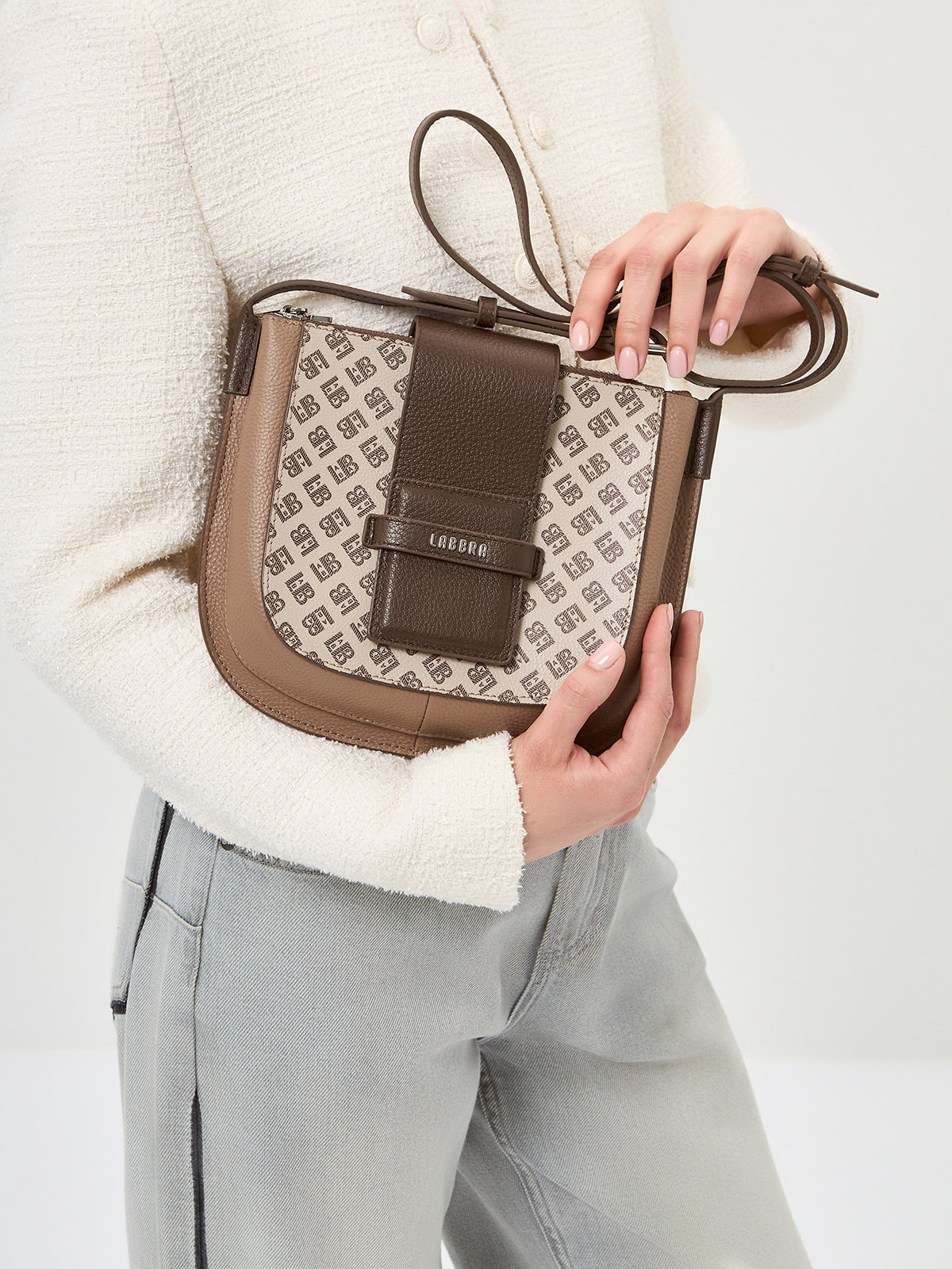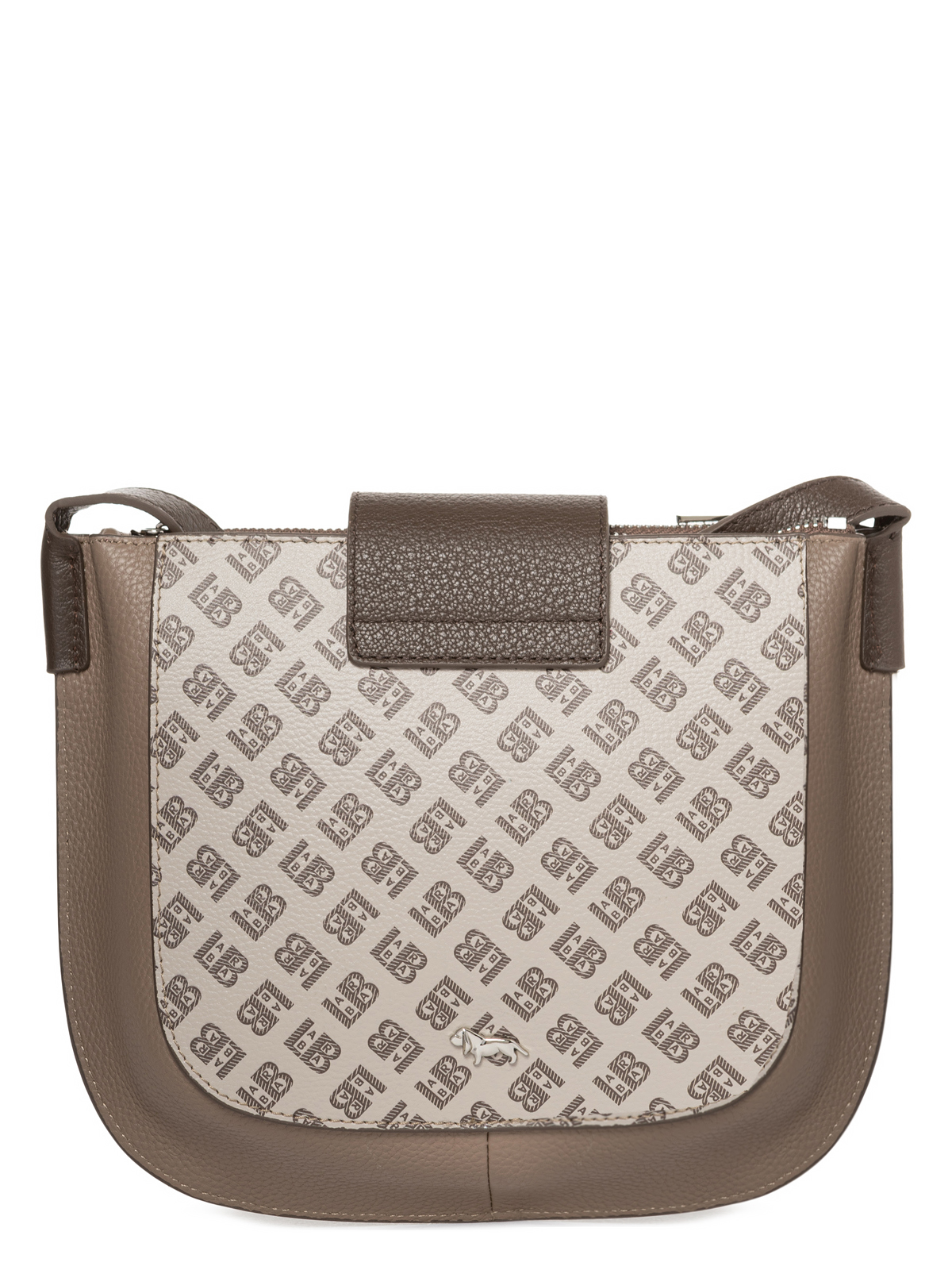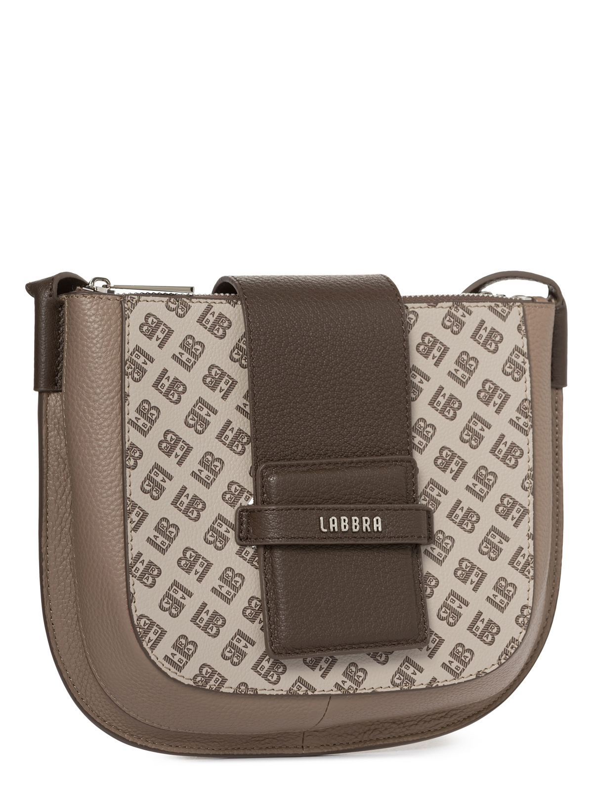 Женская сумка торговой марки Labbra из натуральной кожи. Модель закрывается на узкий перекидной клапан и имеет три отделения. Центральное отделение закрывается на магнитную кнопку. Дополнительные отделения закрываются на металлические молнии. Заднее отделение внутри содержит открытый карман. Переднее отделение содержит четыре отделения для пластиковых карт. Длина несъёмного регулируемого наплечного ремня из натуральной кожи - 96 см. ширина - 17 см. Модель не имеет ножки на дне.