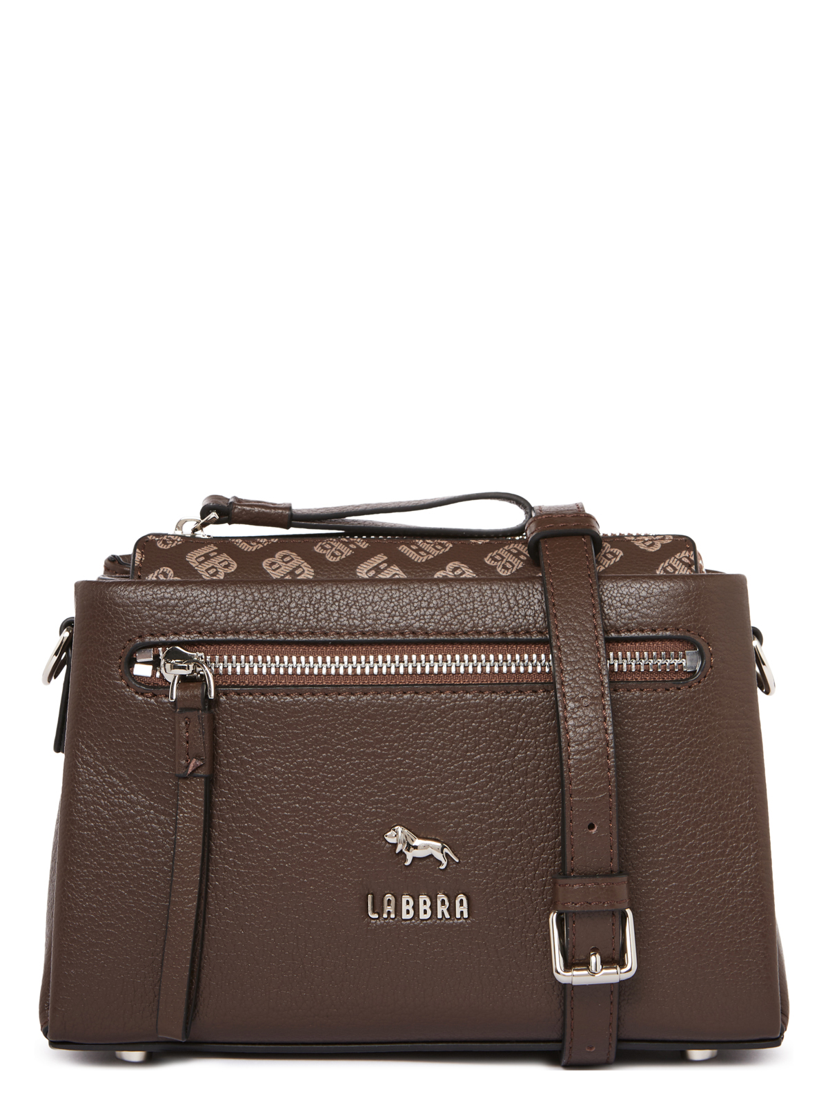 Женская сумка торговой марки Labbra из натуральной кожи. Модель застегивается на молнию. Содержит внутри один отдел в котором имеются открытый карман и карман на молнии по бокам имеются два отделения. На передней стенке есть карман на молнии. Максимальная длина съемного регулируемого плечевого ремня из натуральной кожи – 110 см ширина – 15 см. Модель имеет ножки на дне. Не вмещает формат А4.