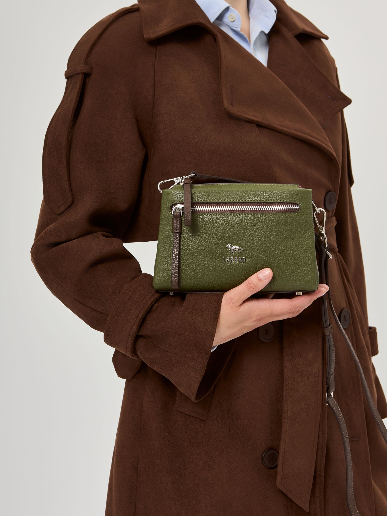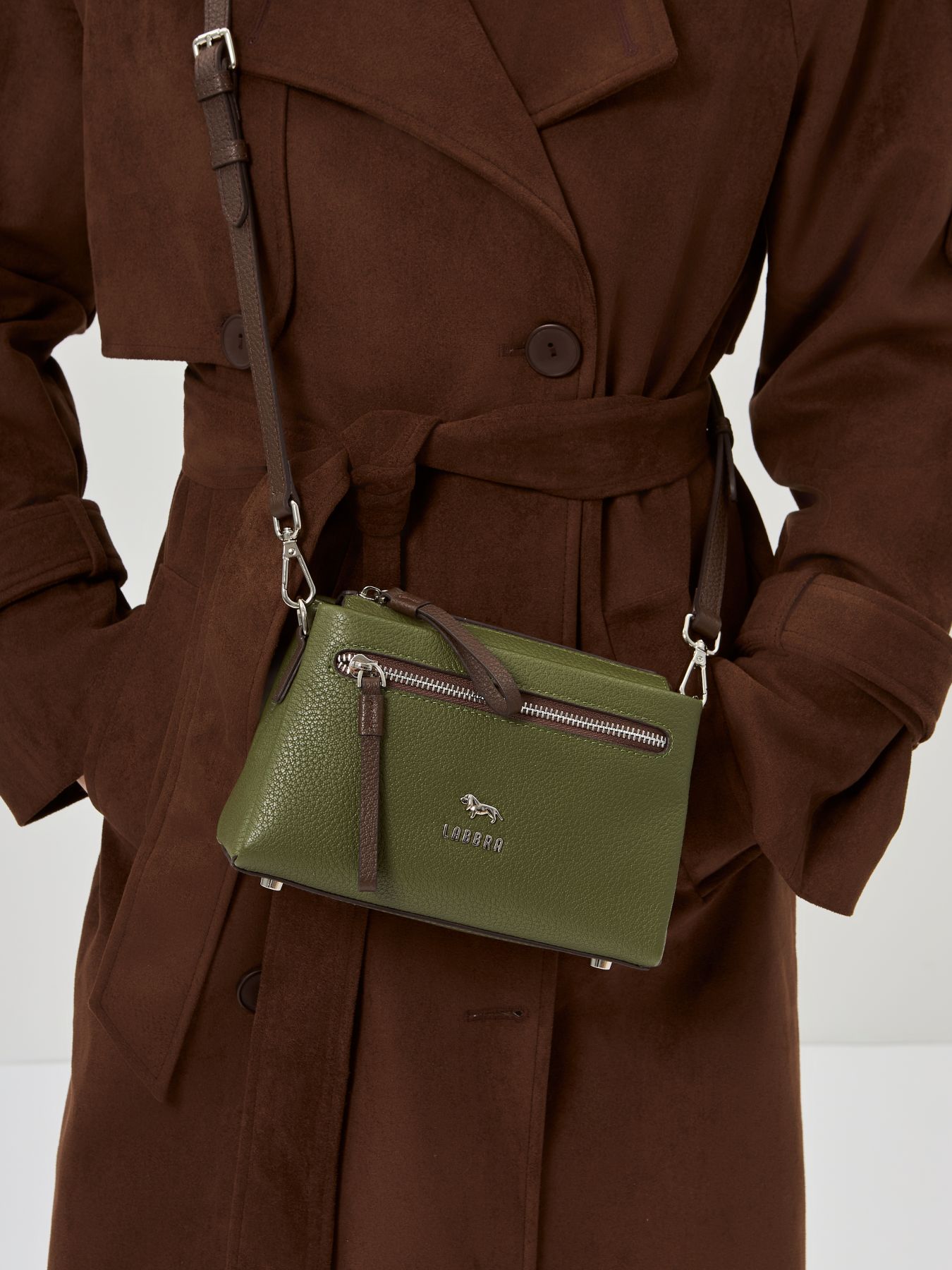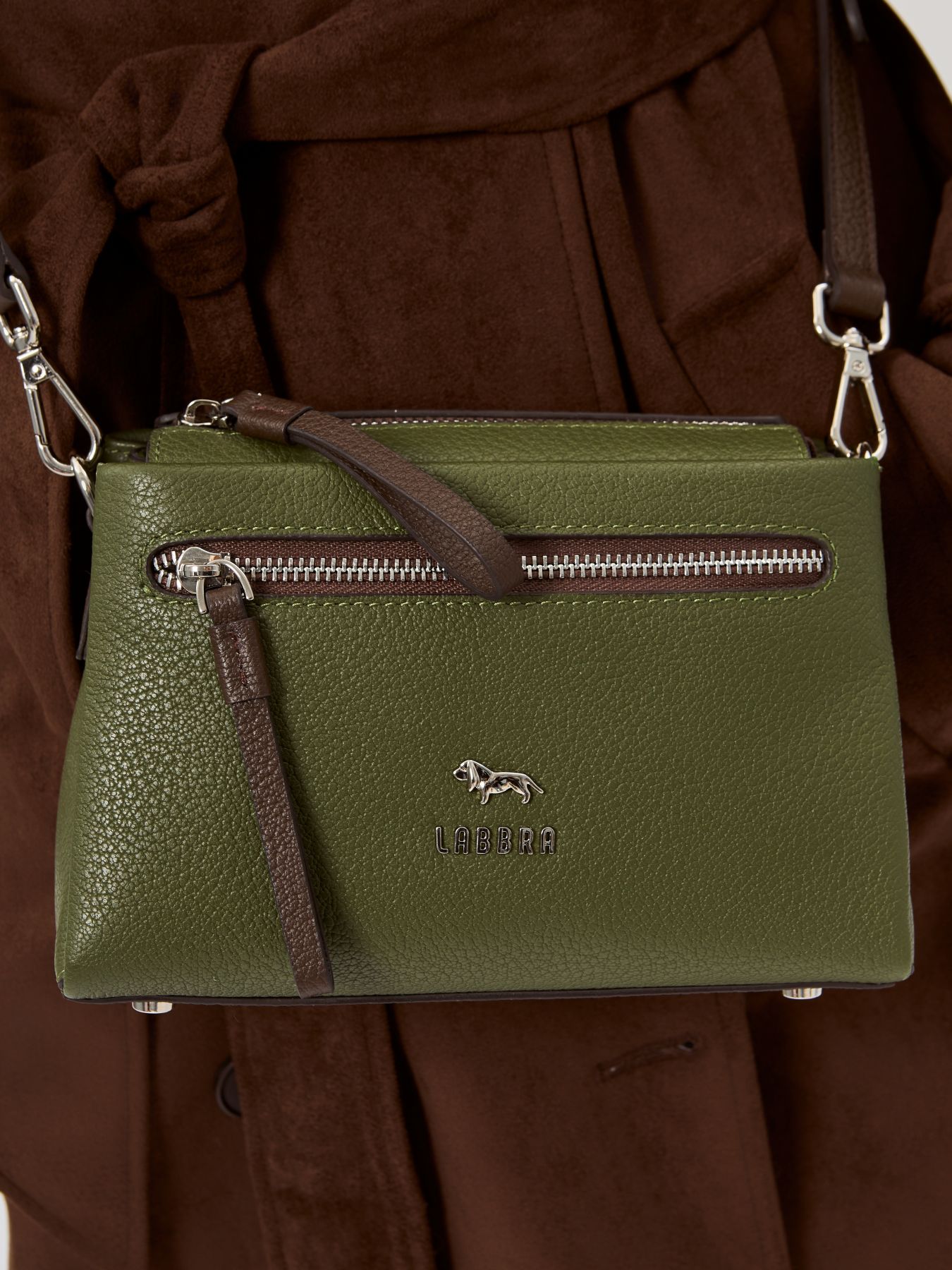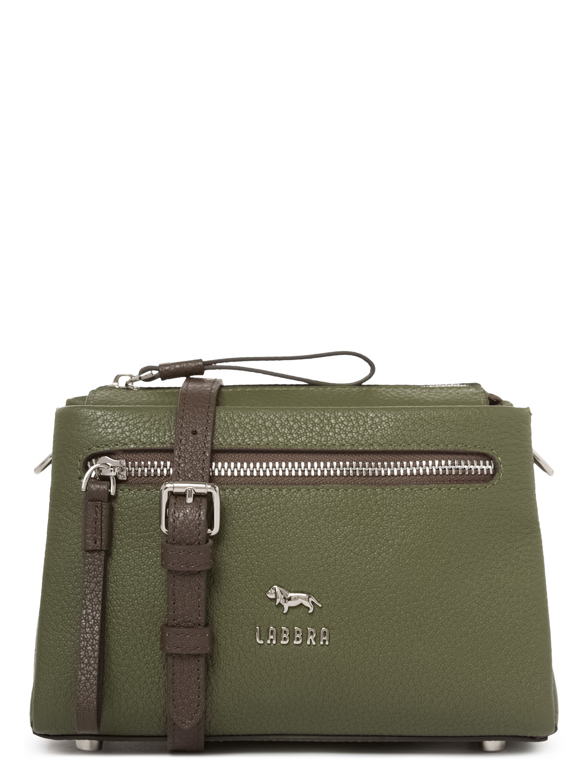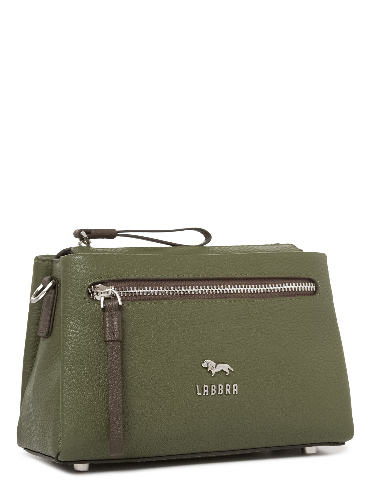 Женская сумка торговой марки Labbra из натуральной кожи. Модель застегивается на молнию. Содержит внутри один отдел в котором имеются открытый карман и карман на молнии по бокам имеются два отделения. На передней стенке есть карман на молнии. Максимальная длина съемного регулируемого плечевого ремня из натуральной кожи – 110 см ширина – 15 см. Модель имеет ножки на дне. Не вмещает формат А4.