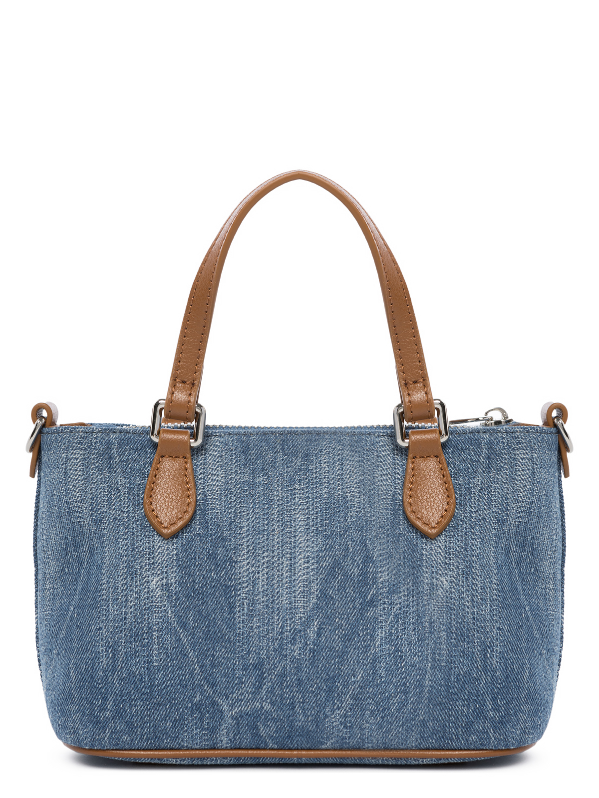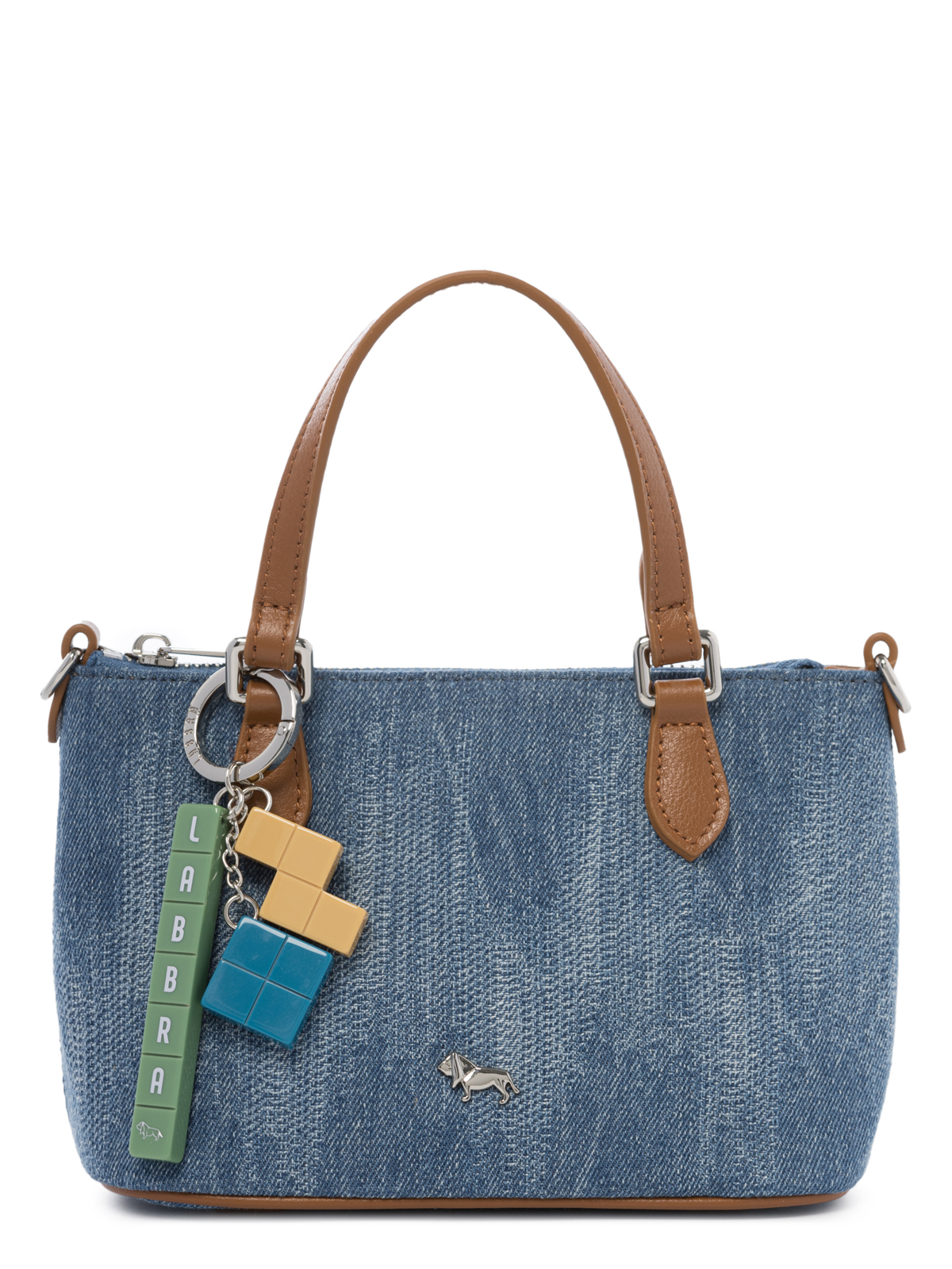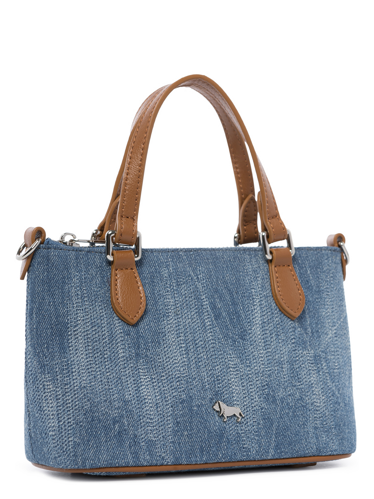 Женская сумка торговой марки Labbra из хлопка летнего голубого цвета с эффектом варки и потертостей. Отделка выполнена из натуральной кожи в классическом коричневом оттенке Luggage" что создает стильный контраст. Модель застегивается на молнию. Внутри один отдел с карманом на молнии и открытым карманом. Высота ручек - 8 см. Максимальная длина регулируемого съемного плечевого ремня из натуральной кожи - 119 см ширина - 1 см. Модель не имеет ножки на дне. Не вмещает формат А4."