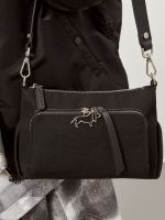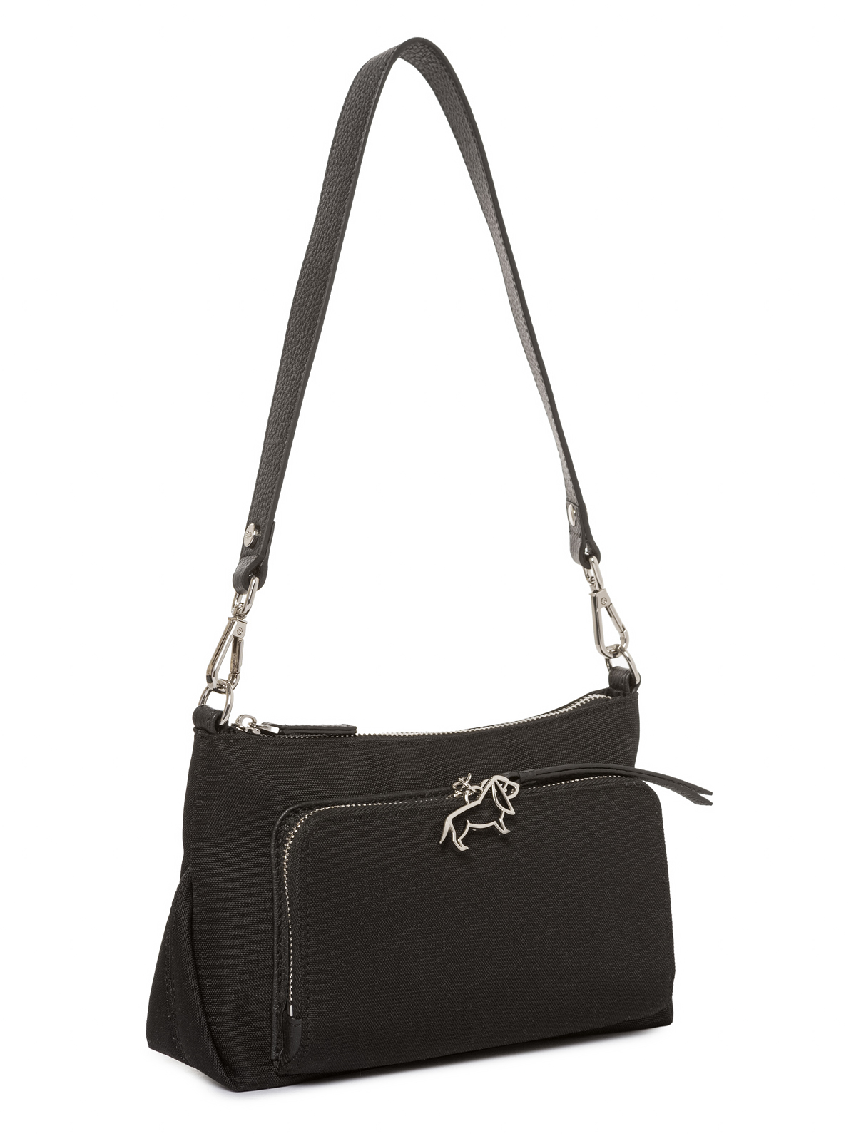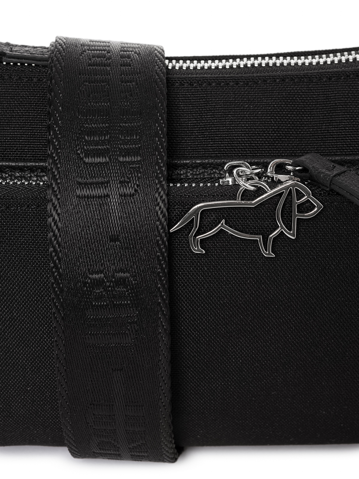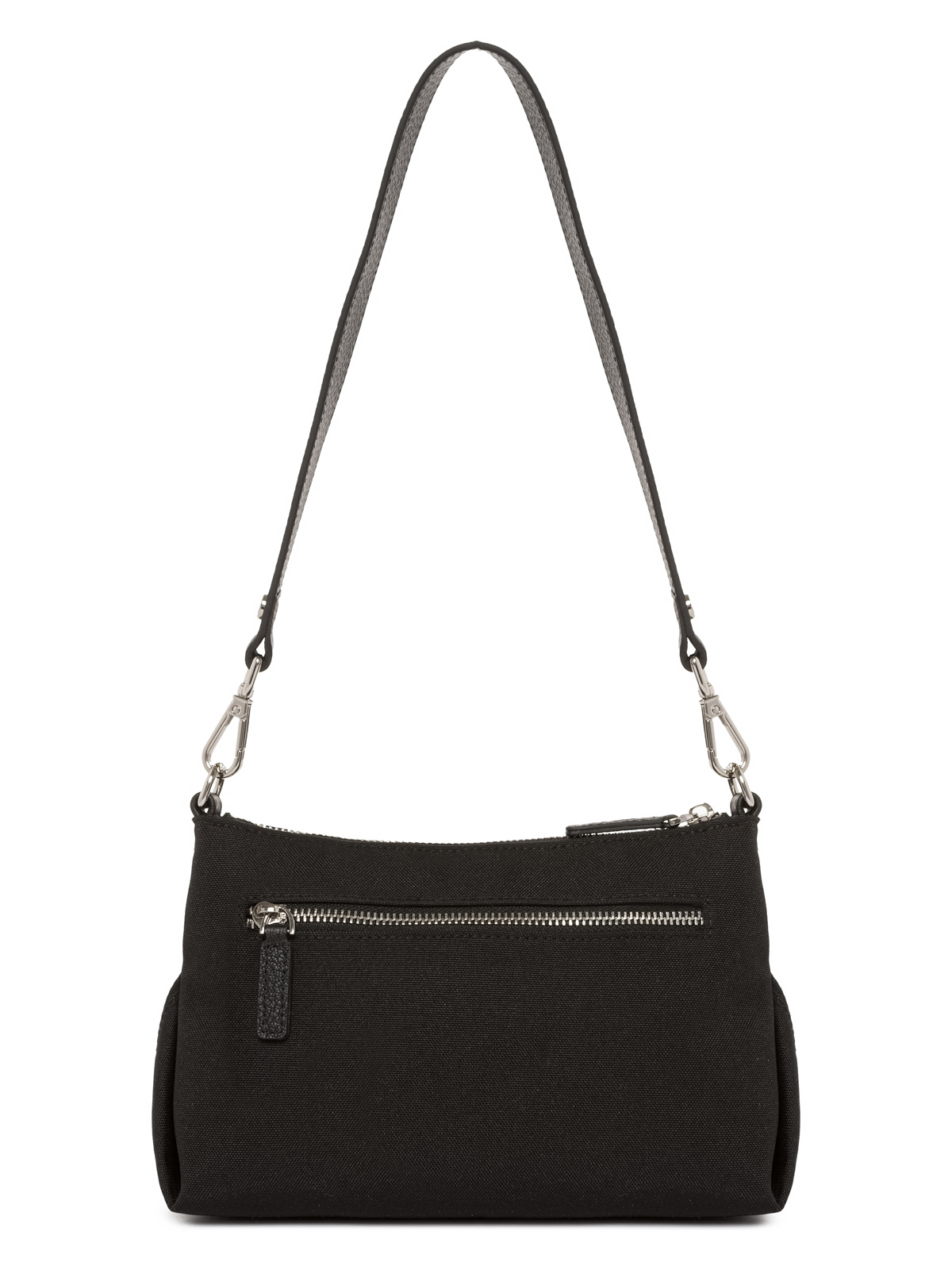Женская сумка торговой марки Labbra из натуральной кожи. Модель застегивается на молнию. Содержит одно отделение в котором имеются карман на молнии и четыре кармашка для пластиковых карт. На передней и задней стенках есть карманы на молнии. Высота ручки - 29 см. Длина регулируемого съемного плечевого ремня - 130 см ширина - 38 см. Модель не имеет ножки на дне. Не вмещает формат А4.