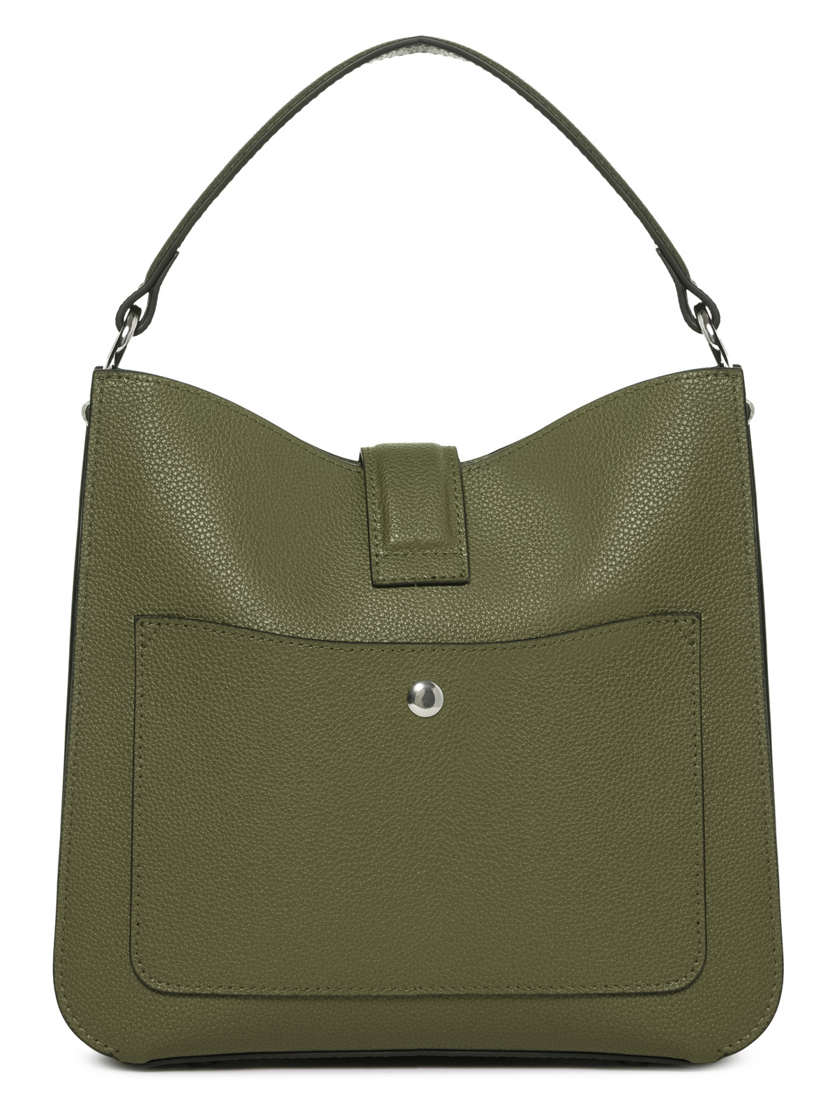 Женская сумка торговой марки Labbra из натуральной кожи. Модель застегивается хлястиком на замок. Содержит внутри одно отделение в котором имеются карман на молнии открытый карман и четыре кармашка для пластиковых карт. На передней и задней стенке есть карманы на магнитных кнопках. Высота ручки - 13 см. Длина регулируемого съемного плечевого ремня из натуральной кожи - 114 см ширина - 15 см. Модель имеет ножки на дне. Не вмещает формат А4.