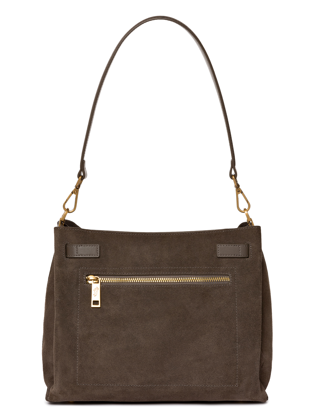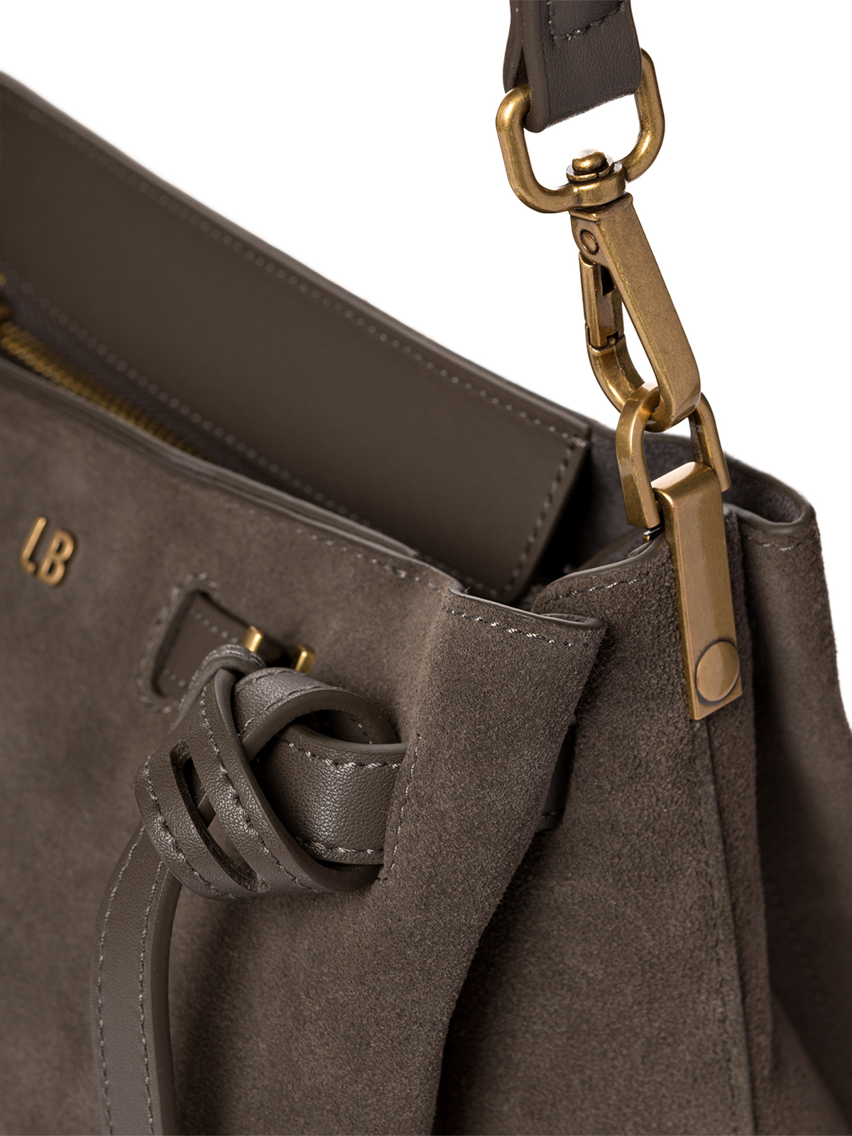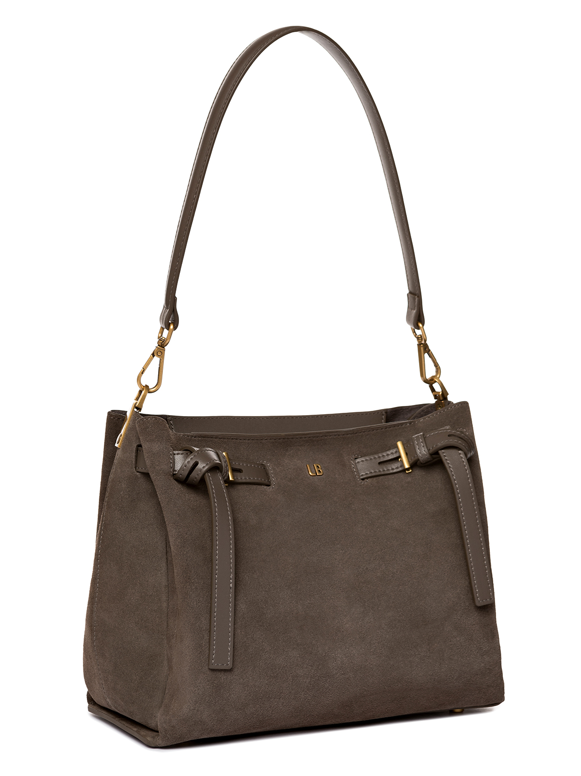 Трендовая новинка бренда - женская сумка Labbra из кожевенного велюра который гармонично сочетается с деталями из натуральной кожи. Модель застегивается на молнию. Внутри три отделения с карманом на молнии и открытым карманом. На задней стенке сумки есть карман на молнии. Высота ручки - 27 см. Длина регулируемого съемного плечевого ремня из натуральной кожи - 110 см ширина - 15 см. Модель имеет ножки на дне. Не вмещает формат А4.