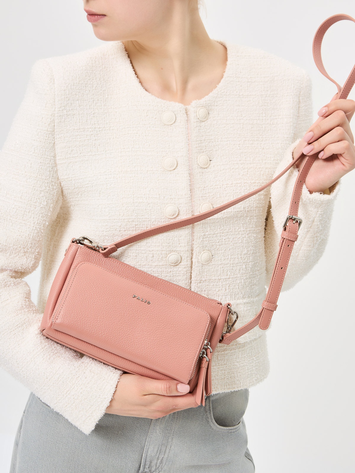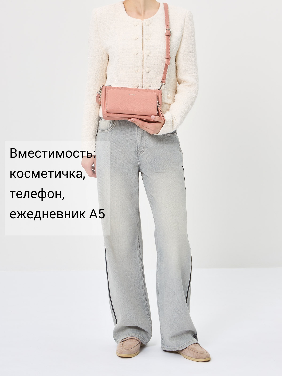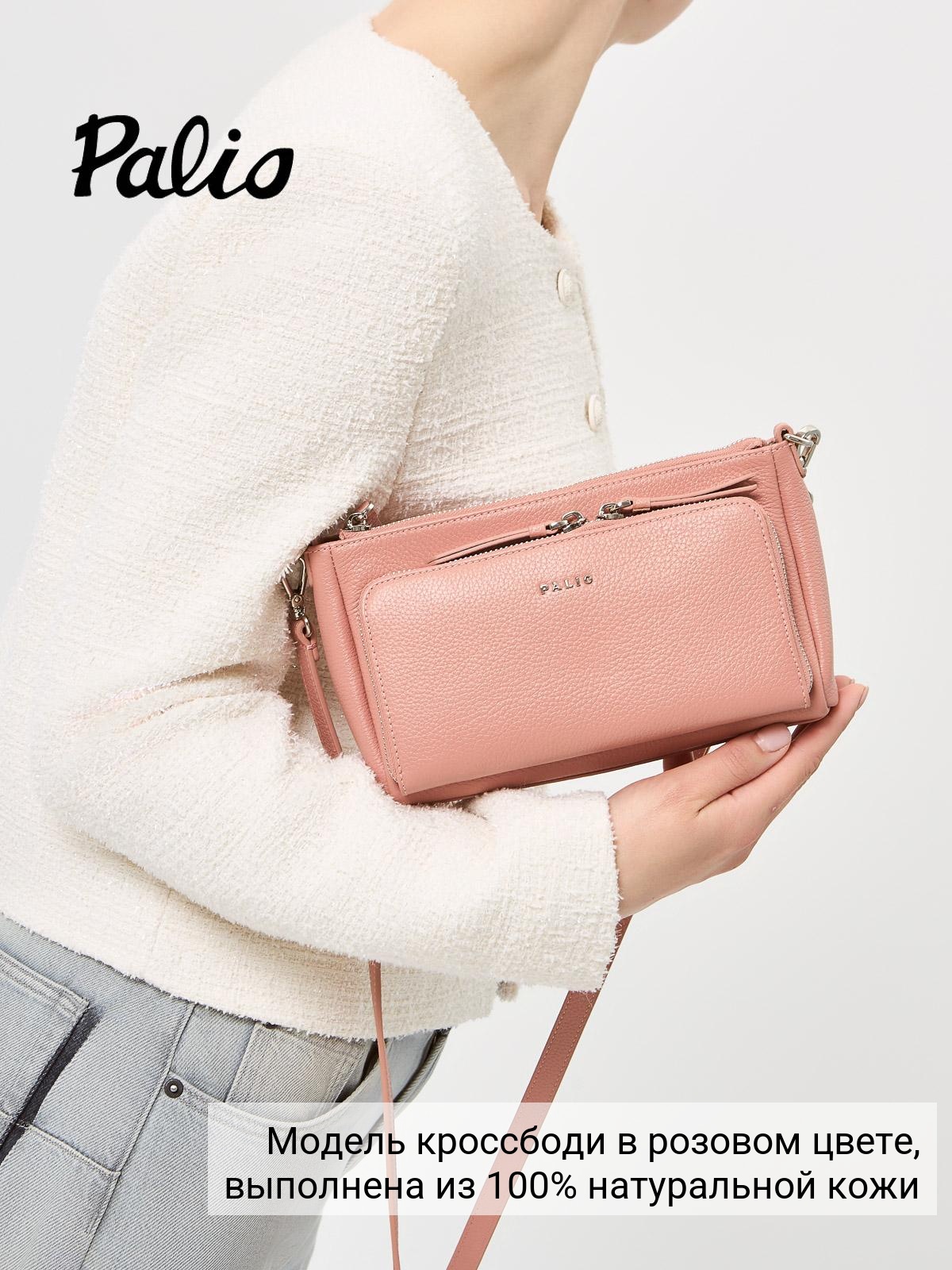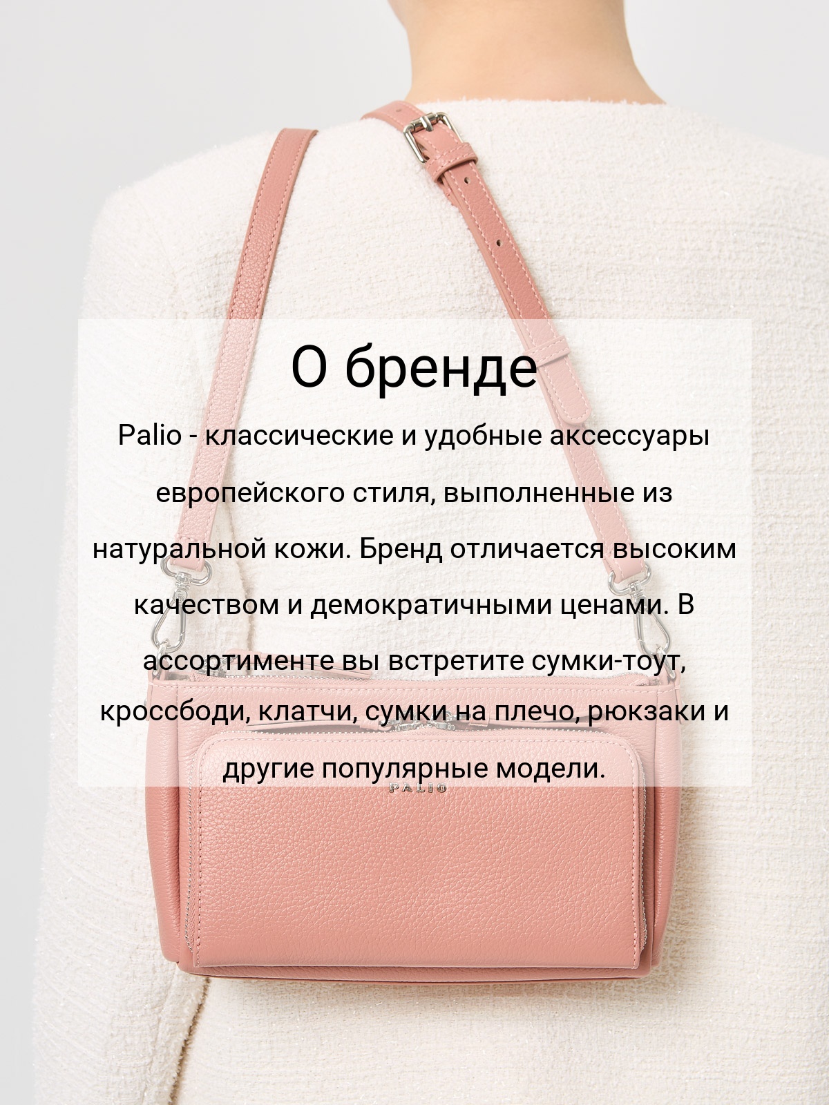 Женская сумка торговой марки Palio из натуральной кожи. Модель застегивается на молнию. Содержит внутри одно отделение в котором имеются карман на молнии и два открытых кармана. На передней стенке есть карман на молнии в котором имеются отделение на молнии два открытых кармана и двенадцать кармашков для пластиковых карт на задней - карман на молнии. Длина регулируемого съемного плечевого ремня из натуральной кожи - 117 см ширина - 1 см. Модель не имеет ножки на дне. Не вмещает формат А4.