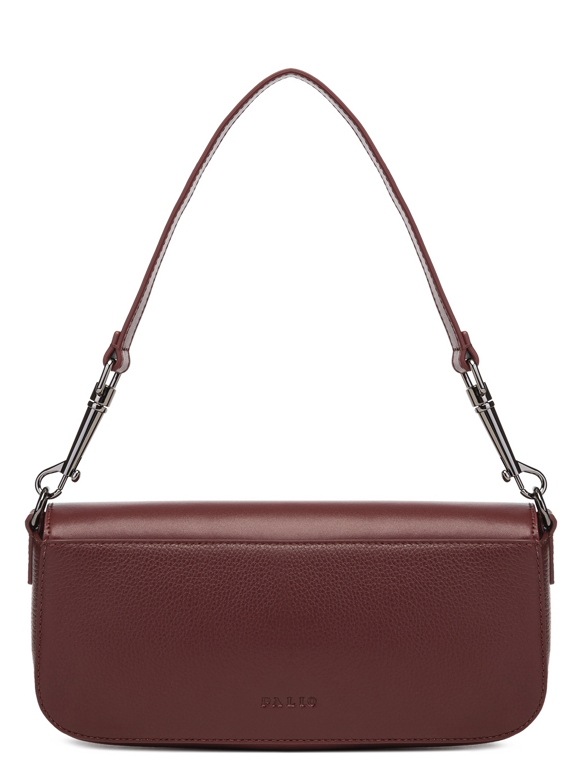 Женская сумка торговой марки Palio из натуральной кожи. Модель закрывается на клапан с магнитной кнопкой. Внутри одно отделение с открытым карманом. Высота ручки - 21 см. длина наплечного ремня из металлической цепочки - 101 см. Модель не имеет ножки на дне.