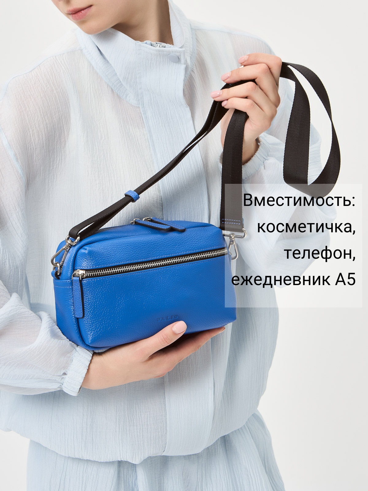 Женская сумка торговой марки Palio из натуральной кожи. Модель застегивается на молнию. Содержит внутри одно отделение в котором имеется открытый карман. На передней стенке есть карман на молнии. Длина регулируемого съемного плечевого ремня из текстиля - 105 см ширина - 3 см. Модель не имеет ножки на дне. Не вмещает формат А4.