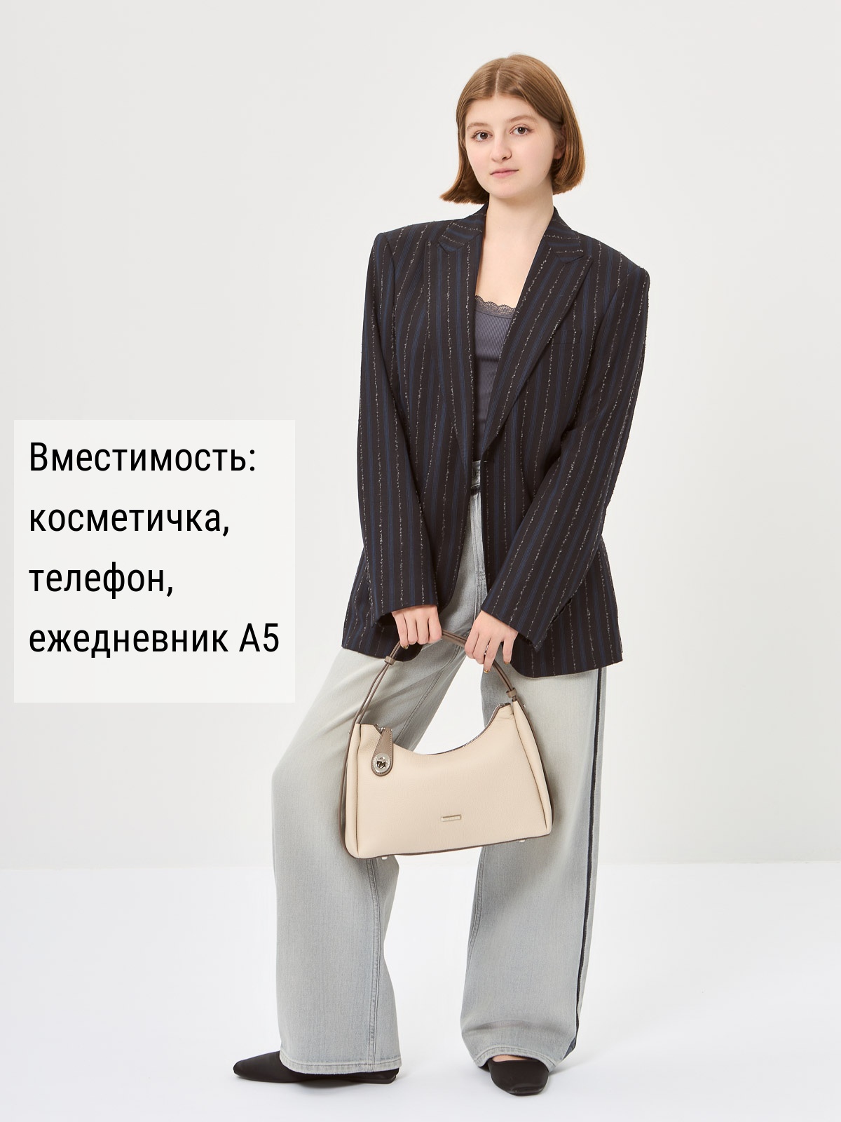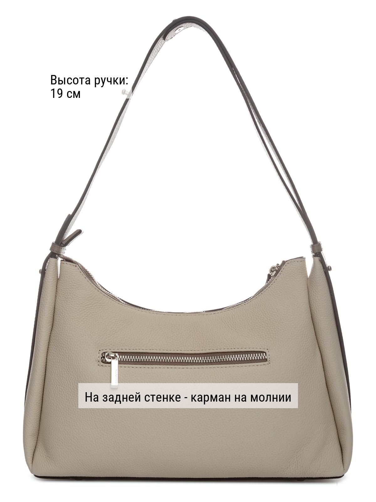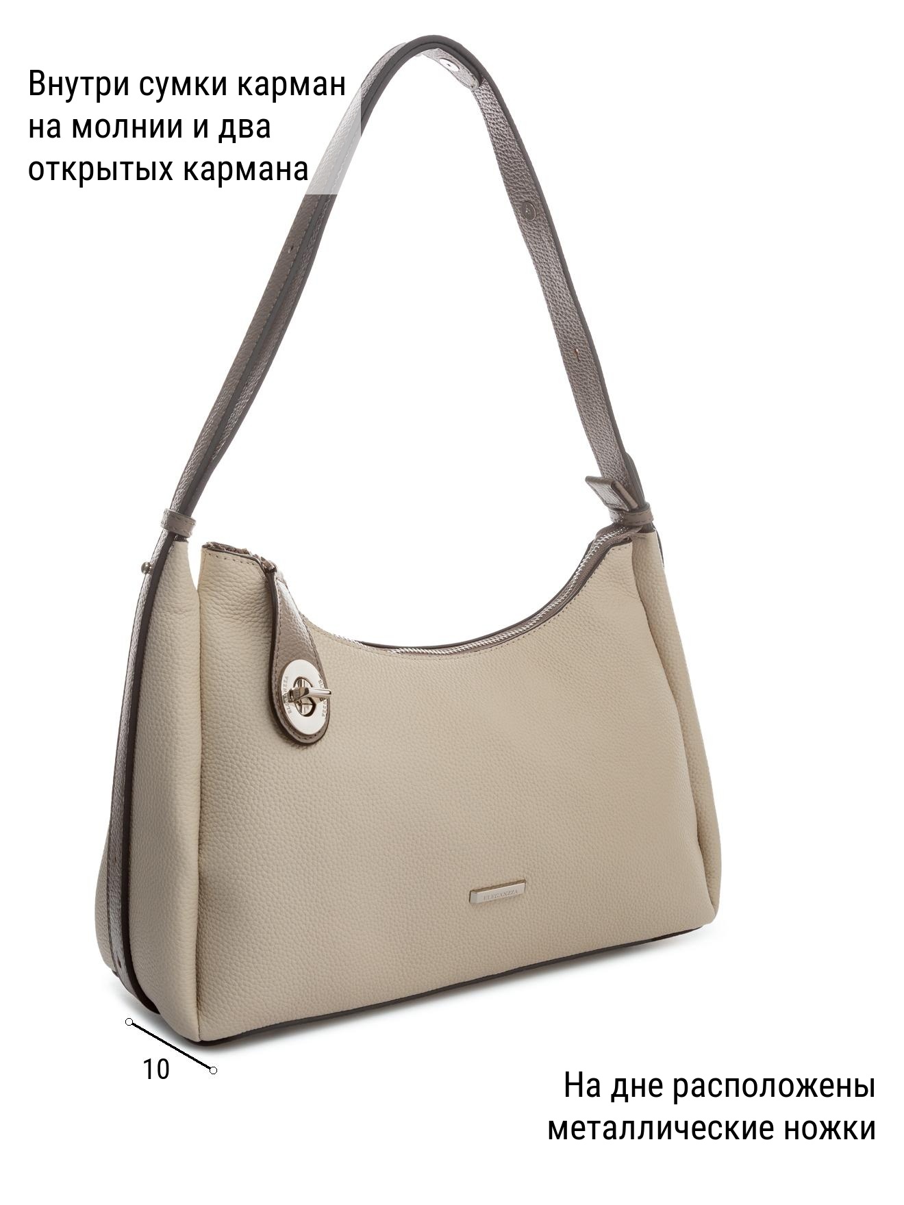 Женская сумка торговой марки Eleganzza из натуральной кожи. Модель закрывается на металлическую молнию. Внутри одно отделение с карманом на молнии и двумя открытыми карманами. На задней стенке - карман на молнии. Высота ручки - 19 см. Модель имеет ножки на дне. Не вмещает формат А4.