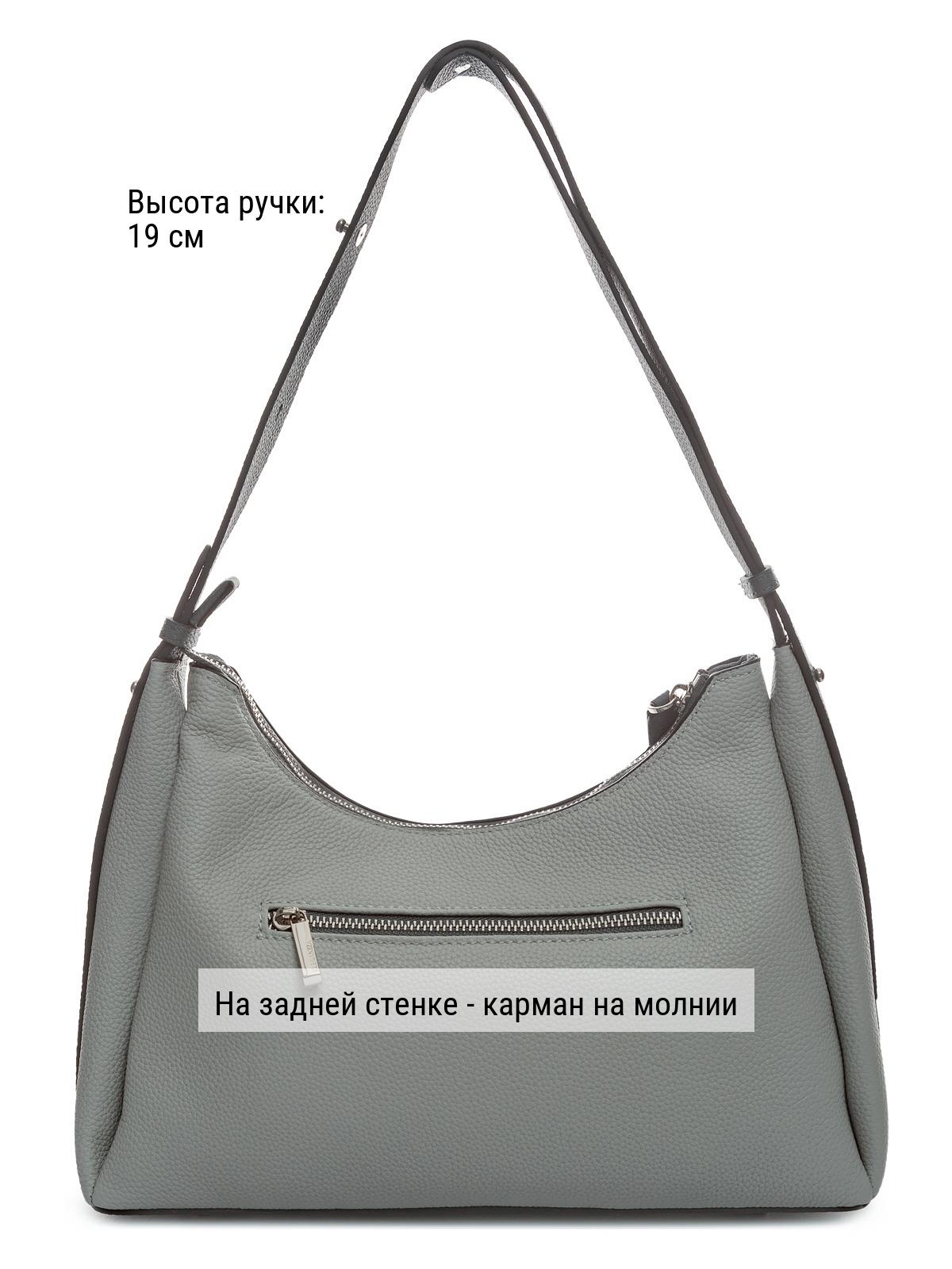 Женская сумка торговой марки Eleganzza из натуральной кожи. Модель закрывается на металлическую молнию. Внутри одно отделение с карманом на молнии и двумя открытыми карманами. На задней стенке - карман на молнии. Высота ручки - 19 см. Модель имеет ножки на дне. Не вмещает формат А4.