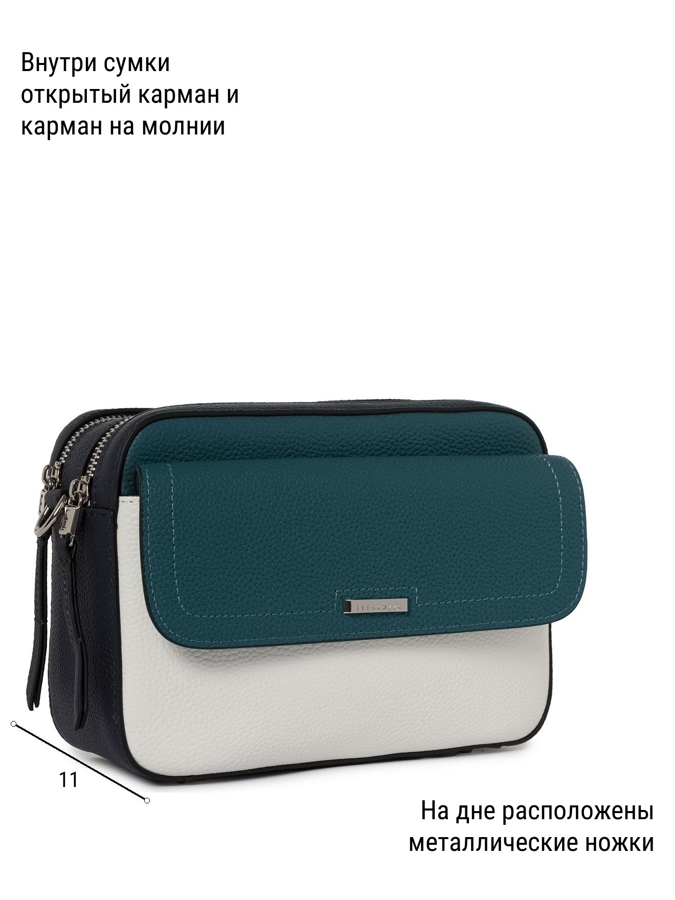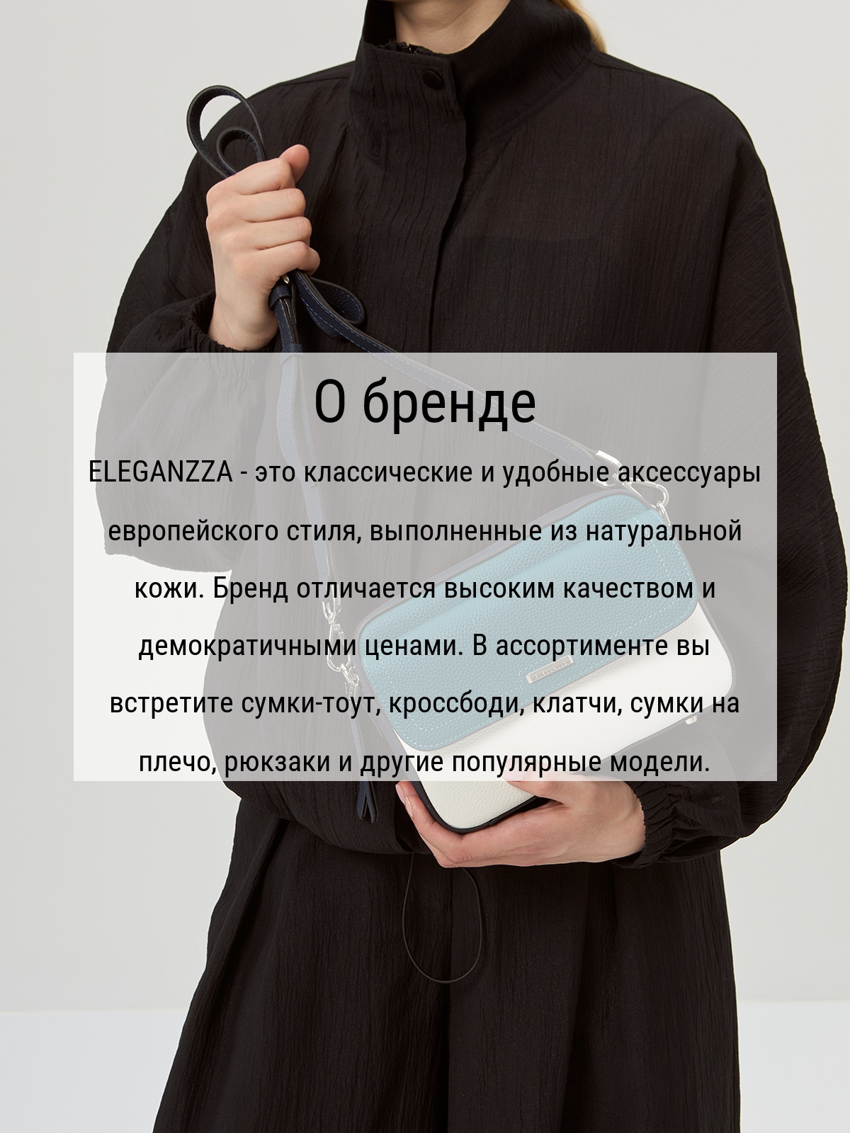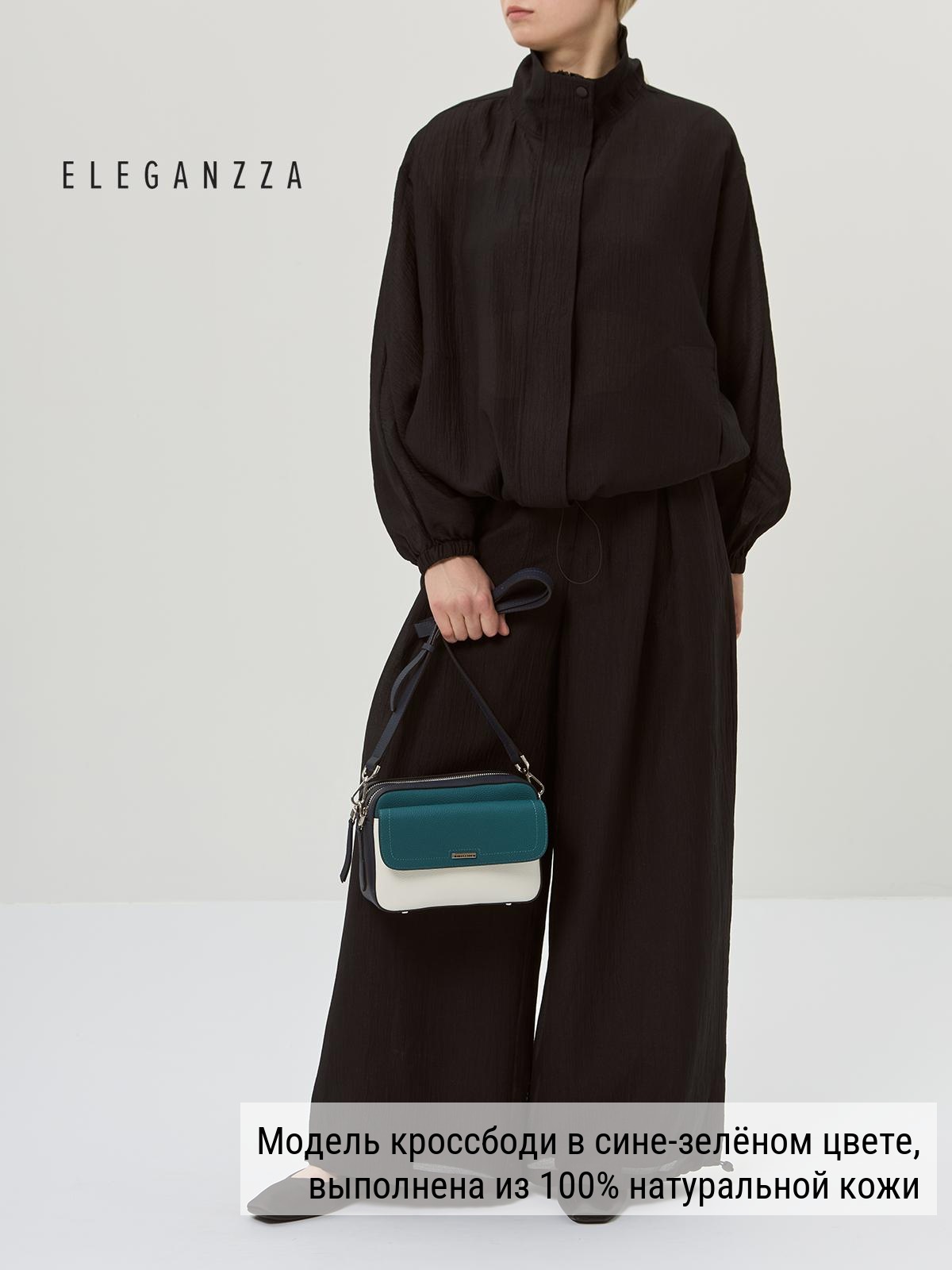 Женская сумка торговой марки Eleganzza из натуральной кожи. Модель застегивается на молнию. Внутри два отделения. В одном отделении имеется открытый карман в другом – карман на молнии. На передней стенке под клапаном есть открытый карман. Длина съемного регулируемого плечевого ремня из натуральной кожи – 115 см ширина – 2 см. Модель имеет ножки на дне. Не вмещает формат А4.