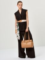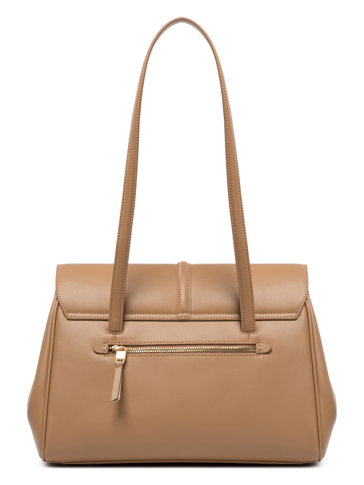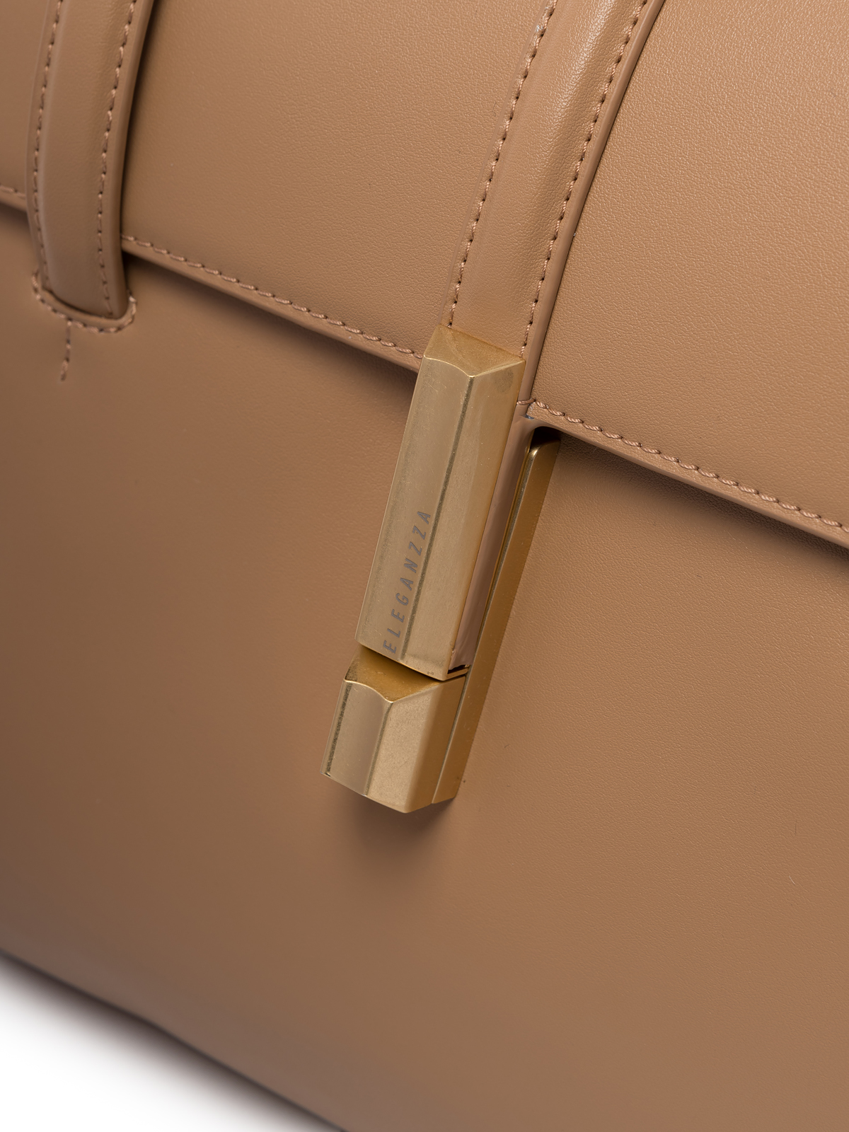 Женская сумка торговой марки Eleganzza из натуральной кожи. Модель закрывается клапаном на замок. Содержит внутри два отдела между которыми имеется отделение на молнии в одном отделе имеются карман на молнии и открытый карман. На задней стенке есть карман на молнии. Высота ручки - 27 см. Модель имеет ножки на дне. Вмещает формат А4.