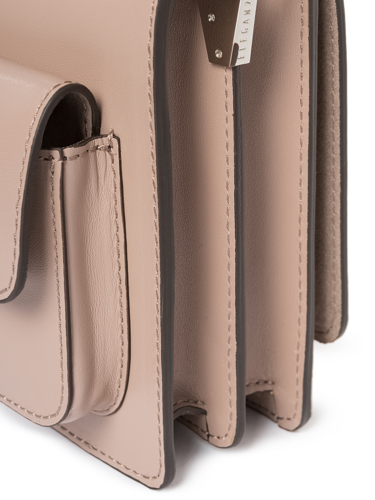 Женская сумка торговой марки Eleganzza из натуральной кожи. Модель закрывается клапаном на замок. Содержит внутри два отдела. В одном отделе имеется карман на молнии. На задней стенке есть два кармана на магнитных кнопках. Высота ручки - 5 см. Максимальная длина регулируемого съемного плечевого ремня из натуральной кожи - 126 см ширина - 1 см. Модель не имеет ножки на дне. Не вмещает формат А4.