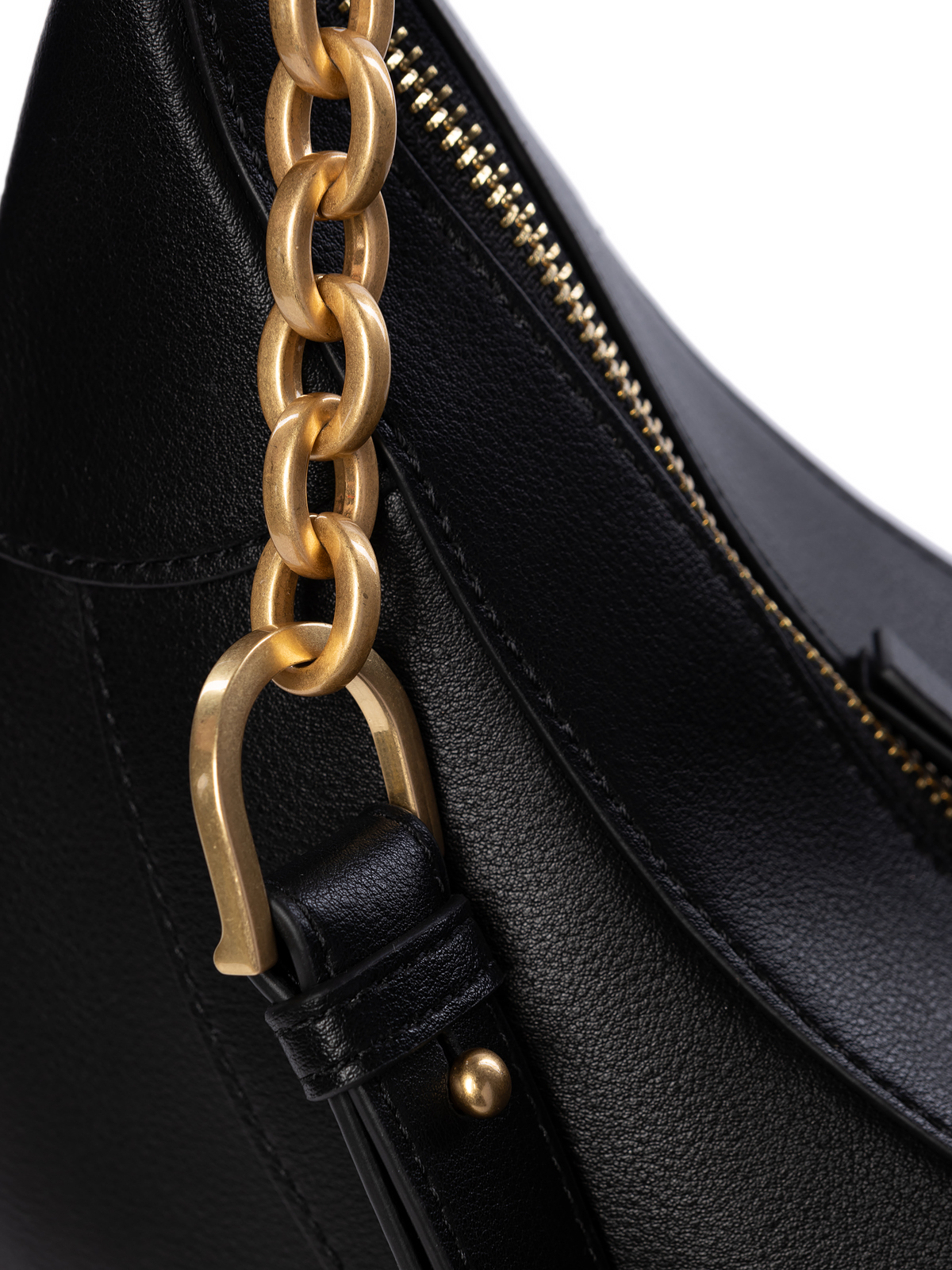Женская сумка торговой марки Eleganzza из натуральной кожи. Модель застегивается на двухзамковую молнию. Содержит внутри один отдел в котором имеются карман на молнии и открытый карман. Высота ручки - 44 см. Модель не имеет ножки на дне. Не вмещает формат А4.