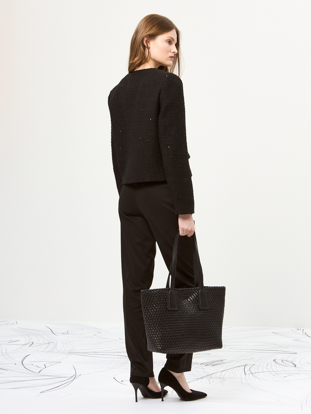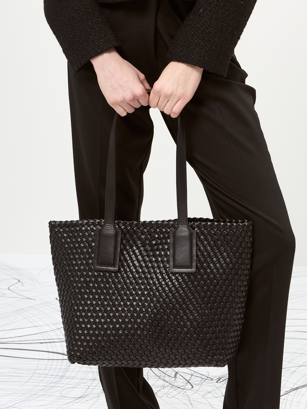 Женская сумка торговой марки Eleganzza выполнена из высококачественной телячьей кожи. Корпус сумки изготовлен с использованием техники ручного плетения что придает изделию особую прочность. Модель застегивается на скрытый магнит. Содержит внутри одно отделение с вкладной косметичкой. Косметичка застегивается на молнию и имеет внутри карман на молнии. На задней стенке косметички есть открытый карман. Высота ручек - 26 см. Модель не имеет ножки на дне. Вмещает формат А4.