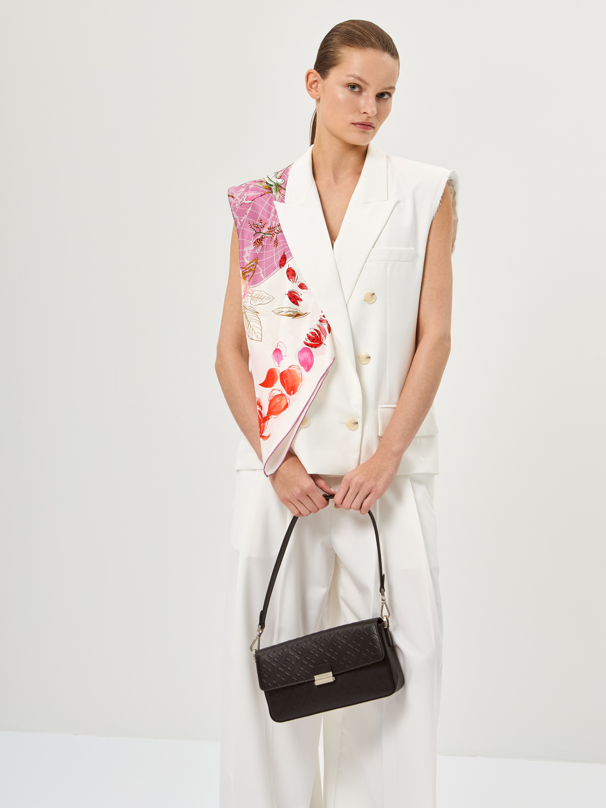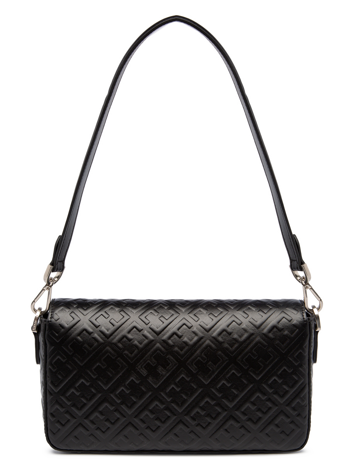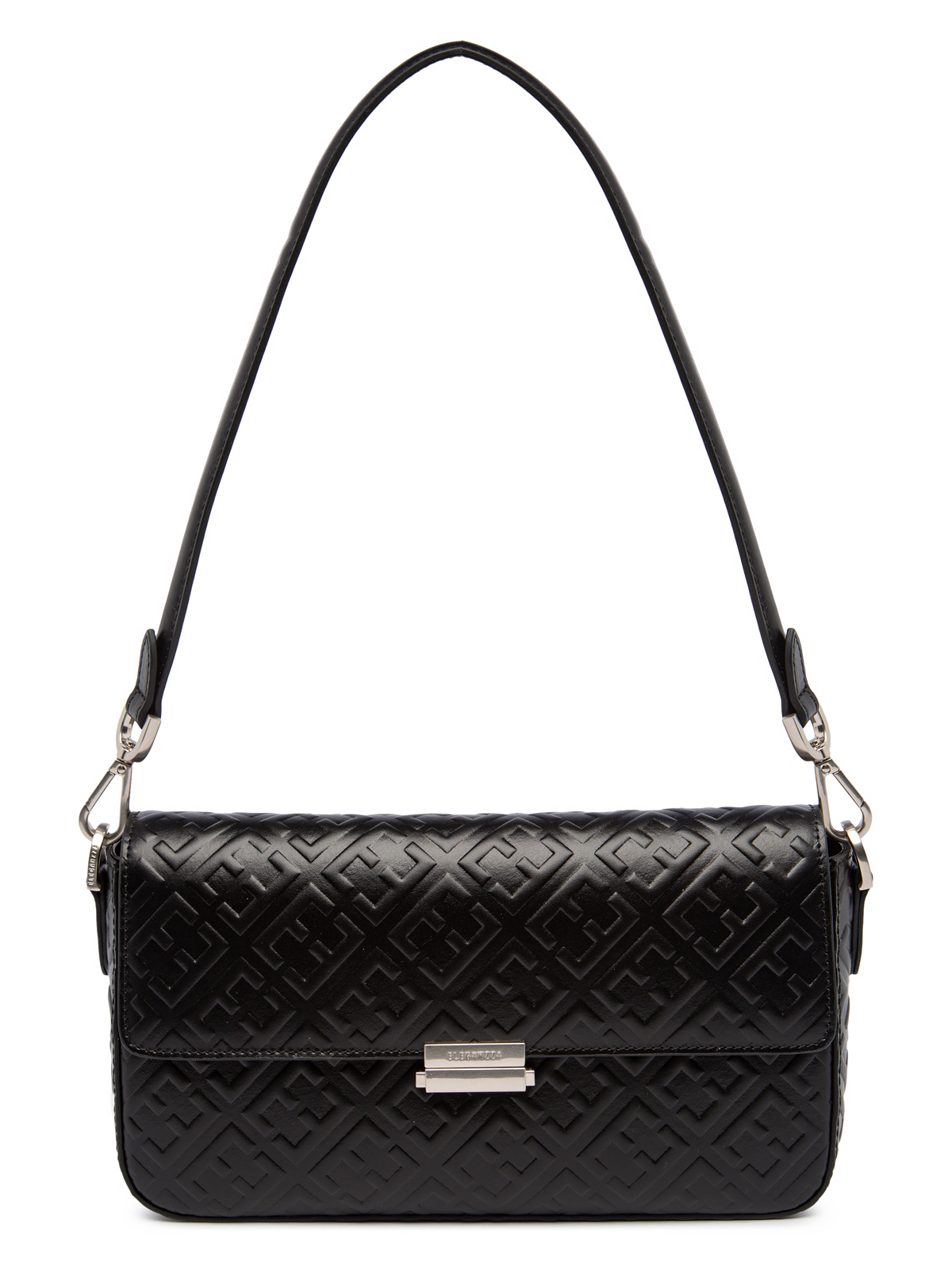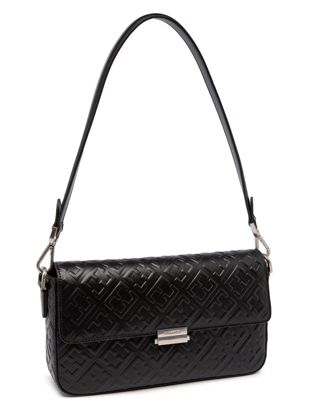 Женская сумка торговой марки Eleganzza из натуральной кожи декорированной фирменным лого-тиснением. Модель закрывается клапаном на замок. Внутри одно отделение с карманом на молнии и открытым карманом. Высота съемной ручки - 26 см. Максимальная длина регулируемого съемного плечевого ремня из натуральной кожи - 121 см ширина - 15 см. Модель не имеет ножки на дне. Не вмещает формат А4.