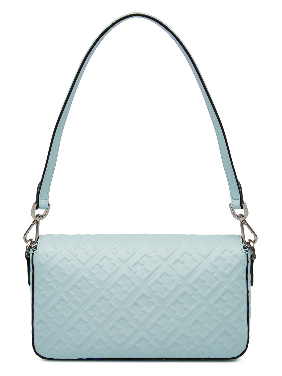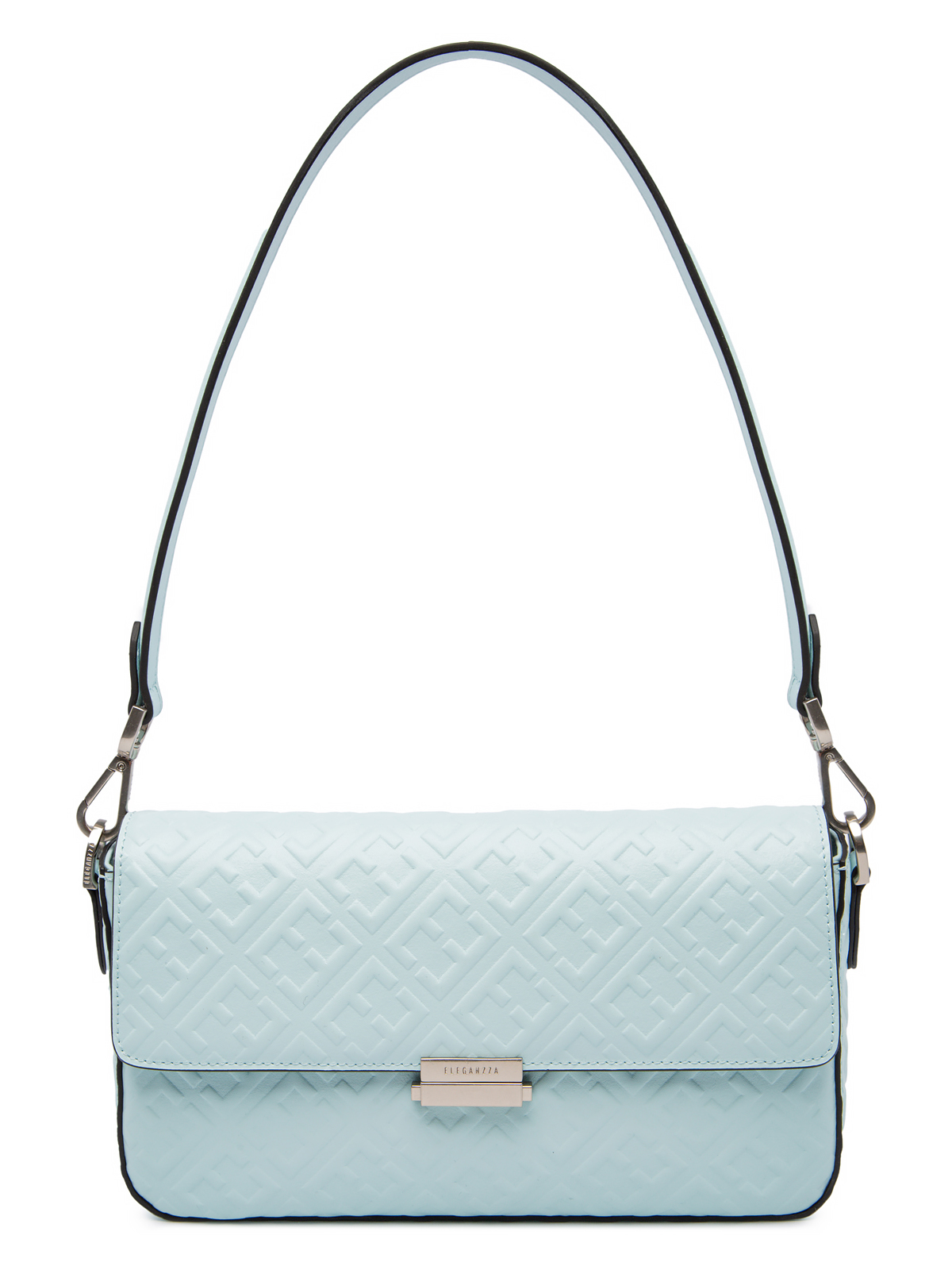 Женская сумка торговой марки Eleganzza из натуральной кожи декорированной фирменным лого-тиснением. Модель закрывается клапаном на замок. Внутри одно отделение с карманом на молнии и открытым карманом. Высота съемной ручки - 26 см. Максимальная длина регулируемого съемного плечевого ремня из натуральной кожи - 121 см ширина - 15 см. Модель не имеет ножки на дне. Не вмещает формат А4.