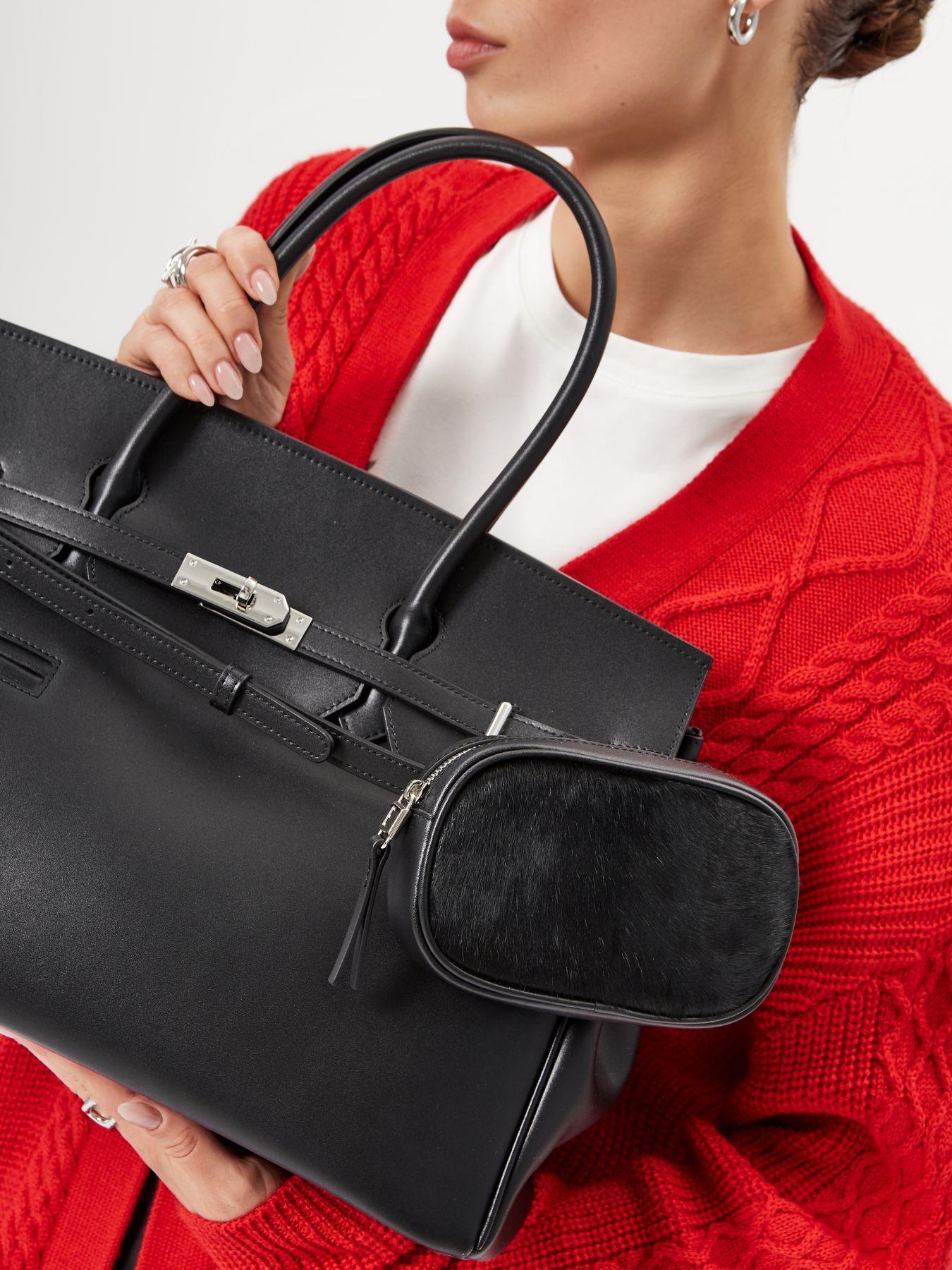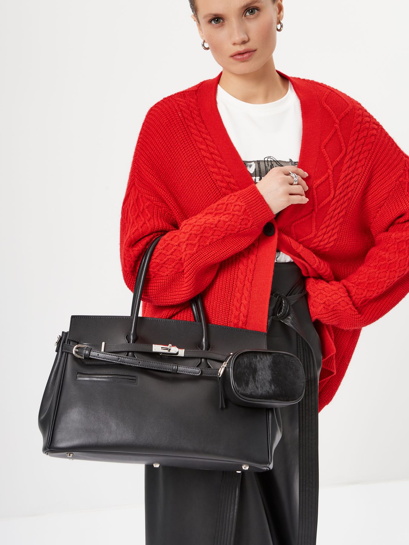 Женская сумка торговой марки Eleganzza из натуральной кожи в стиле Dupes - доступная альтернатива культовым моделям с сохранением premium-качества. Вдохновленная знаковыми дизайнами эта сумка предлагает узнаваемую эстетику по доступной цене сохраняя при этом уникальные детали бренда Eleganzza. Модель закрывается клапаном и фиксируется металлическим элементом. Внутри одно отделение с карманом на молнии и открытым карманом. На передней стенке открытый карман. В комплекте – стильная поясная сумочка которую можно носить отдельно или крепить к основной сумке (практичное отделение быстрого доступа или эффектный декор). Передняя стенка мини-сумочки выполнена из меха с низким ворсом. Высота ручек - 14 см. Длина регулируемого съемного плечевого ремня из натуральной кожи - 93 см ширина - 15 см. Модель имеет ножки на дне. Вмещает формат А4.