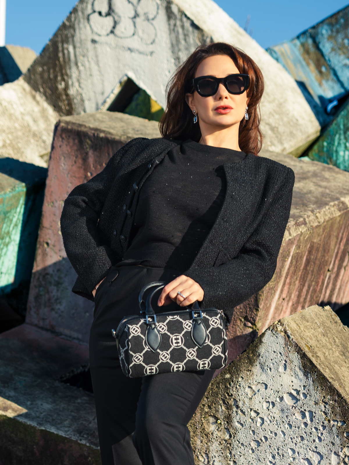 Женская сумка торговой марки Eleganzza с отделкой из натуральной кожи и фирменным логотипом бренда выполнена из прочного синтетического волокна с водоотталкивающей пропиткой что обеспечивает долговечность и практичность изделия. Модель застегивается на молнию. Внутри одно отделение с карманом на молнии и открытым карманом. Высота ручек - 10 см. Максимальная длина регулируемого съемного плечевого ремня из натуральной кожи - 121 см ширина - 15 см. Модель имеет ножки на дне. Не вмещает формат А4.