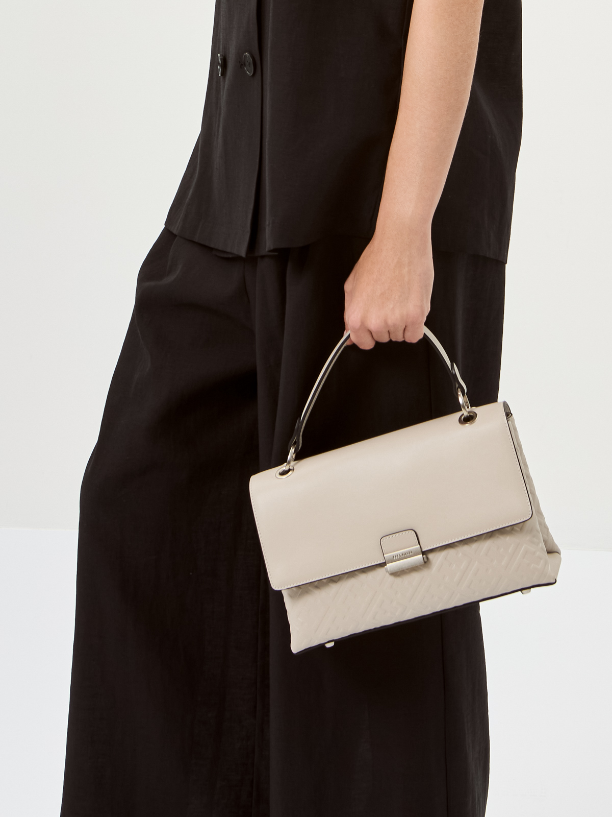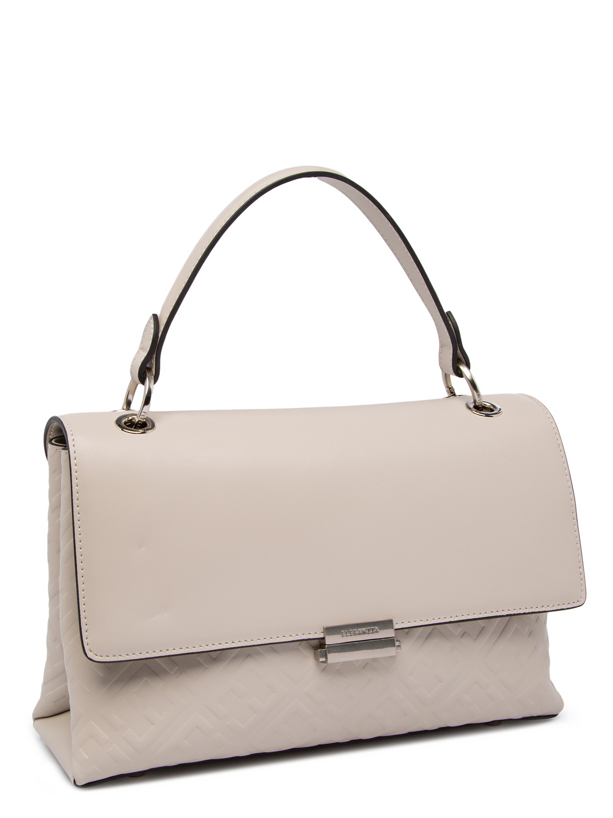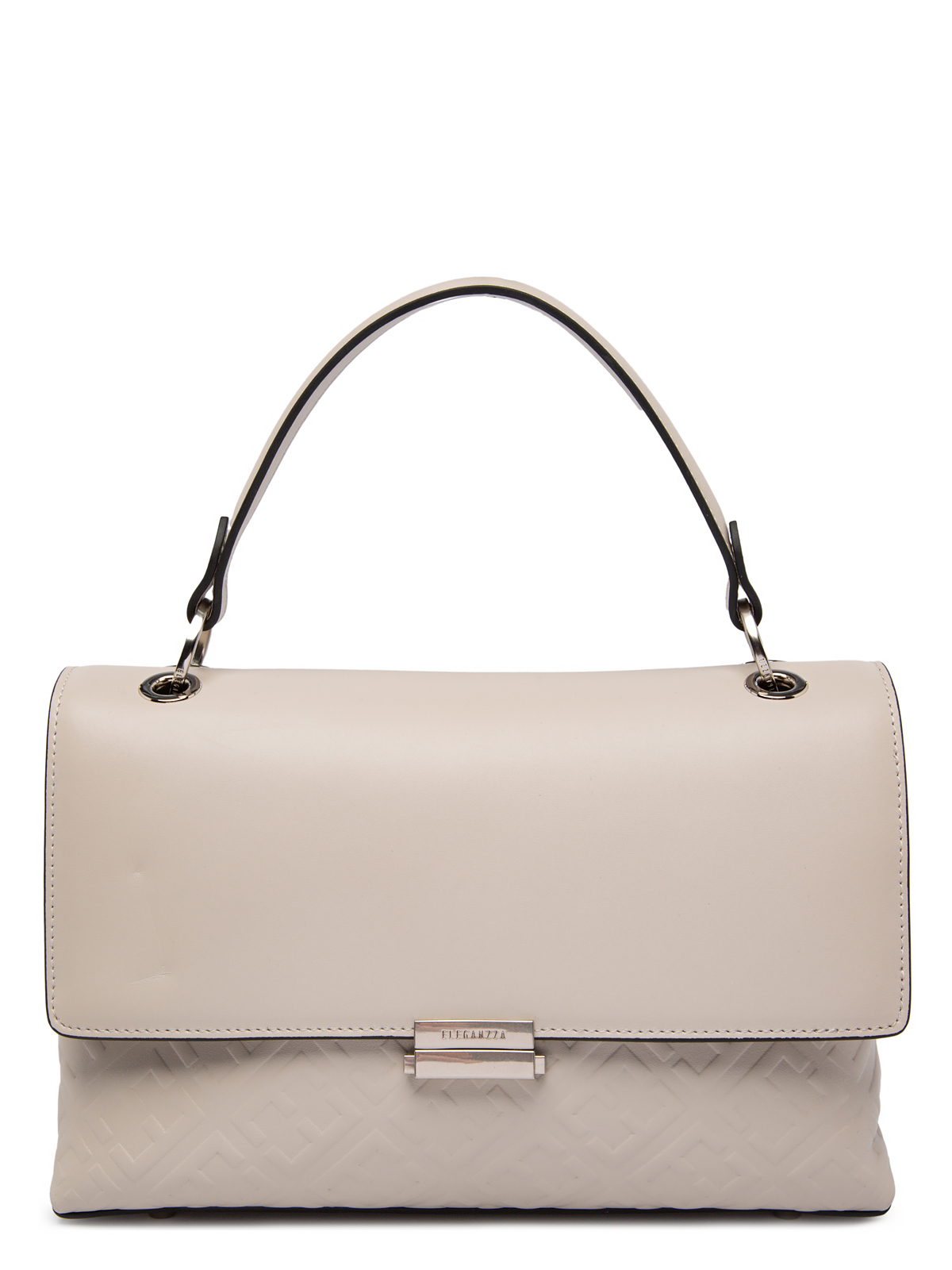 Женская сумка торговой марки Eleganzza из натуральной кожи декорированной фирменным лого-тиснением. Модель закрывается клапаном на замок. Внутри два отделения с карманом на молнии и открытым карманом. Дополнительный открытый карман на задней стенке. Высота ручки - 11 см. Максимальная длина регулируемого съемного плечевого ремня из натуральной кожи - 123 см ширина - 15 см. Модель имеет ножки на дне. Не вмещает формат А4.