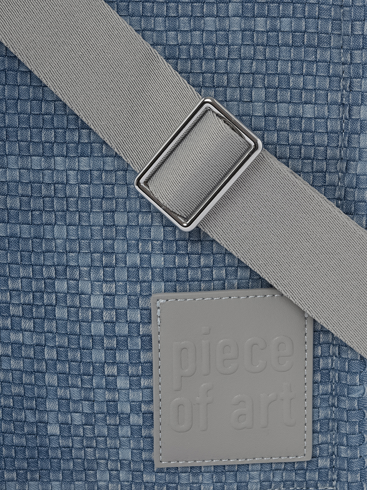 Женская сумка торговой марки Eleganzza выполнена из плетеного полотна джинсовой ткани что делает её легкой и стильной. Отделка из натуральной кожи с тиснением Piece of Art" подчеркивает уникальность изделия. Внутри одно отделение с двумя карманами на молнии и открытым карманом. Высота ручек - 10 см. Длина регулируемого съемного плечевого ремня из текстиля - 112 см ширина - 4 см. Модель не имеет ножки на дне. Не вмещает формат А4."