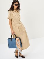 Женская сумка торговой марки Eleganzza из хлопка. На передней части изделия выполнено эмбоссирование — выпуклое тиснение которое добавляет текстуру и подчеркивает уникальность. Внутри одно отделение с двумя карманами на молнии открытым карманом и вкладной косметичкой. Косметичка застегивается на молнию. Высота ручек - 13 см. Длина регулируемого съемного плечевого ремня из текстиля - 112 см ширина - 4 см. Модель имеет ножки на дне. Вмещает формат А4.
