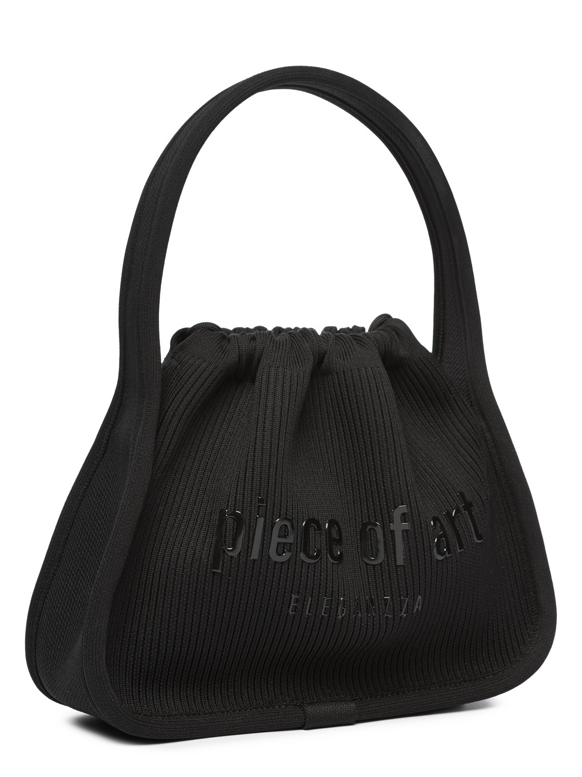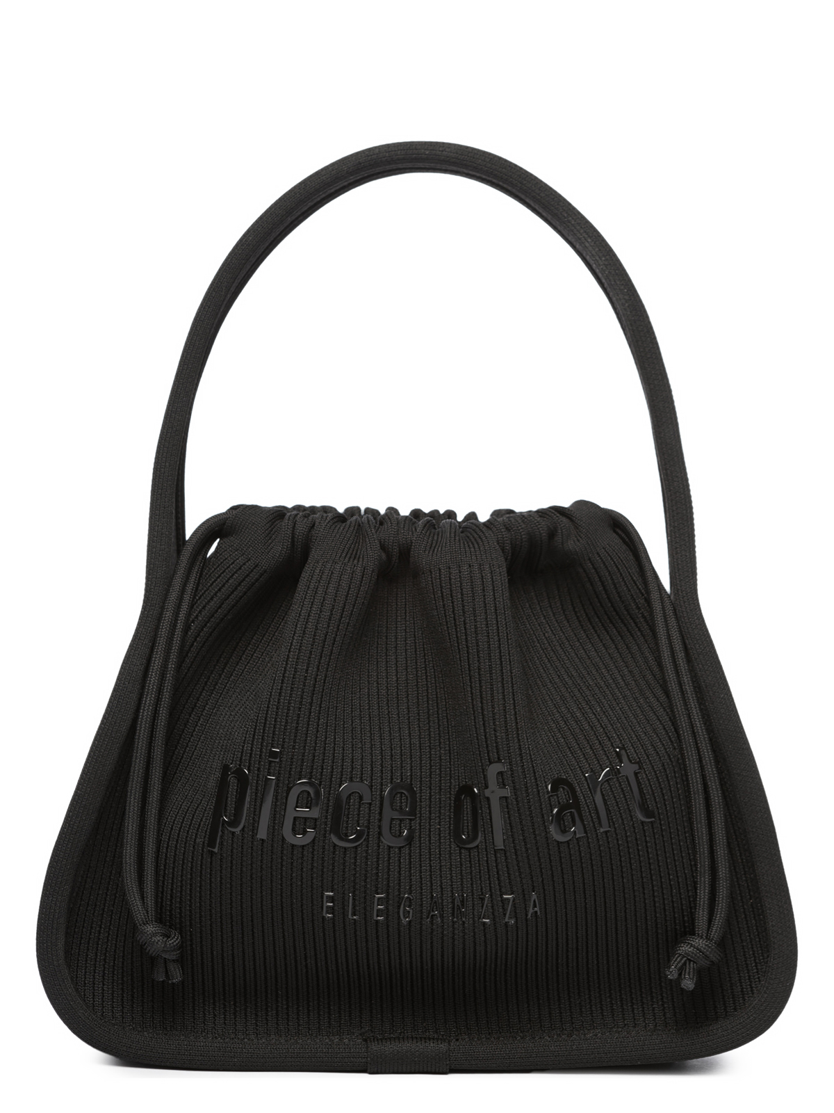 Женская сумка торговой марки Eleganzza из прочного полиэстера: легкая вместительная и долговечная. Детали изделия не кроятся а вывязываются по лекалам что обеспечивает точность и аккуратность исполнения. На передней части сумки расположена силиконовая надпись Piece of Art" добавляющая стильный акцент. Модель затягивается шнуровкой. Внутри одно отделение с двумя карманами на молнии. Высота ручки - 15 см. Модель не имеет ножки на дне. Не вмещает формат А4."