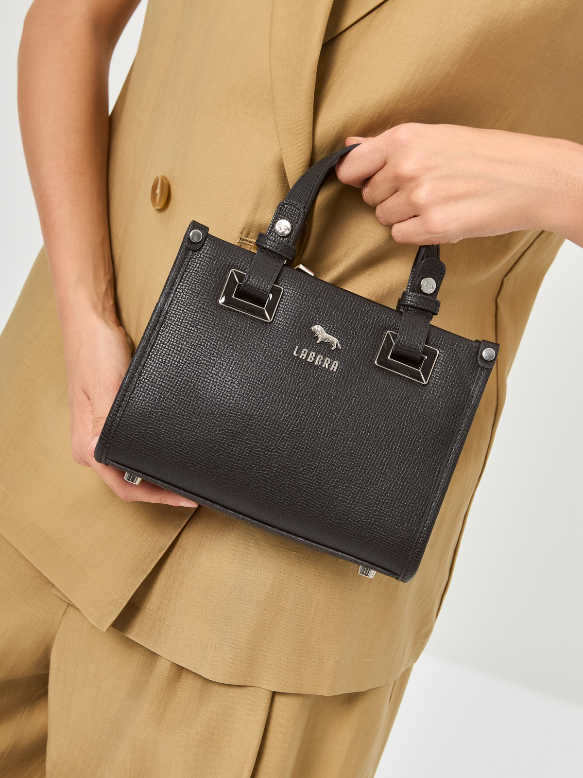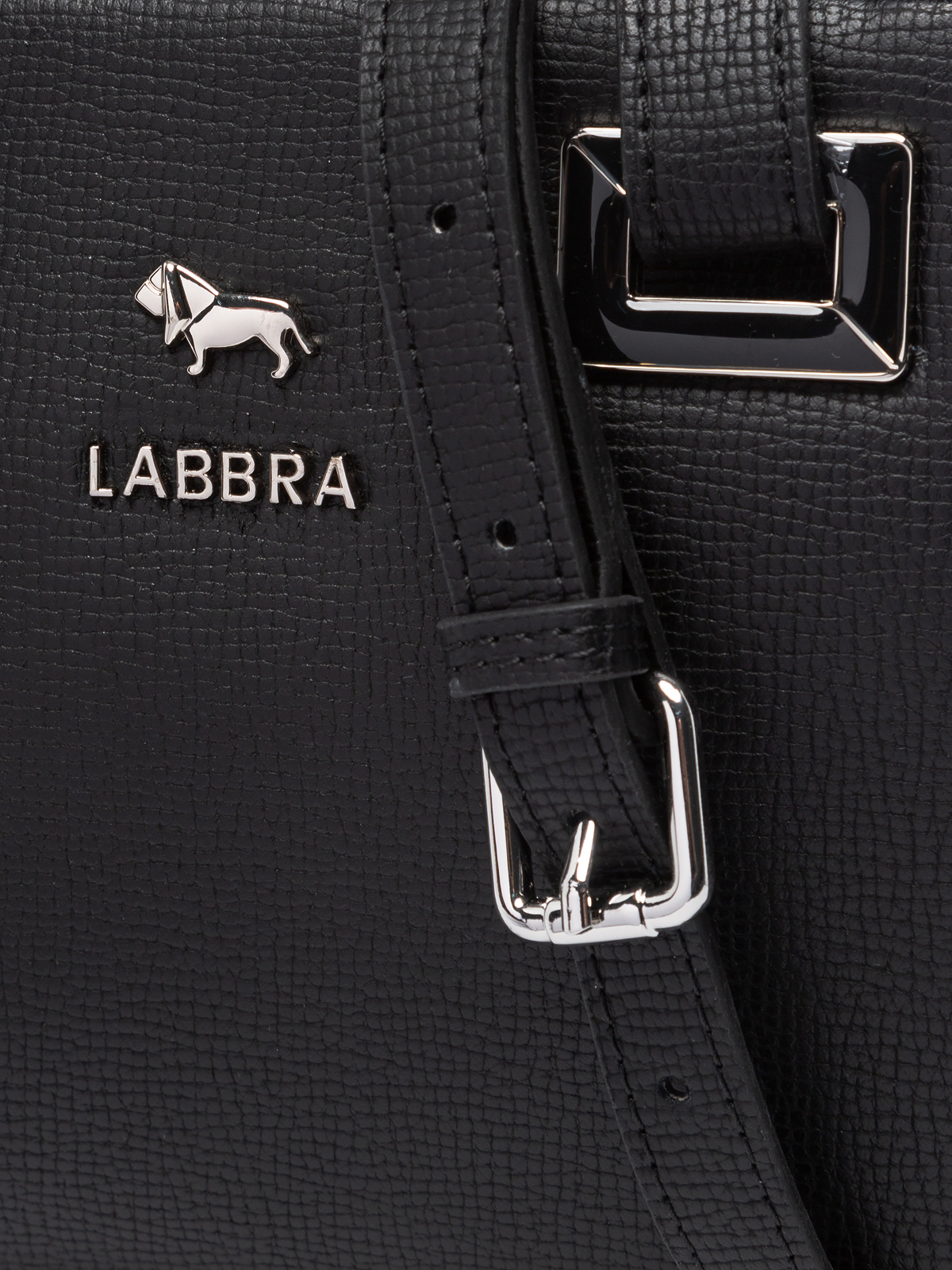 Женская сумка торговой марки Labbra из натуральной кожи. Модель застегивается на молнию. Содержит внутри один отдел в котором имеются карман на молнии и открытый карман. На передней и задней стенках есть два отделения на магнитных кнопках в одном имеются три кармашка для пластиковых карт. Высота ручек - 9 см. Максимальная длина регулируемого съемного плечевого ремня из натуральной кожи - 117 см ширина - 15 см. Модель имеет ножки на дне. Не вмещает формат А4.