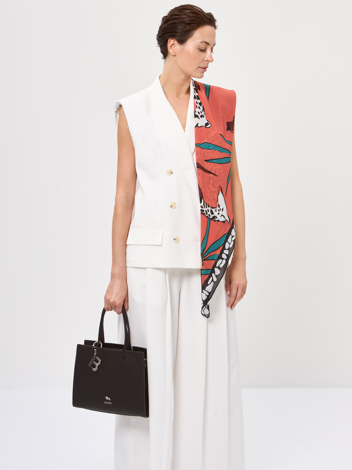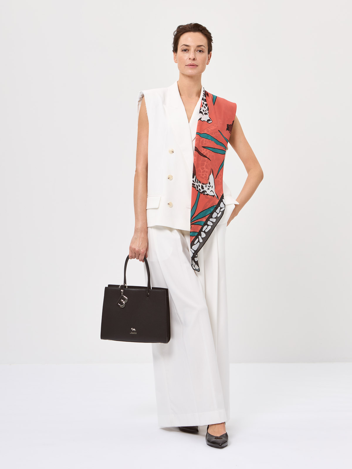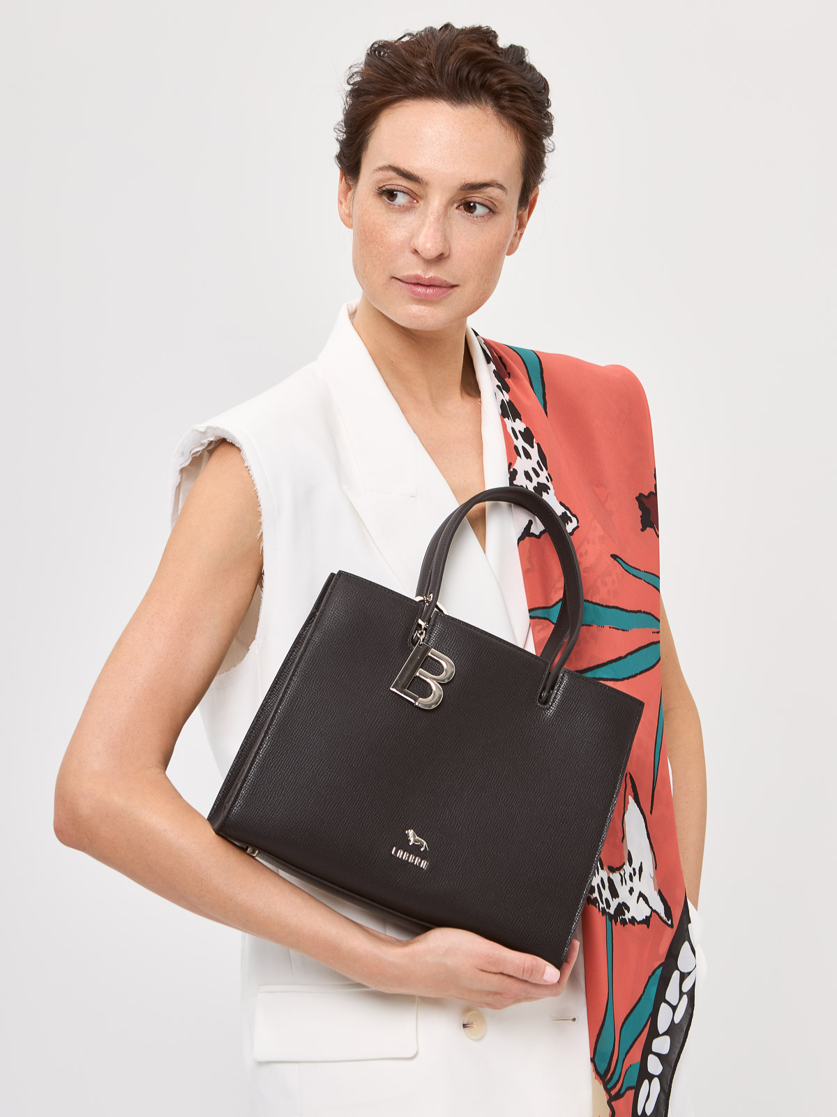 Женская сумка торговой марки Labbra из натуральной кожи. Модель застегивается на молнию. Содержит внутри два отдела. В одном отделе имеется карман на молнии в другом - два открытых кармана. Высота ручек - 14 см. Максимальная длина регулируемого съемного плечевого ремня из натуральной кожи - 102 см ширина - 15 см. Модель имеет ножки на дне. Не вмещает формат А4.