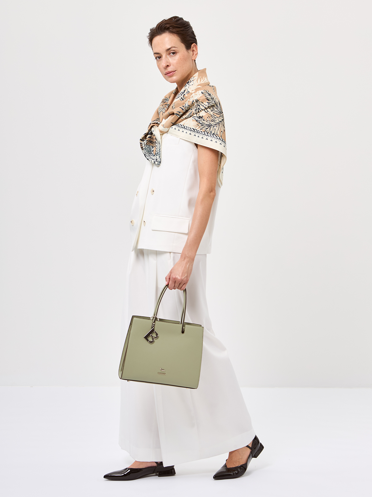 Женская сумка торговой марки Labbra из натуральной кожи. Модель застегивается на молнию. Содержит внутри два отдела. В одном отделе имеется карман на молнии в другом - два открытых кармана. Высота ручек - 14 см. Максимальная длина регулируемого съемного плечевого ремня из натуральной кожи - 102 см ширина - 15 см. Модель имеет ножки на дне. Не вмещает формат А4.