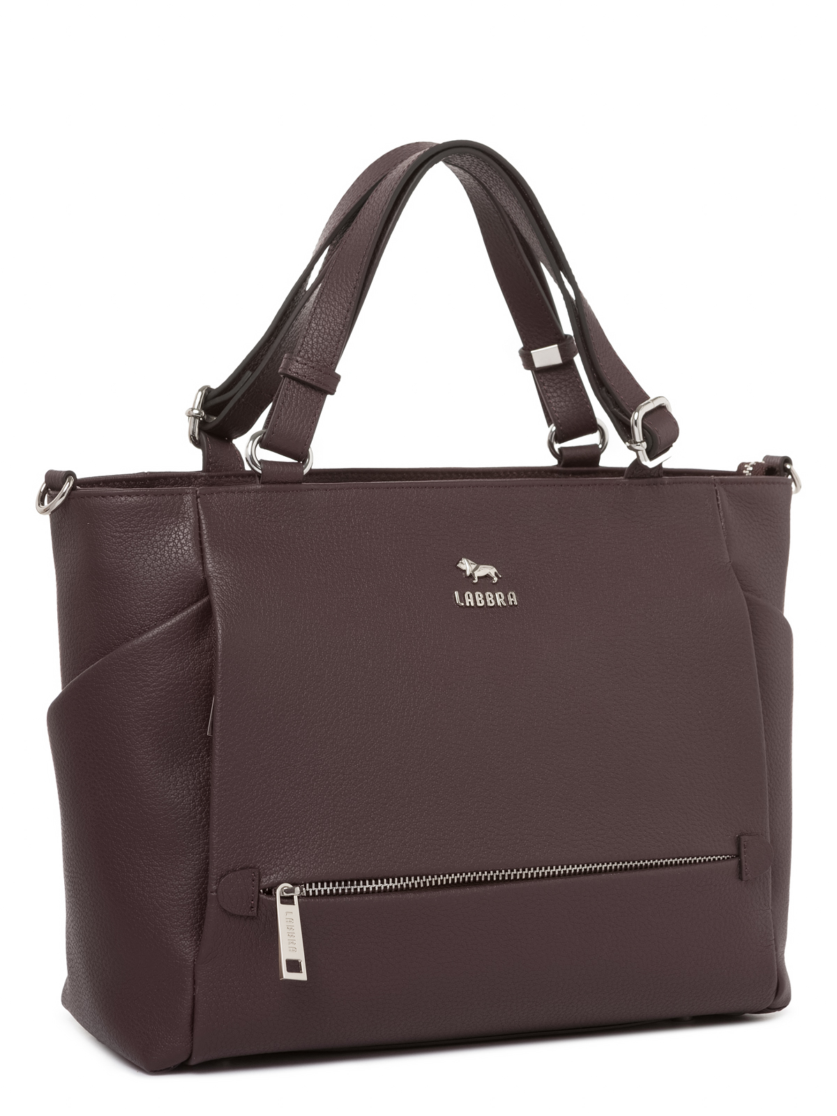 Женская сумка торговой марки Labbra из натуральной кожи. Модель застегивается на молнию. Содержит внутри два отдела между которыми имеется отделение на молнии. В одном отделе есть два открытых кармана в другом – карман на молнии. На передней стенке есть три кармана на молниях на задней – карман на молнии по бокам – два открытых кармана. Высота ручек – 13 см максимальная высота ручек – 27 см. Максимальная длина регулируемого съемного плечевого ремня из текстиля - 132 ширина – 4 см. Модель имеет ножки на дне. Не вмещает формат А4.